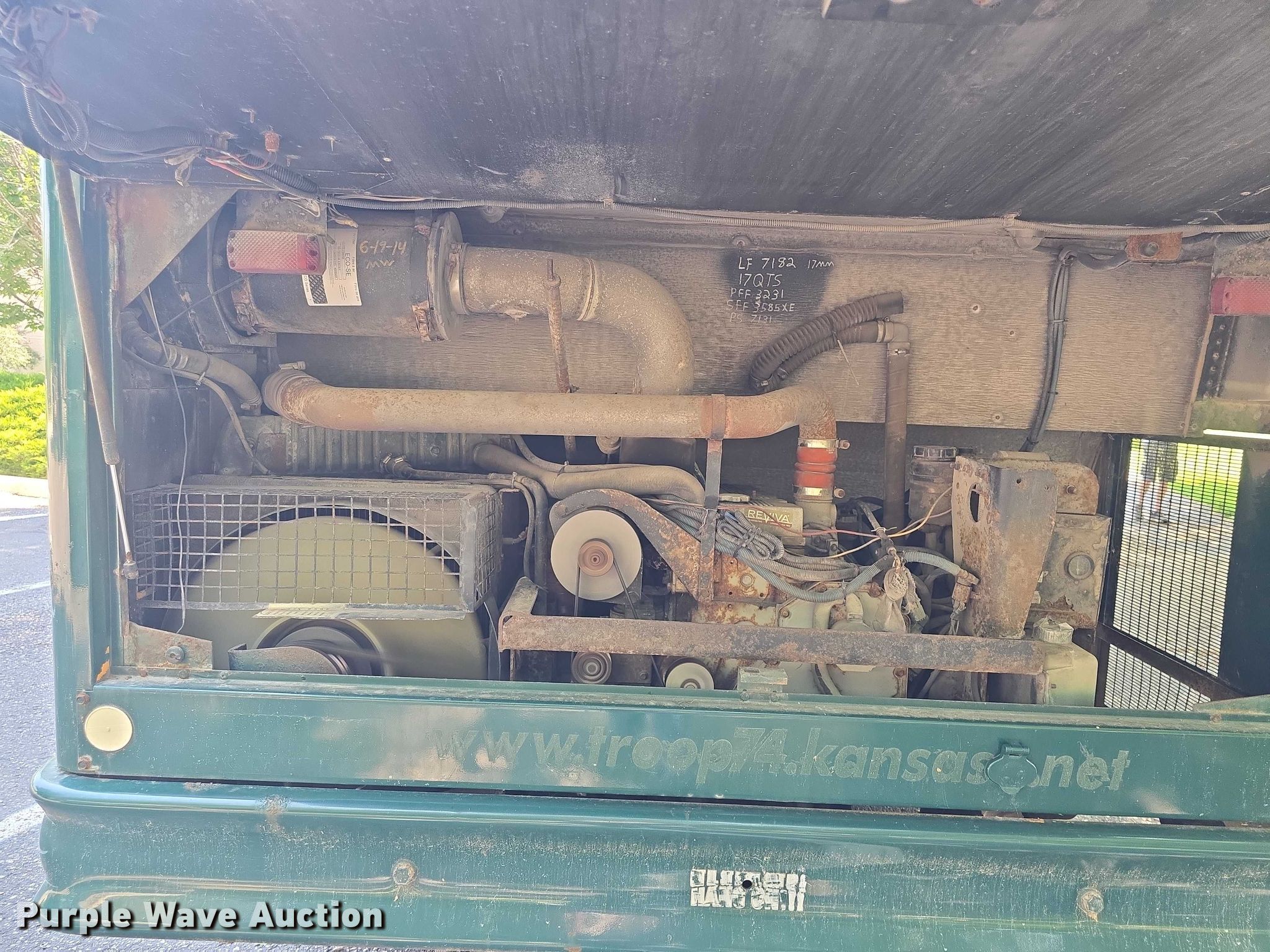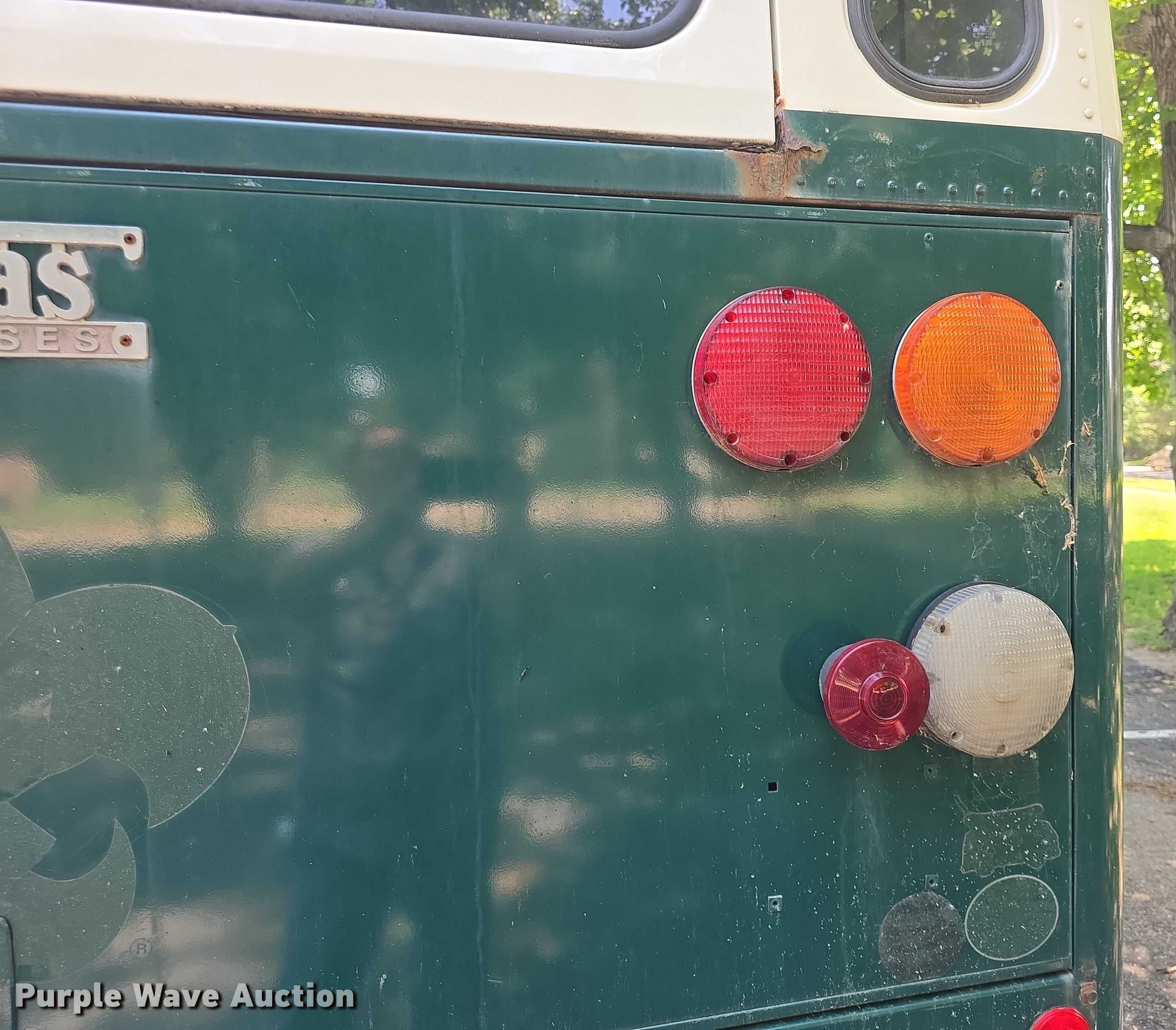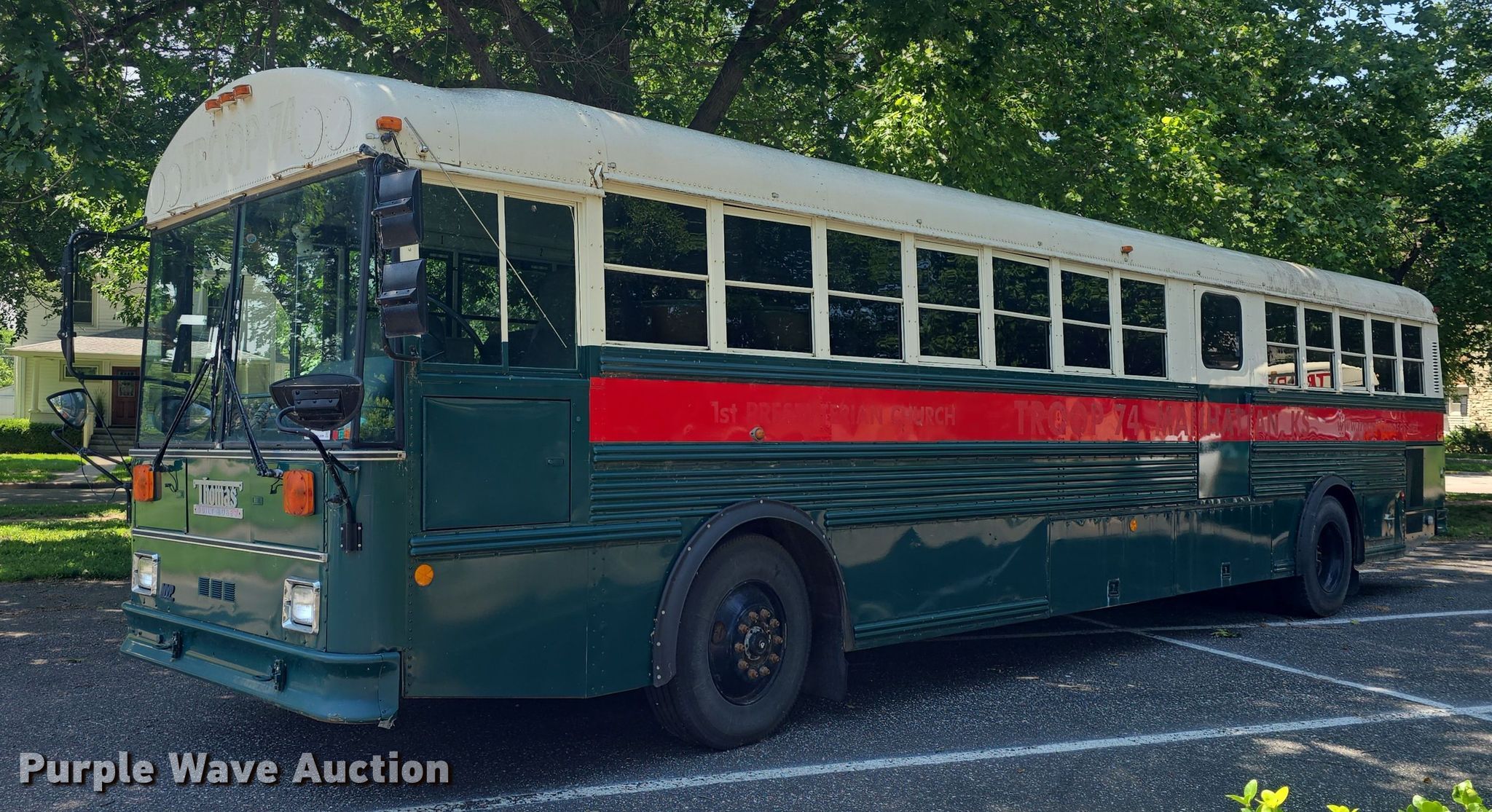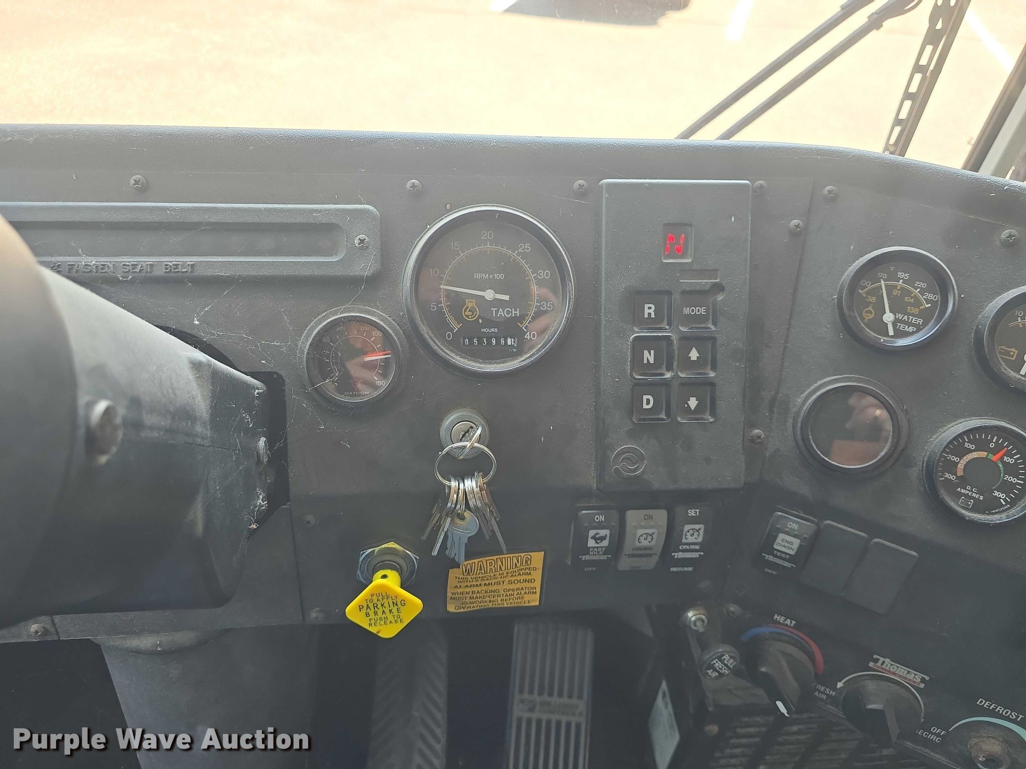 2001 Thomas Built 140H school bus. Miles: 49,480 on odometer, Hours: 5,396 on meter, VIN: 1T7HT4B2811097933. Engine Cummins, Displacement: 7.2L, Cylinders: 6, Fuel type: Diesel. Transmission Allison, Automatic. Chassis Axles: Single, Suspension: Spring, Brakes: Air, GVWR: 36,200 lbs, Wheelbase: 268". Interior Heat, Heated mirrors, Cruise control, Passengers: 85. Tires Size: 11R22.5. Notes Contents not included. Kansas title. Title distribution may be delayed up to 14 days from verification of funds. Manhattan, KS 66502