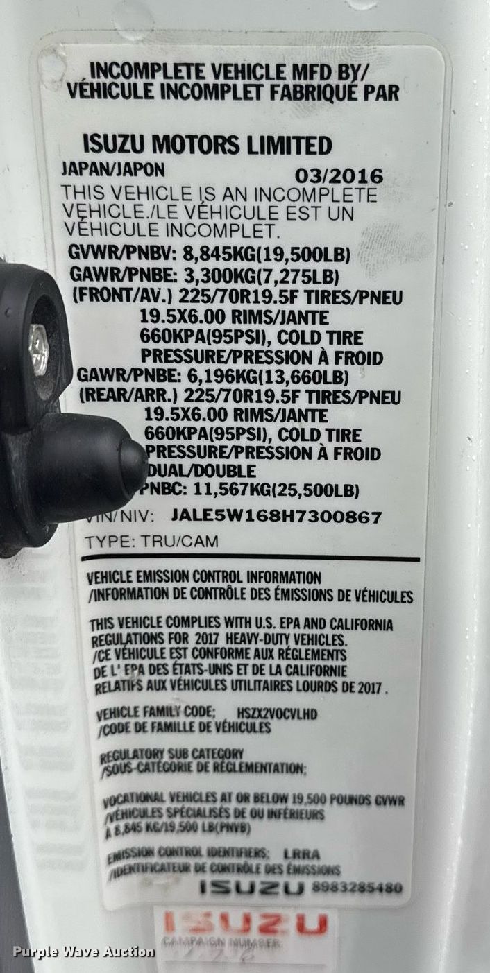 Purple Wave is selling a used Box Truck in Oklahoma. This item is a 2017 Isuzu NRR box truck with the following: Miles: 89,176 on odometer, VIN: JALE5W168H7300867