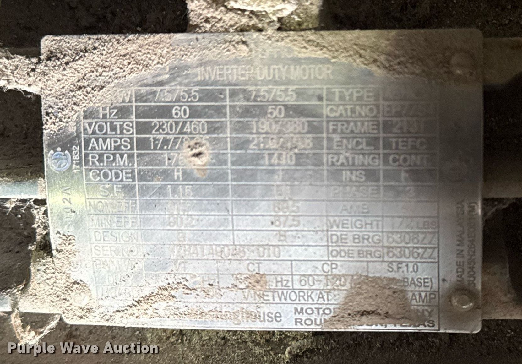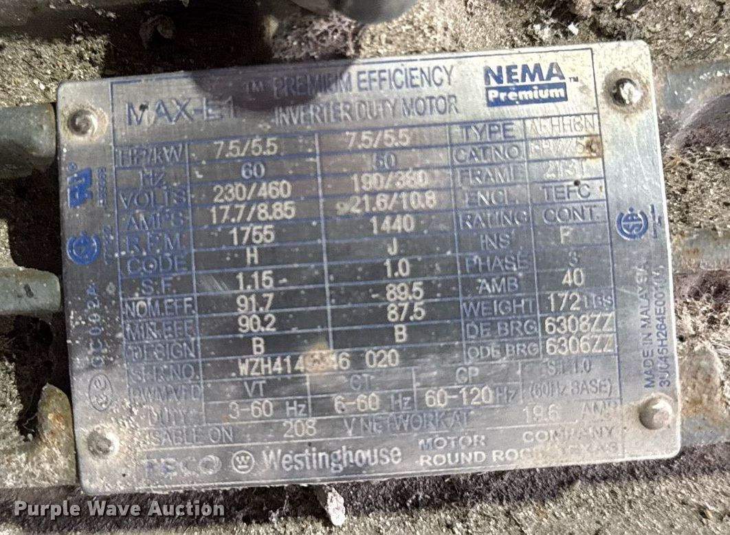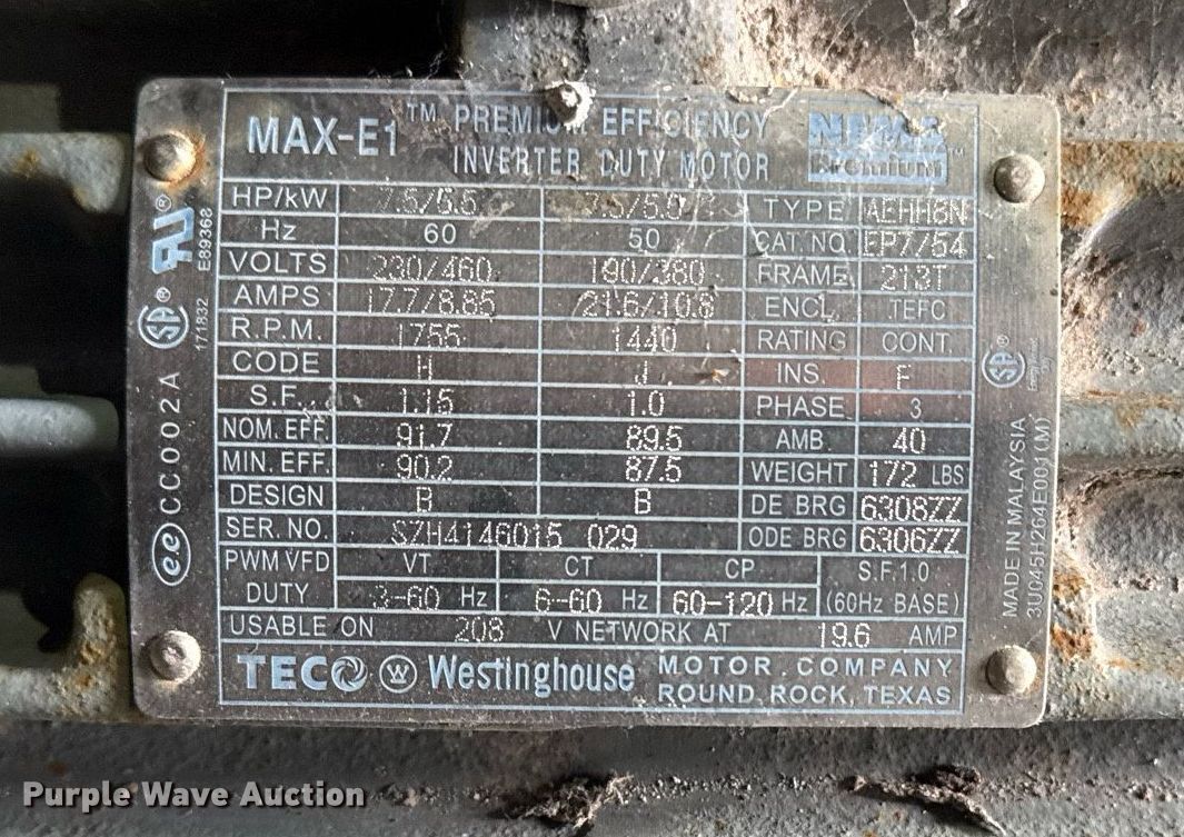 Purple Wave is selling a used Electric Motor in Oklahoma. This item is a (5) electric motors with the following: HP: 7.5, Volts: 230/460, Phase: Three
