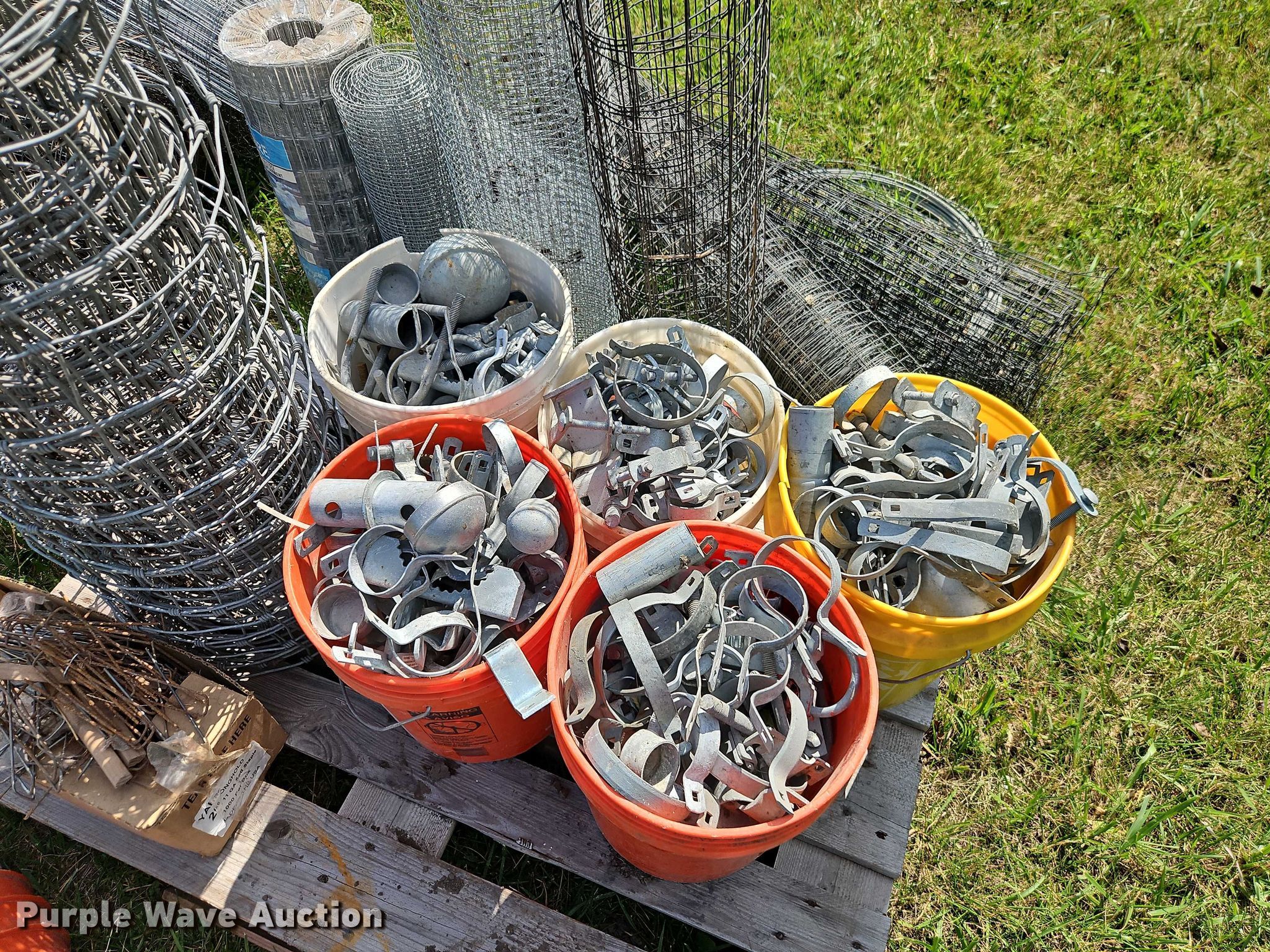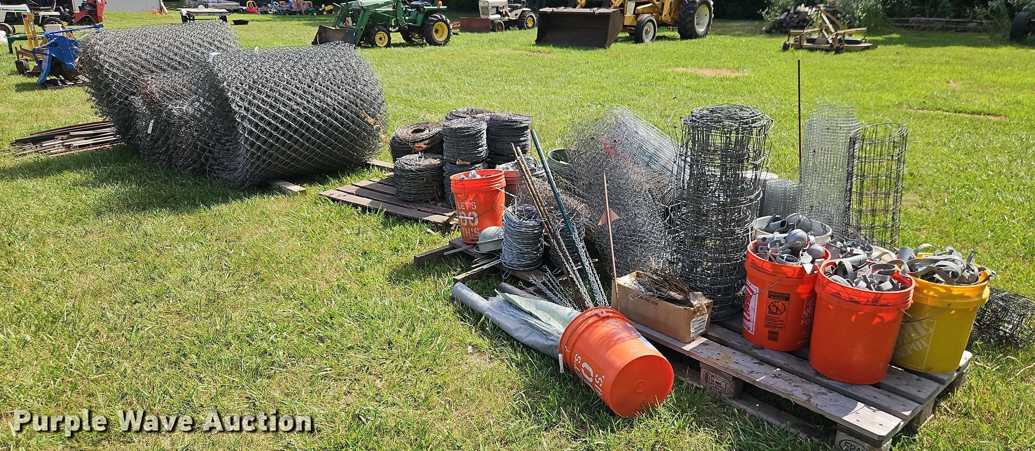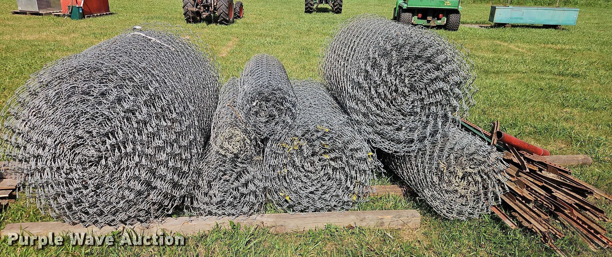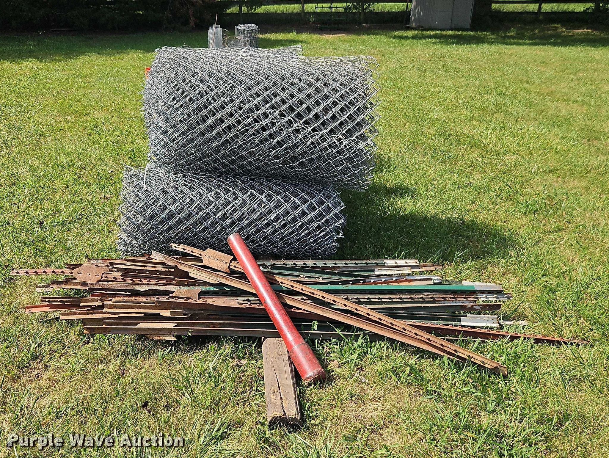 Purple Wave is selling a used Fencing Materials in Kansas. This item is a Approximately 720' chain link fence with the following: (9) spools of barbwire, Various cage wire