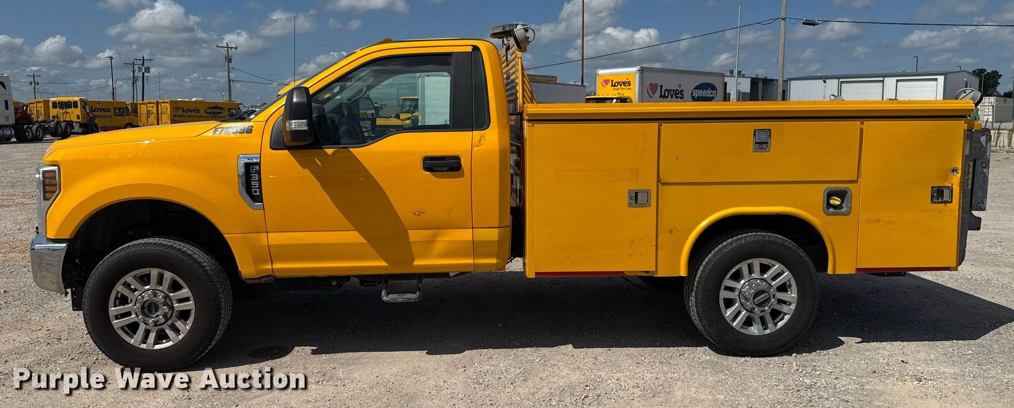 2019 Ford F350 Super Duty utility bed pickup truck. Miles: 87,482 on odometer, VIN: 1FDRF3F6XKEE76096, Unit #: E76096. Engine Displacement: 6.2L V8 OHV, Cylinders: 8, Fuel type: Gas. Transmission Automatic, Four wheel drive. Interior AC, Heat, Heated mirrors, Power windows, Power locks, Cruise control, Backup camera, Auxiliary controls, Brake controller. Features Utility bed Reading Classic II, 9' L x 78" W, End gate lift, (2) hose reels. Tires Size: LT275/65R18. Notes Windshield chipped or cracked. Oklahoma title. Title distribution may be delayed up to 30 days from verification of funds. Gemini Motor Transport. 10220 W Reno Ave. Oklahoma City, OK 73127