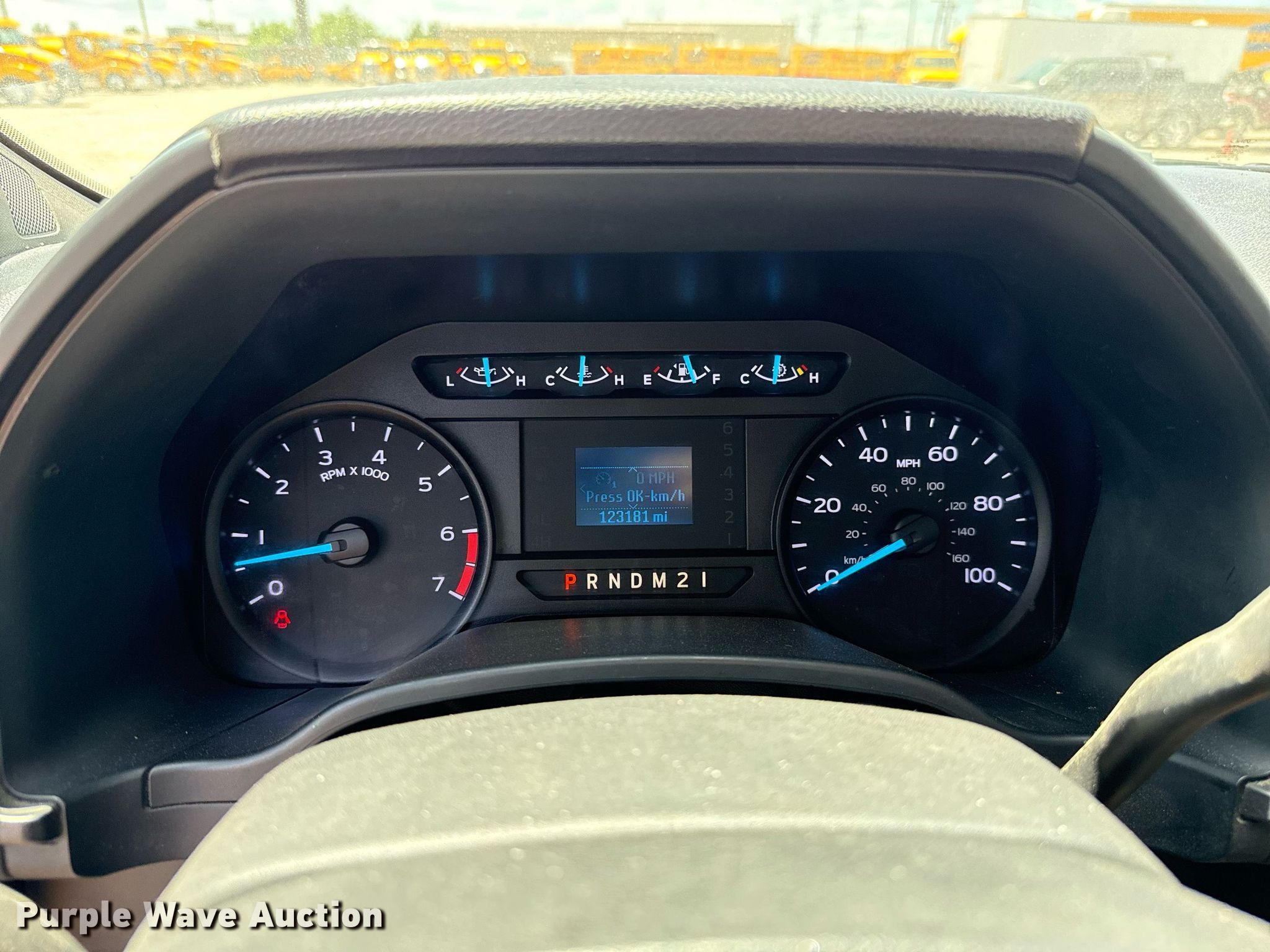 2019 Ford F350 Super Duty utility bed pickup truck. Miles: 123,181 on odometer, VIN: 1FDRF3F65KEE76135, Unit #: E76135. Engine Displacement: 6.2L V8 OHV, Cylinders: 8, Fuel type: Gas. Transmission Automatic, Four wheel drive. Interior AC, Heat, Heated mirrors, Power windows, Power locks, Cruise control, Auxiliary controls, Brake controller. Features Utility bed Reading Classic II, 9' L x 80" W, End gate lift Capacity: 1,300 lbs, Air compressor, (2) hose reels. Tires Size: LT275/65R18. Notes Windshield chipped or cracked. Oklahoma title. Title distribution may be delayed up to 30 days from verification of funds. Gemini Motor Transport. 10220 W Reno Ave. Oklahoma City, OK 73127