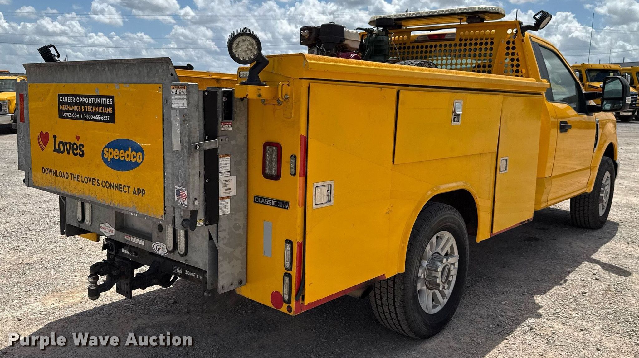 2019 Ford F350 Super Duty utility bed pickup truck. Miles: 123,610 on odometer, VIN: 1FDRF3E63KEE76040, Unit #: E76040. Engine Displacement: 6.2L V8 OHV, Cylinders: 8, Fuel type: Gas. Transmission Automatic. Interior AC, Heat, Heated mirrors, Power windows, Power locks, Cruise control, Backup camera, Auxiliary controls, Brake controller. Features Utility bed Reading Classic II, 9' L x 80" W, Tommy end gate lift Capacity: 1,300 lbs, Air compressor. Tires Size: LT275/65R18. Notes Hail damage. Oklahoma title. Title distribution may be delayed up to 30 days from verification of funds. Gemini Motor Transport. 10220 W Reno Ave. Oklahoma City, OK 73127