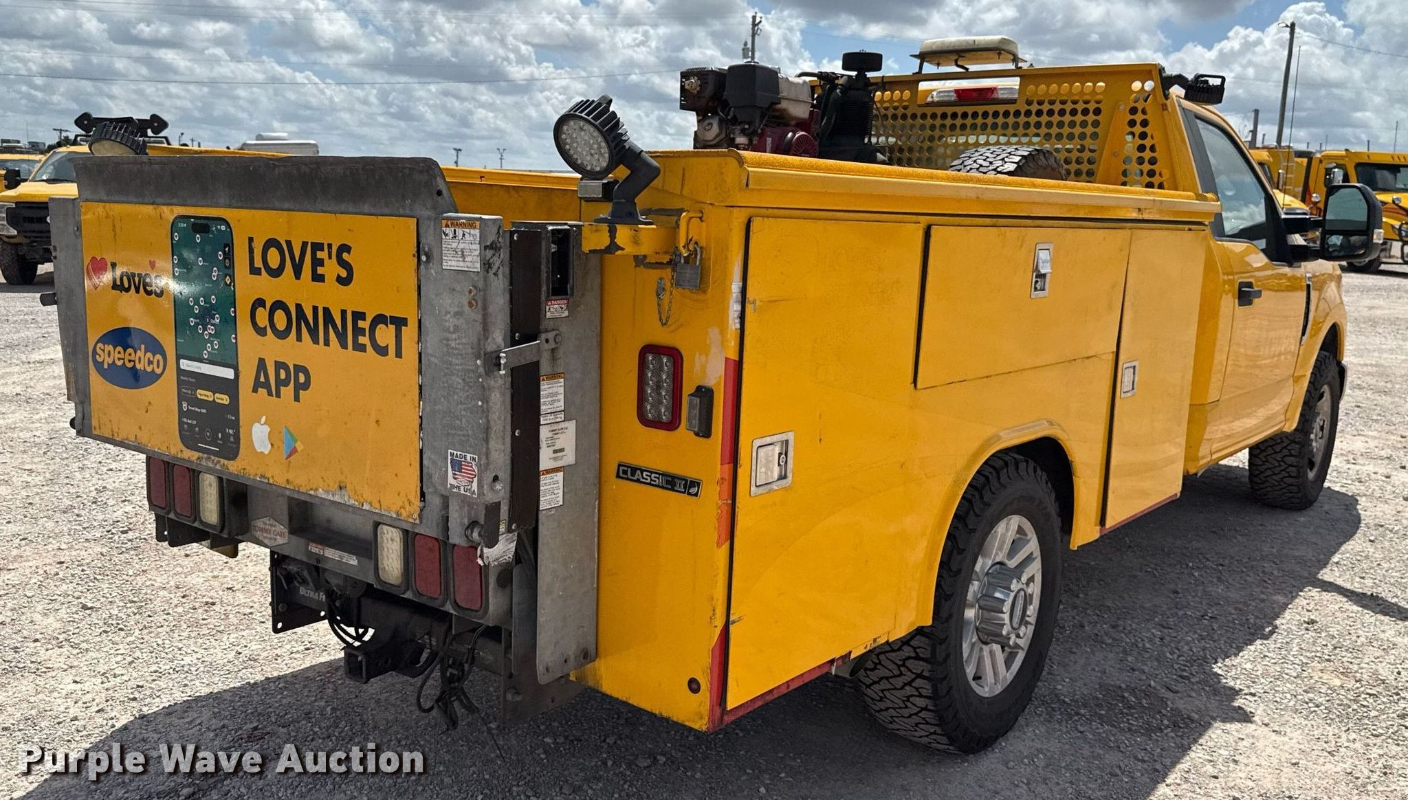 2019 Ford F350 Super Duty utility bed pickup truck. Miles: 117,738 on odometer, VIN: 1FDRF3E61KEE76022, Unit #: E76022. Engine Displacement: 6.2L V8 OHV, Cylinders: 8, Fuel type: Gas. Transmission Automatic. Interior AC, Heat, Heated mirrors, Power windows, Power locks, Cruise control, Backup camera, Auxiliary controls, Brake controller. Features Utility bed Reading Classic II, 9' L x 80" W, Tommy end gate lift Capacity: 1,300 lbs, Air compressor. Tires Size: LT275/65R18. Notes Dash warning indicator: TPMS, Possible AC issues, may need charged. Oklahoma title. Title distribution may be delayed up to 30 days from verification of funds. Gemini Motor Transport. 10220 W Reno Ave. Oklahoma City, OK 73127