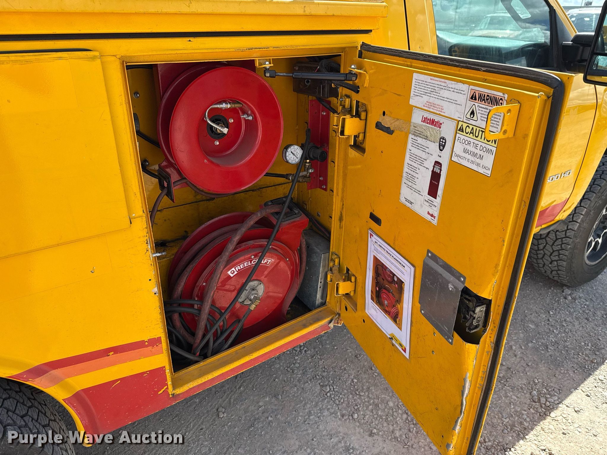 2017 Chevrolet Silverado 3500HD utility bed pickup truck. Miles: 148,725 on odometer, Hours: 11,086 on meter, VIN: 1GB3CYCG4HZ183796, Unit #: 183796. Engine Displacement: 6.0L V8 OHV, Cylinders: 8, Fuel type: Gas. Transmission Automatic. Interior AC, Heat, Heated mirrors, Power windows, Power locks, Cruise control, Auxiliary controls. Features Utility bed Reading, 8' 2" L x 78" W, End gate lift, Air compressor, (2) hose reels, Auxiliary fuel tank. Tires Size: LT275/70R18. Notes Dash warning indicator: Check engine. Oklahoma title. Title distribution may be delayed up to 30 days from verification of funds. Gemini Motor Transport. 10220 W Reno Ave. Oklahoma City, OK 73127