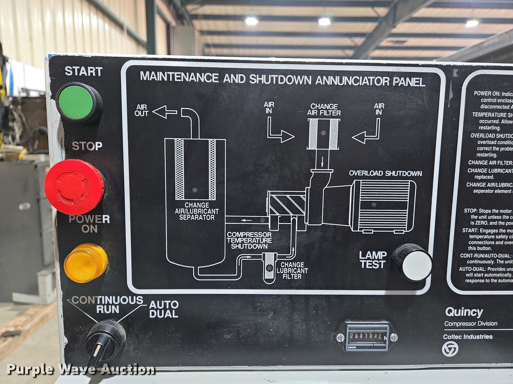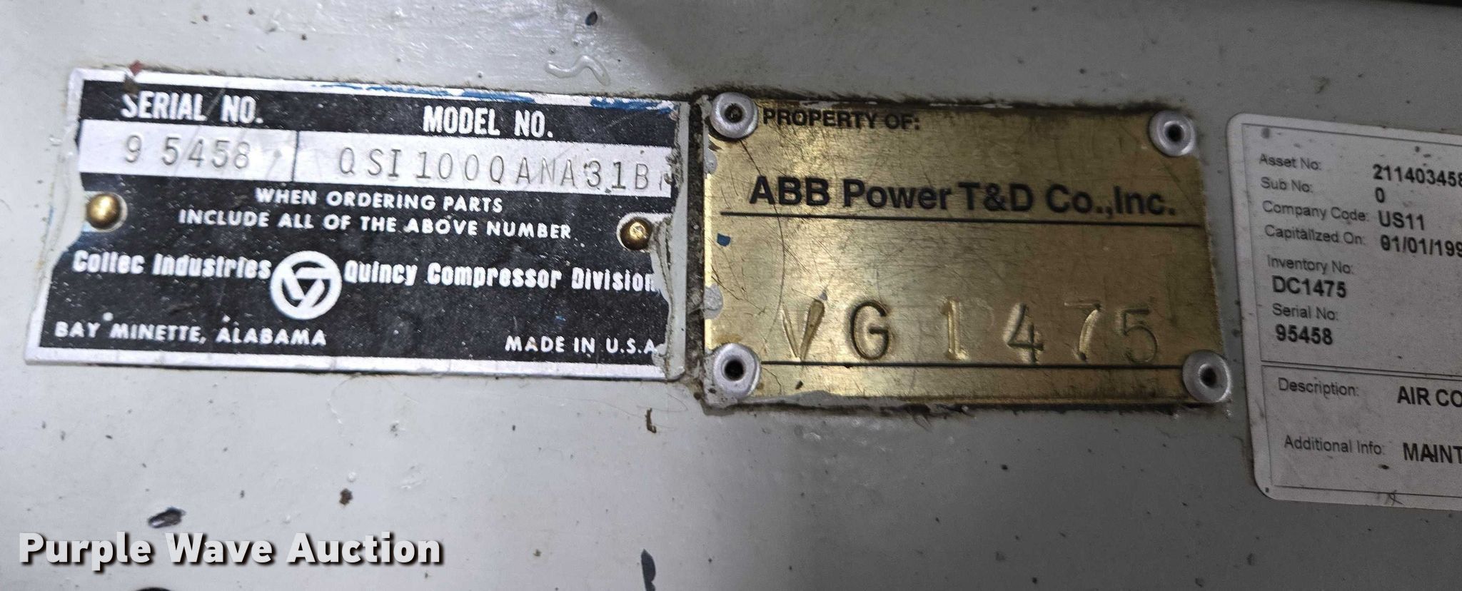 Purple Wave is selling a used Air Compressor in Tennessee. This item is a Quincy QSI-1000 air compressor with the following: Hours: 26,010 on meter, Serial: 95458