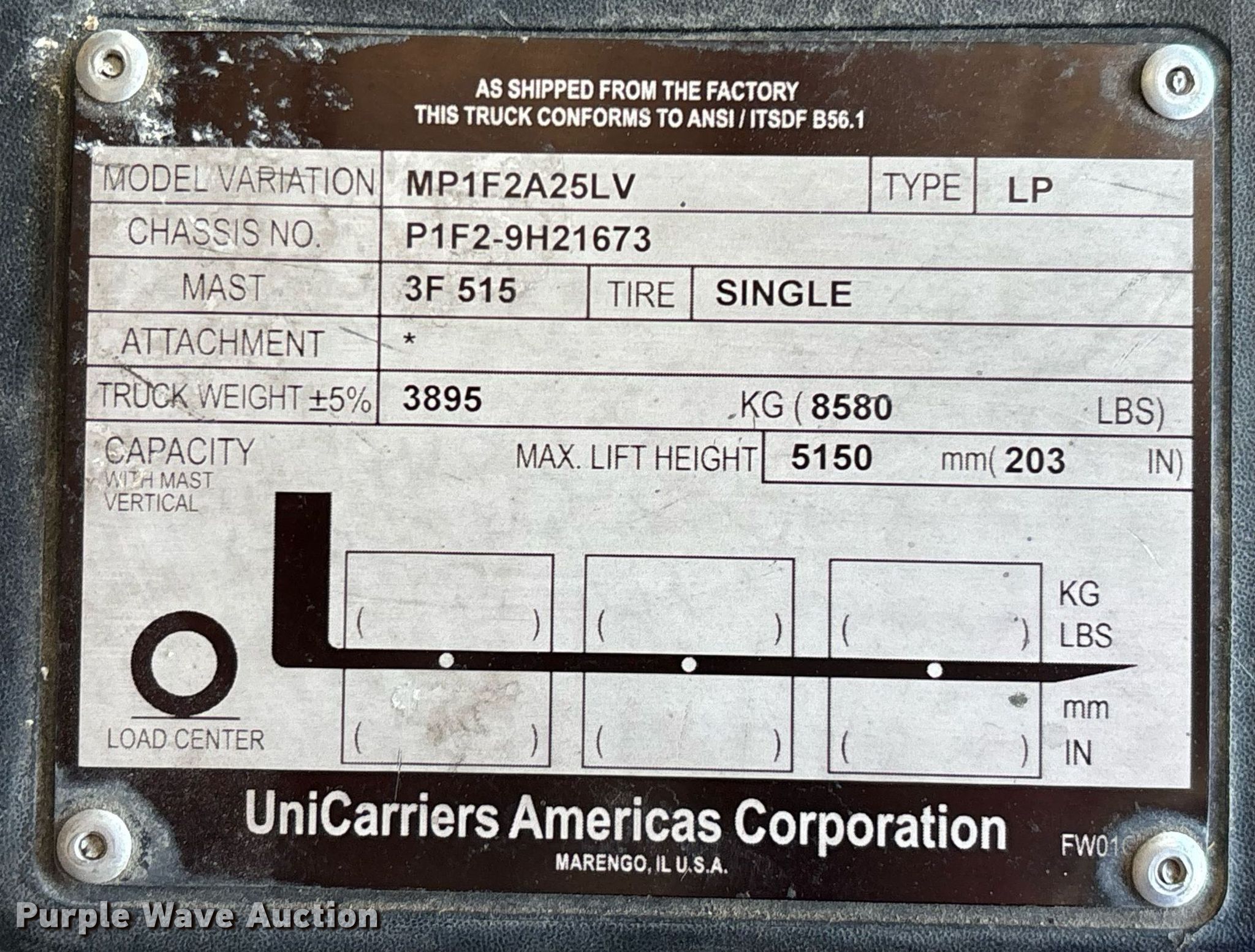 Purple Wave is selling a used Cushion Tire or Pneumatic Forklift in Arizona. This item is a 2016 UniCarriers PF50 forklift with the following: Hours: 1,441 on meter, Serial: P1F2-9H21673, Unit #: SFS2226