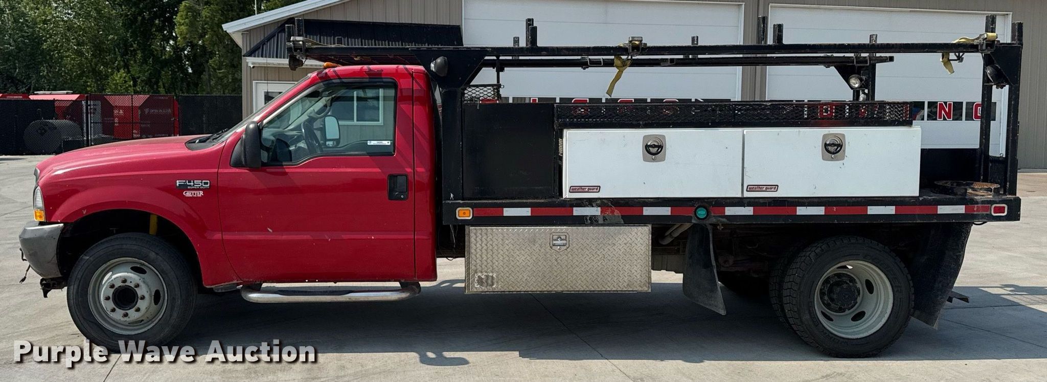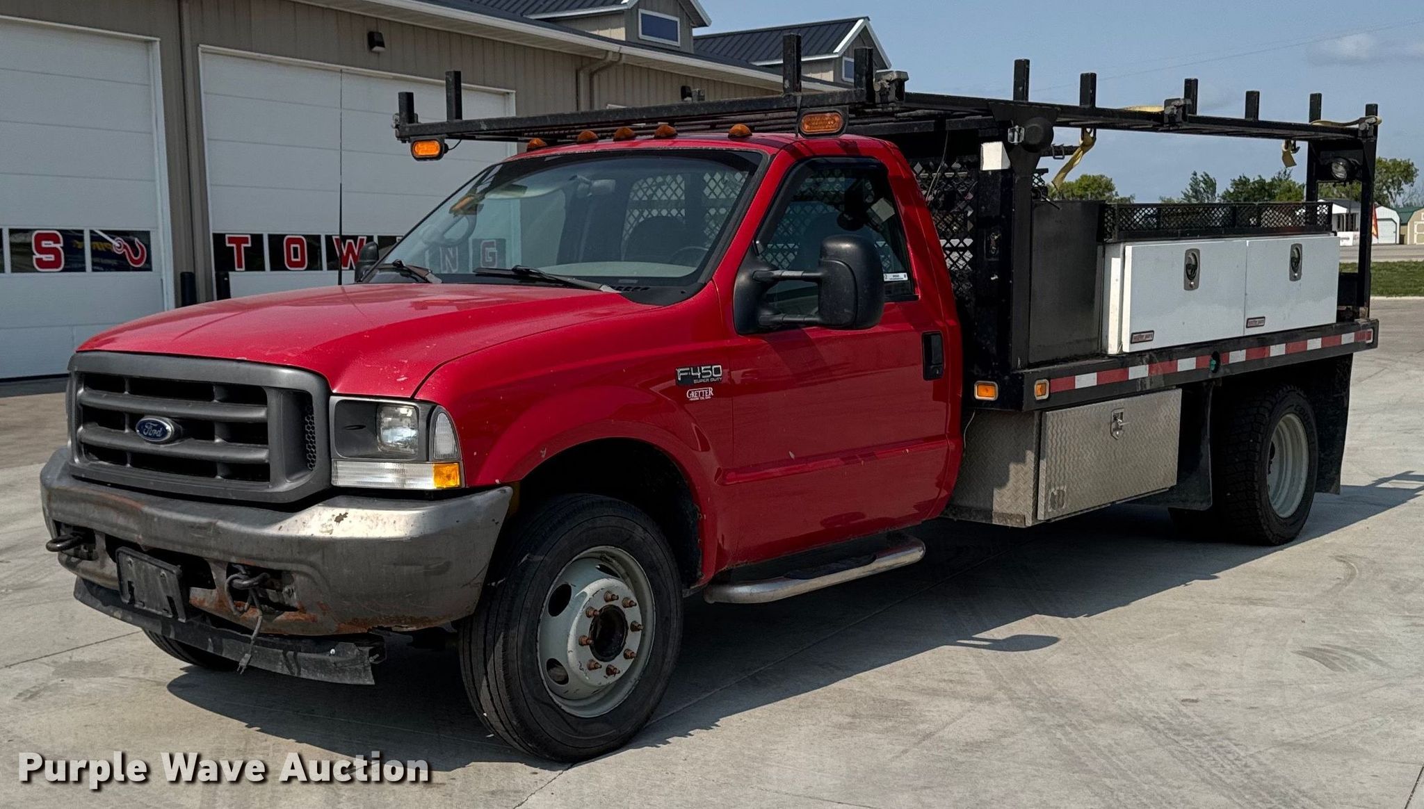 Purple Wave is selling a used Flat Bed Truck in Iowa. This item is a 2002 Ford F450 Super Duty flatbed truck with the following: Miles: 280,253 on odometer, VIN: 1FDXF46F02EC57807