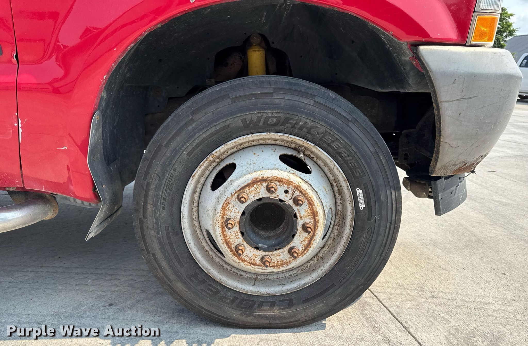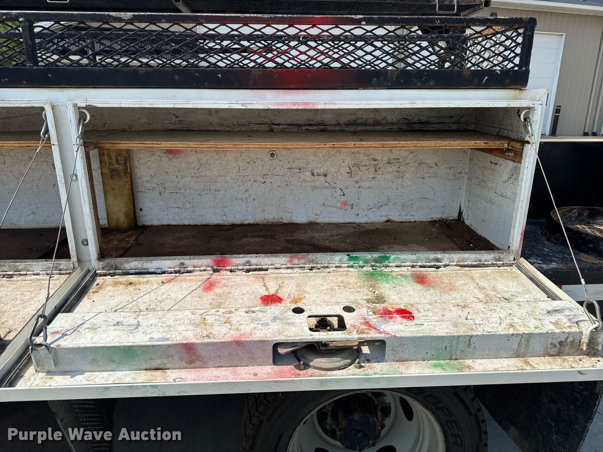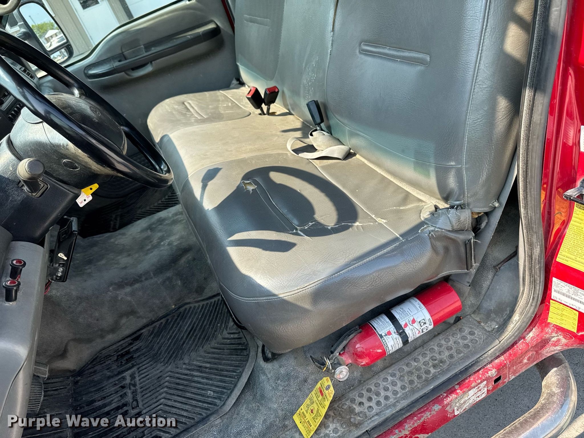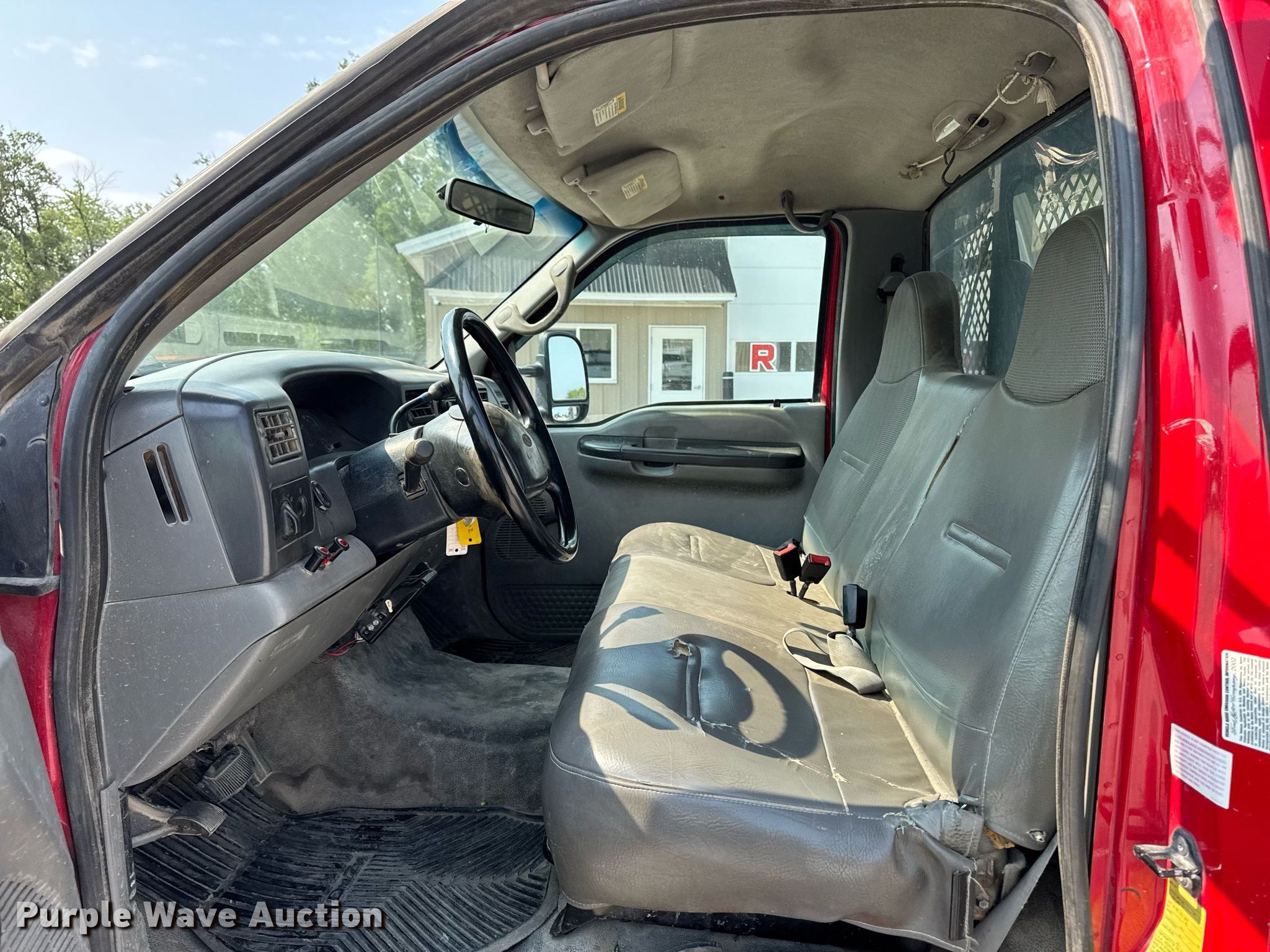 2002 Ford F450 Super Duty flatbed truck. Miles: 280,253 on odometer, VIN: 1FDXF46F02EC57807. Engine Displacement: 7.3L, Cylinders: 8, Fuel type: Diesel, HP: 215. Transmission Automatic. Chassis Axles: Single, Suspension: Spring, Brakes: Hydraulic. Interior AC, Heat, Brake controller. Features Flatbed Knaphide, 12' 3" L x 96" W. Tires Size: 225/70R19.5. Iowa title. Title distribution may be delayed up to 14 days from verification of funds. Eastern Iowa Buildng, Inc.. Fairfax, IA 52228