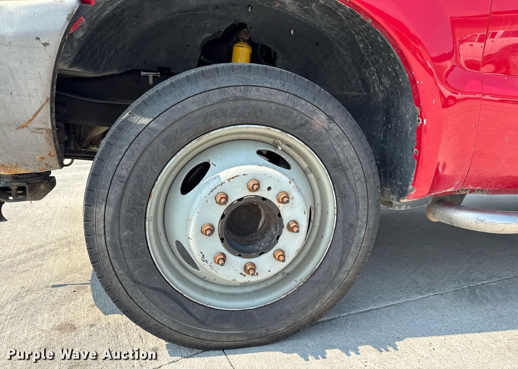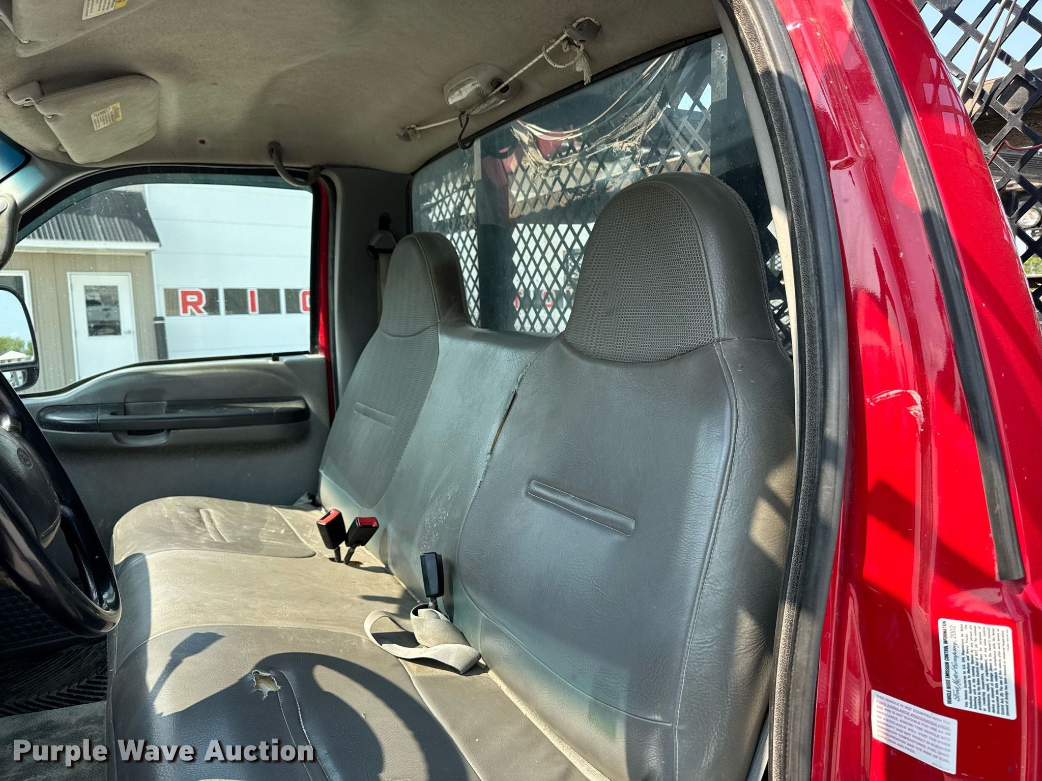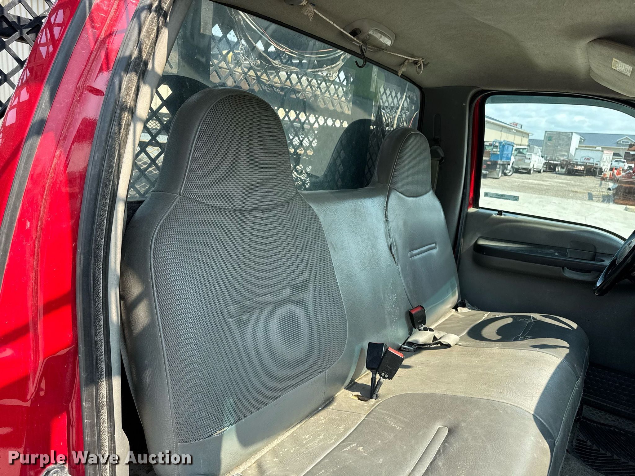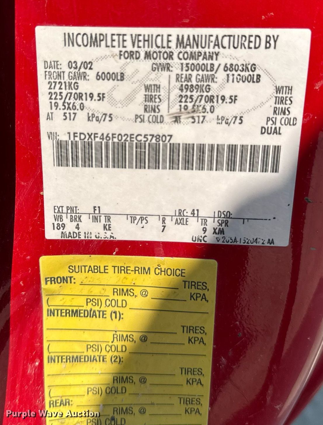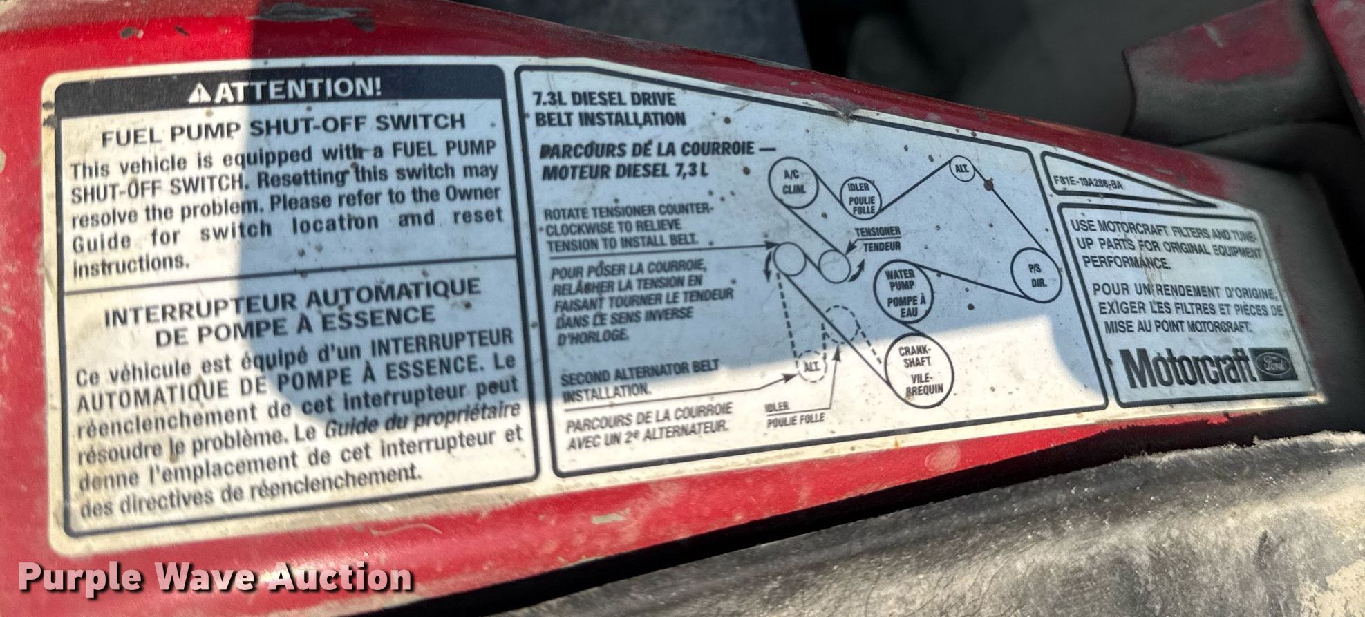 2002 Ford F450 Super Duty flatbed truck. Miles: 280,253 on odometer, VIN: 1FDXF46F02EC57807. Engine Displacement: 7.3L, Cylinders: 8, Fuel type: Diesel, HP: 215. Transmission Automatic. Chassis Axles: Single, Suspension: Spring, Brakes: Hydraulic. Interior AC, Heat, Brake controller. Features Flatbed Knaphide, 12' 3" L x 96" W. Tires Size: 225/70R19.5. Iowa title. Title distribution may be delayed up to 14 days from verification of funds. Eastern Iowa Buildng, Inc.. Fairfax, IA 52228