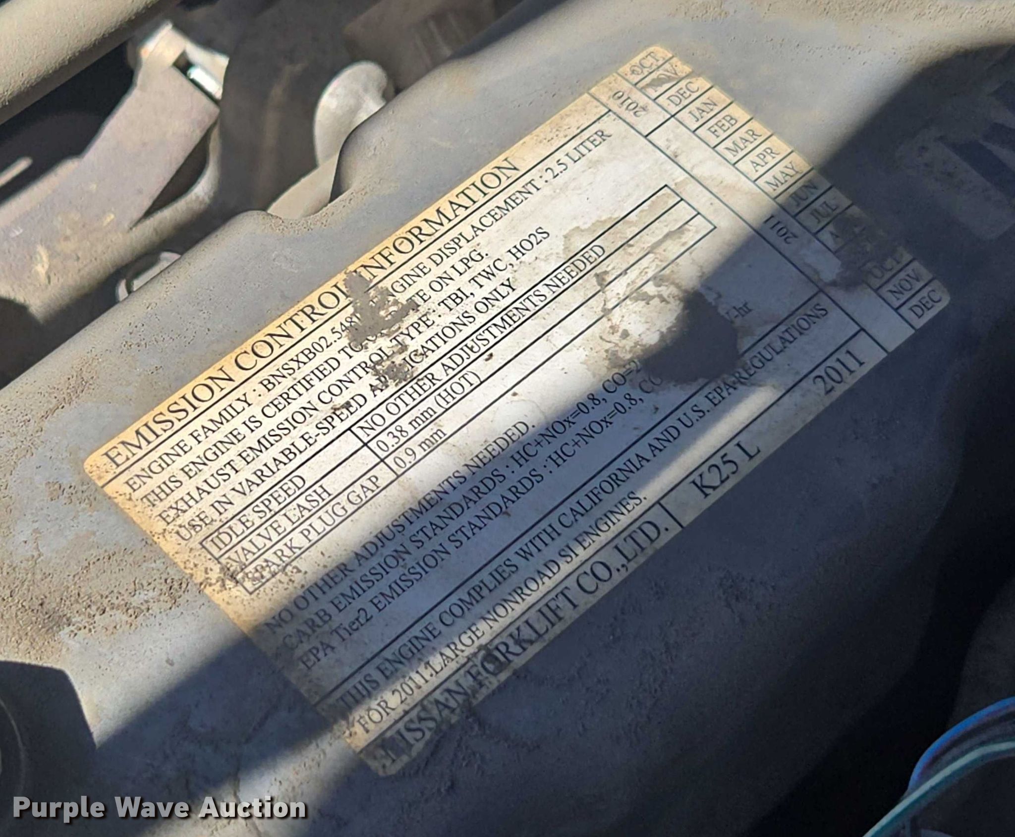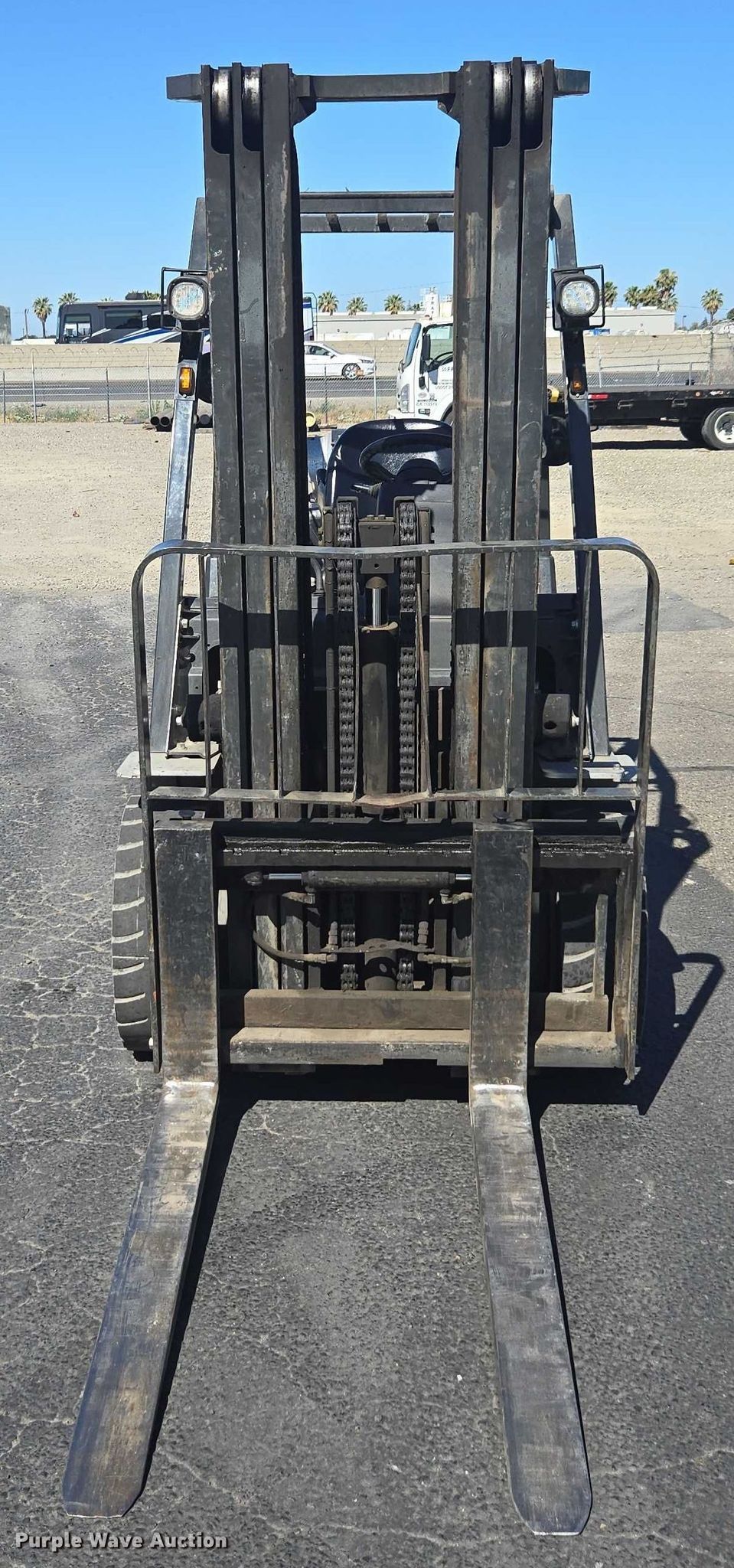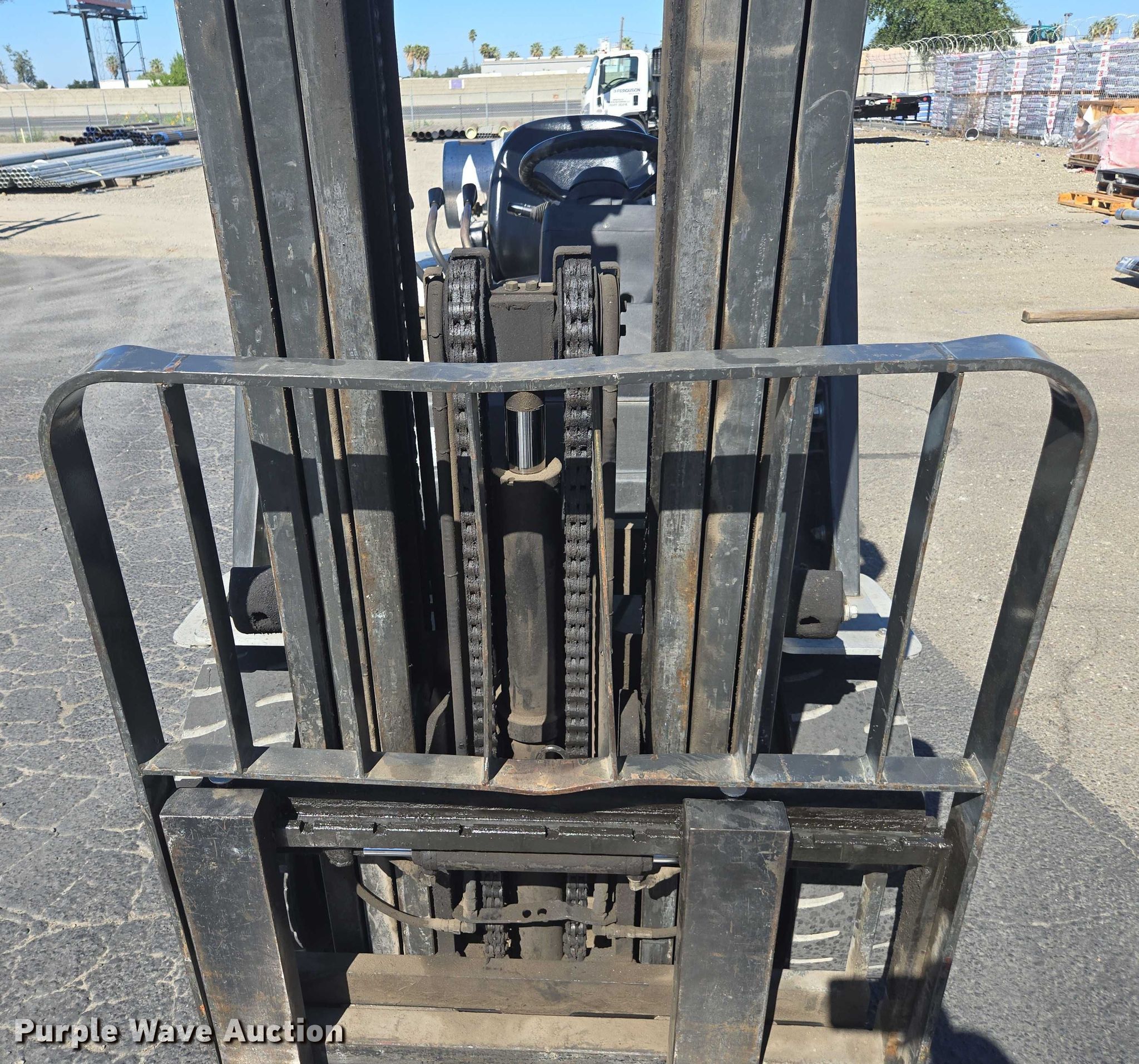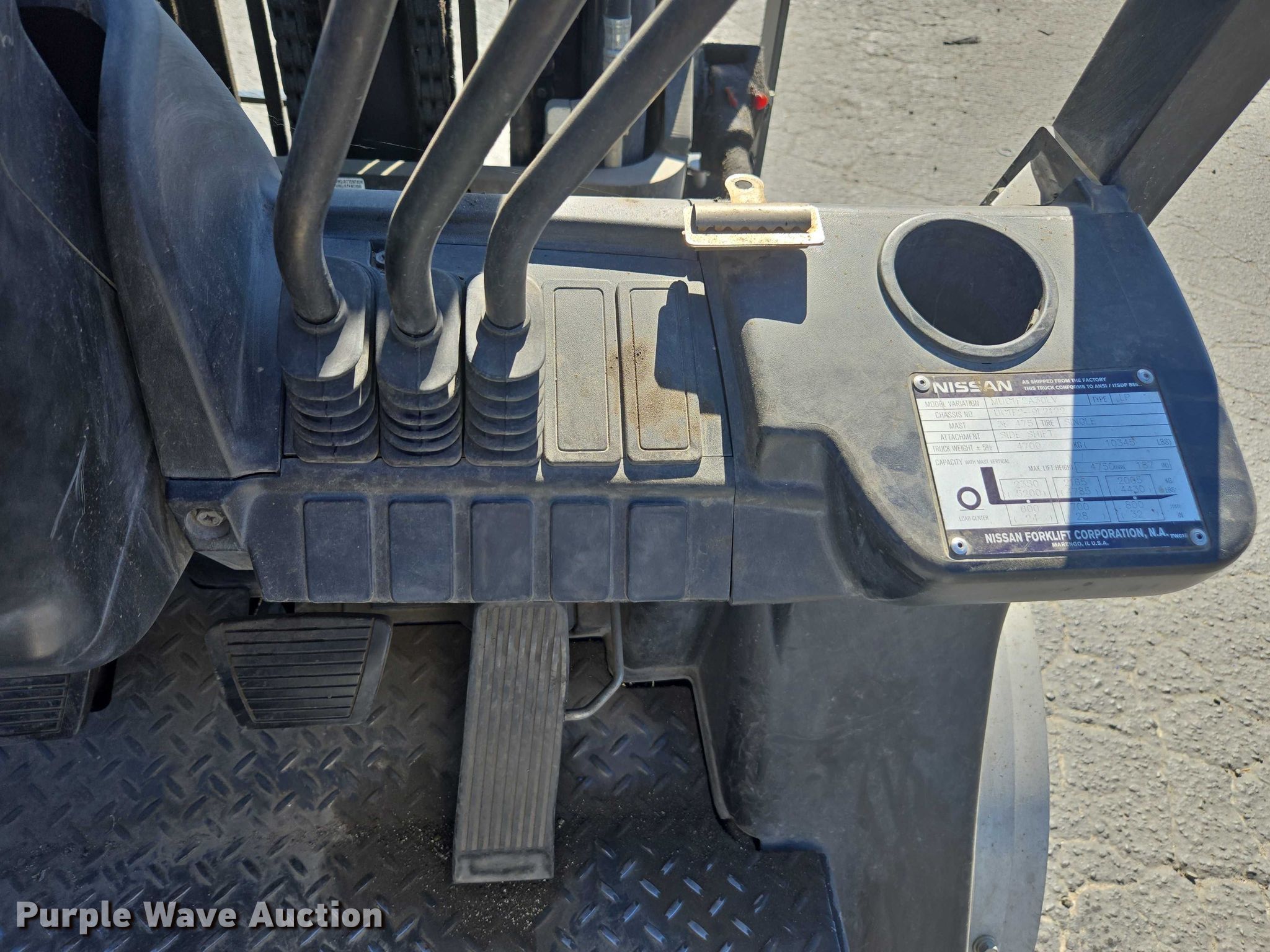Nissan PF60 forklift. Hours: 5,376 on meter, Miles or hours may vary, unit still in use, Serial: UG1F2-9L2122, Unit #: SFS2248. Engine Nissan, Displacement: 2.5L, Cylinders: 4, Fuel type: LPG LP bottle: Not included. Transmission Automatic. Operators station OROPS. Features Maximum lift capacity: 5,200 lbs, Maximum lift height: 187", Collapsed mast height: 88", Mast stages: 3, Side shift, Mast tilt, Fork length: 47". Tires Front: 8.15-15, Rear: 6.50-10, Solid. Ferguson. Stockton, CA 95215