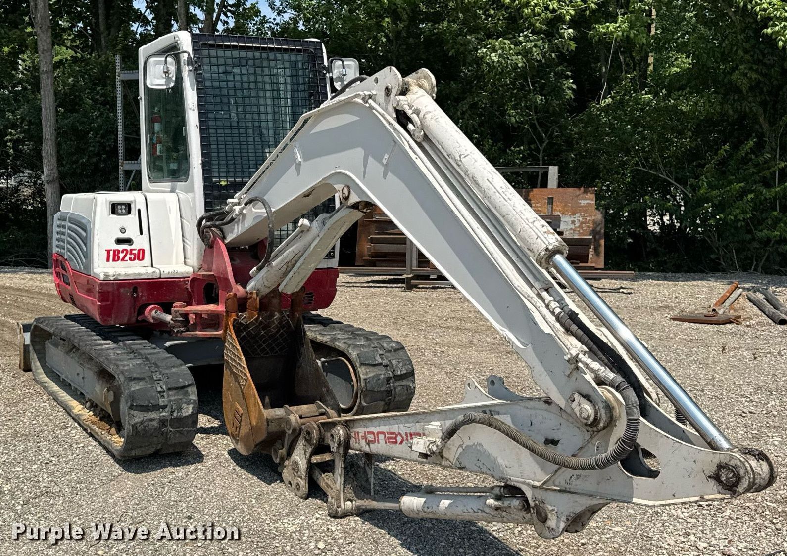 Purple Wave is selling a used Mini Excavator in Ohio. This item is a 2012 Takeuchi TB250 mini excavator with the following: Hours: 3,605 on meter, Serial: 125001681