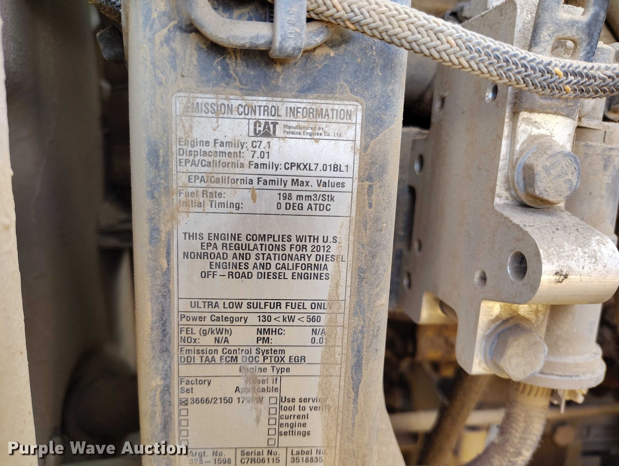 2013 Caterpillar 950K wheel loader. Hours: 14,754 on meter, Serial: CAT950KTR4A01238, Unit #: 46.83. Engine Caterpillar C7.1, Displacement: 7.1L, Cylinders: 6, Fuel type: Diesel. Transmission Powershift, 4F - 4R. Operators station Enclosed cab, AC, Heat, Bucket controls: Two-lever, Ride control. Features Quick coupler: Manual, Counter weights, Bucket Caterpillar, Width: 114", Self- leveling bucket, Cutting edge: Bolt-on, Forks Caterpillar 520-7957, Length: 72". Tires Size: 23.5R25. Sherwood Construction Company. Colorado Springs, CO 80908