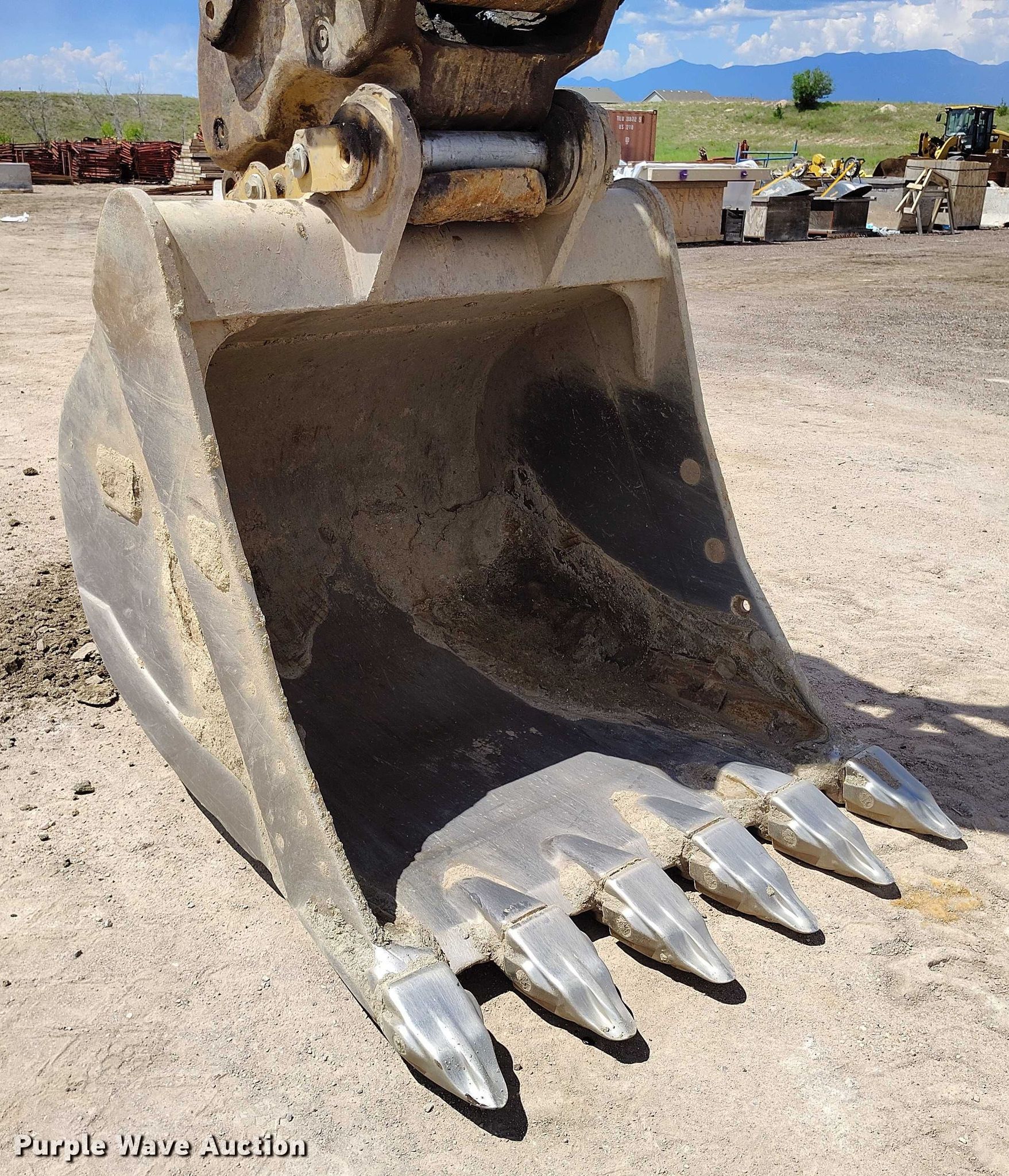 2012 Caterpillar 329E L excavator. Hours: 12,190 on meter, Serial: CAT0329EEPLW00764, Unit #: 20303. Engine Caterpillar C7.1, Displacement: 7.1L, Cylinders: 6, Fuel type: Diesel. Transmission Hydrostatic, Two speed travel. Operators station Enclosed cab, AC, Heat, Backup camera, Pattern changer. Features Auxiliary hydraulics, Counter weights, Auto lube, Boom Standard, Stick Stick length: 10' 6", Quick coupler: Hydraulic Caterpillar, Bucket Caterpillar, Width: 50", Teeth: 6. Tracks Width: 32", Steel, Grouser pads: Triple. Sherwood Construction Company. Colorado Springs, CO 80908