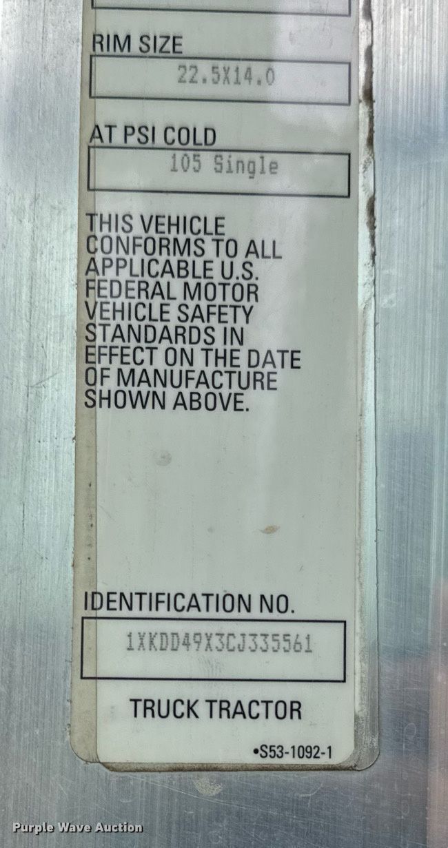 - VIN: 1XKDD49X3CJ335561