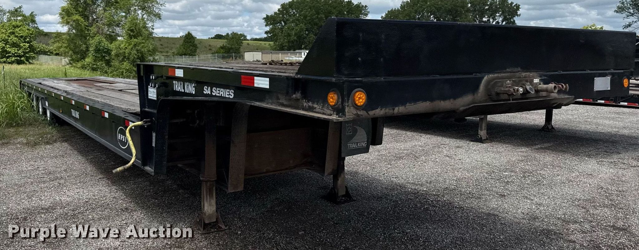 2001 Trail King drop deck trailer. VIN: 1TKA053341M094846. Dimensions Overall: 53' L x 102" W, Deck: 43' L x 102" W, Top deck length: 9' 6". Features Deck type: Wood, Winch, Hydraulic controls: Manual. Chassis Landing gear: Dual, Suspension: Air, Brakes: Air, Axles: Triple Sliding. Tires Steel wheels, Size: 215/75R17.5. Notes Possible sliding axle group issue. Kansas title. Title distribution may be delayed up to 14 days from verification of funds. Sunflower Paving Inc.. Topeka, KS 66616