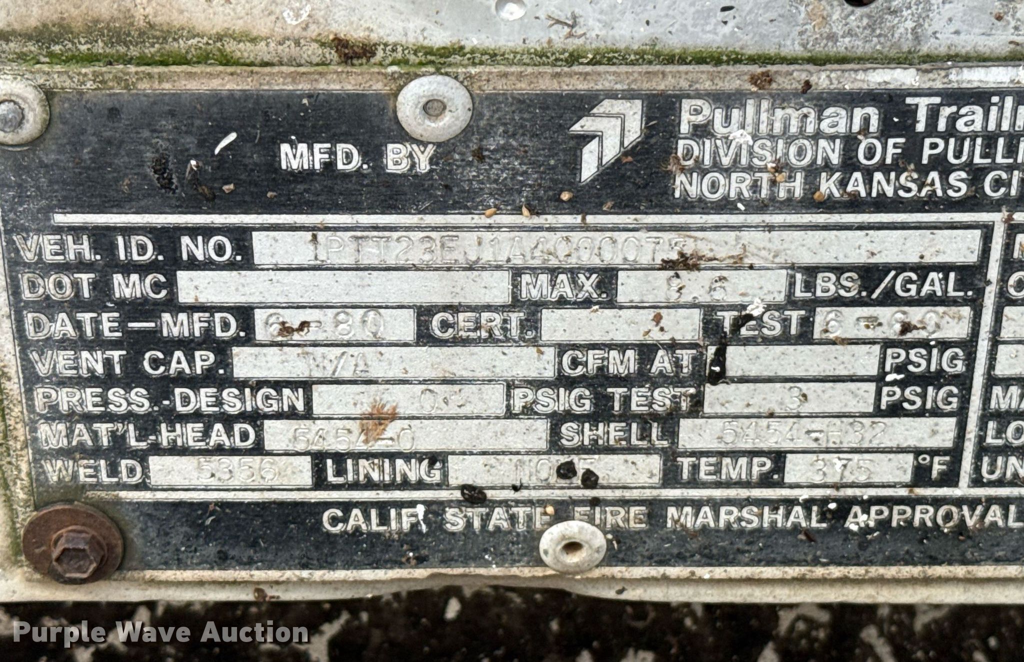 Purple Wave is selling a used Tank Trailer in Oklahoma. This item is a 1980 Trailmobile T20I-42AG tank trailer with the following: VIN: 1PTT23EJ1A4000075