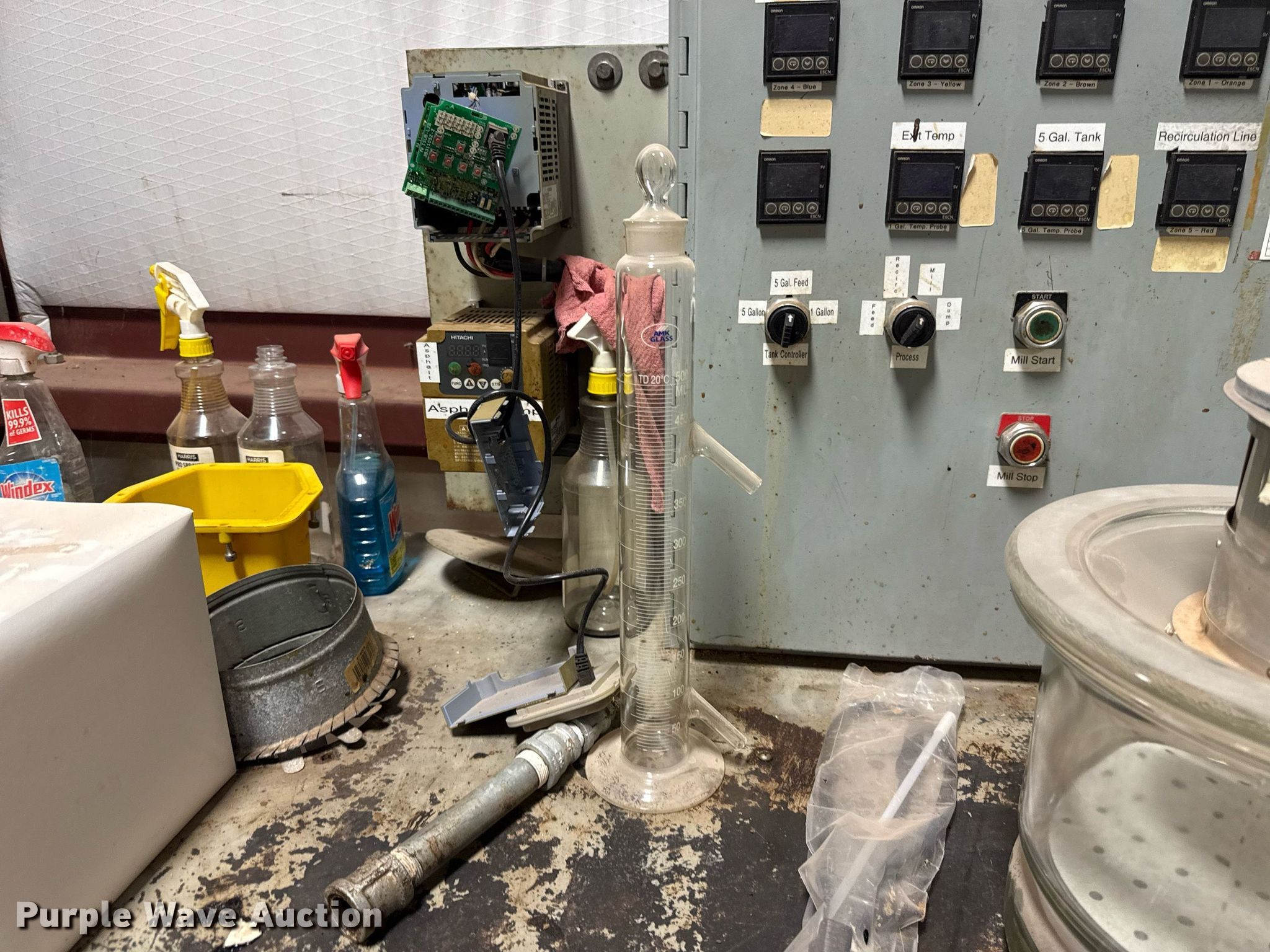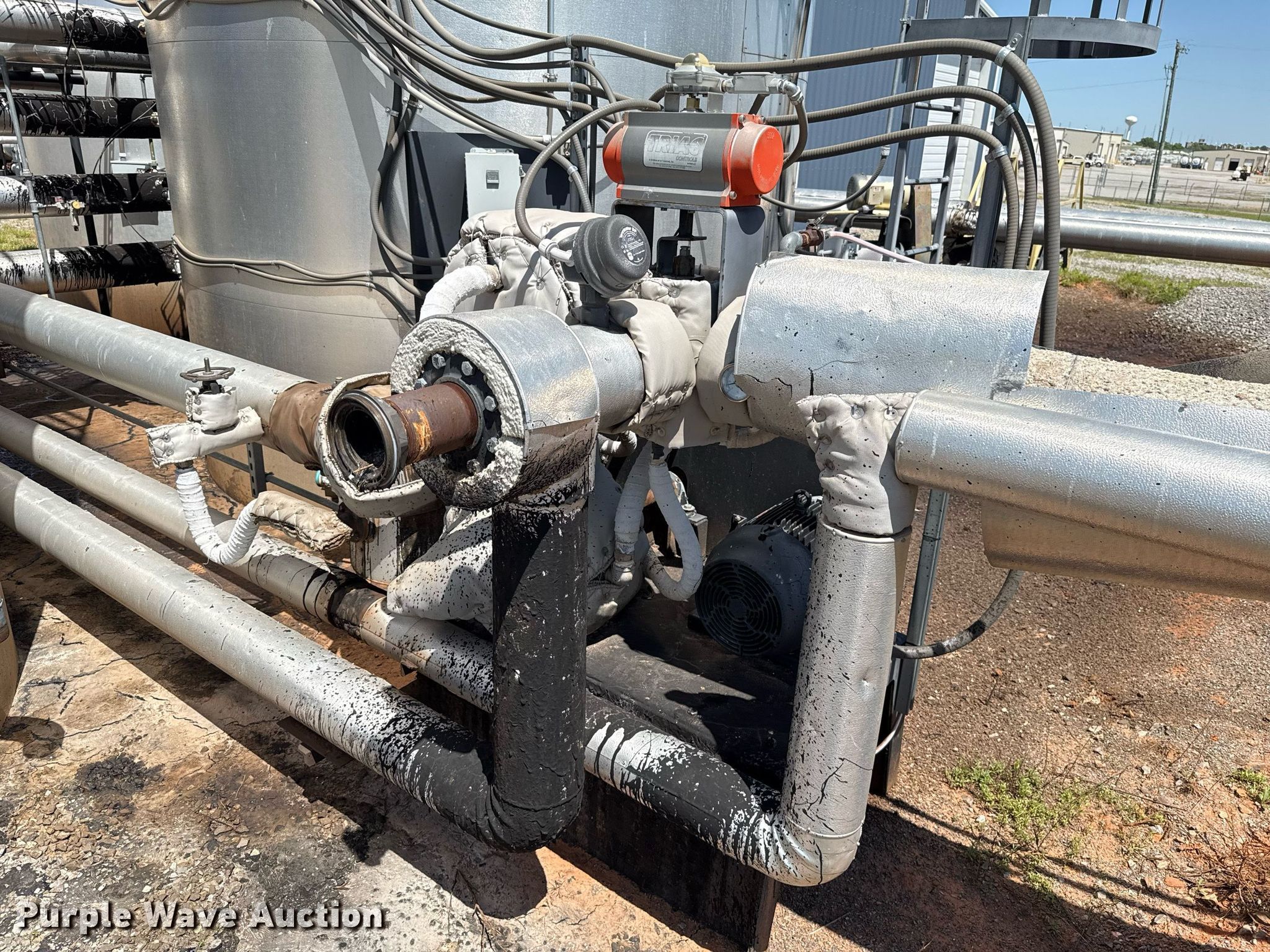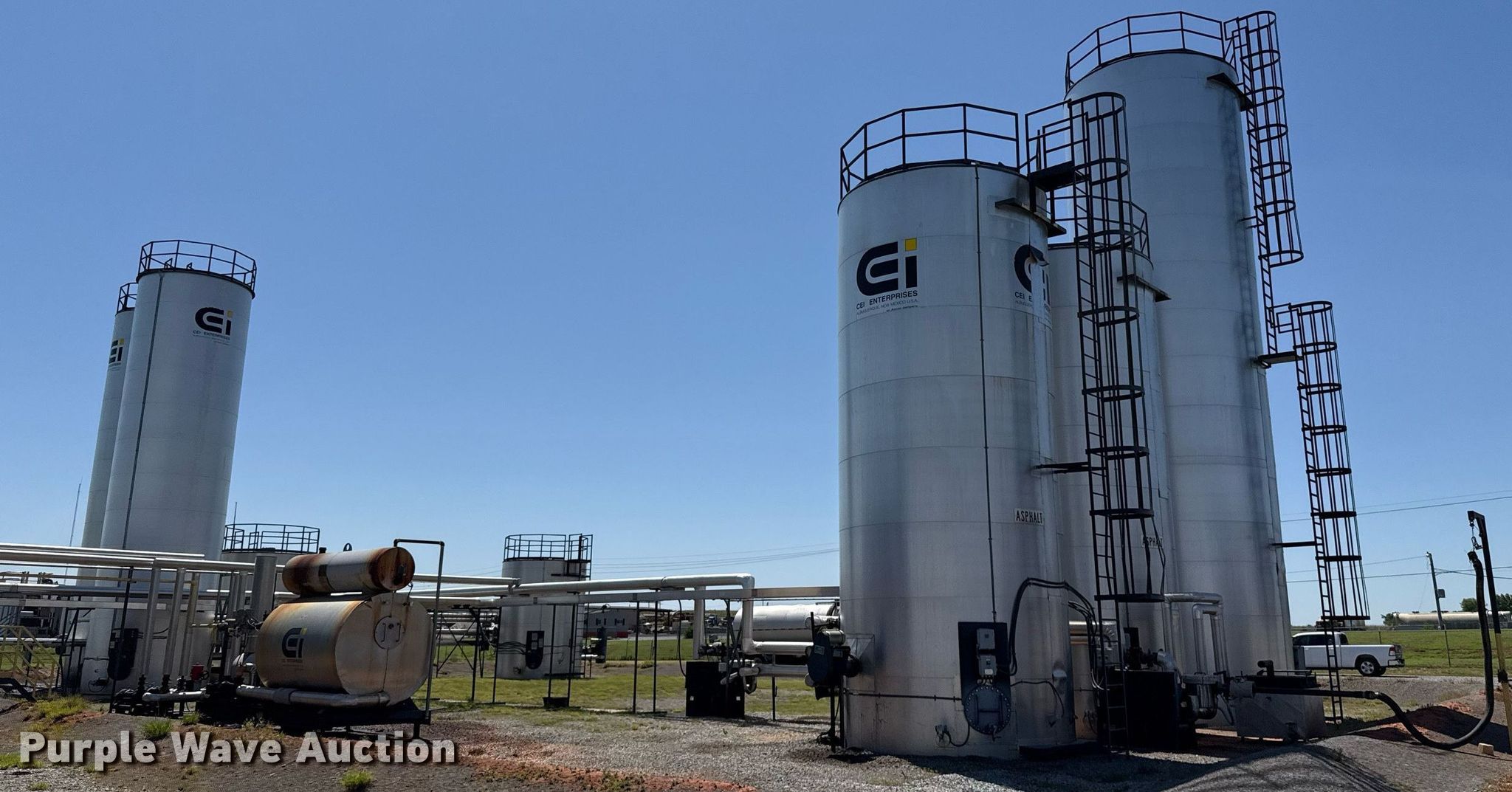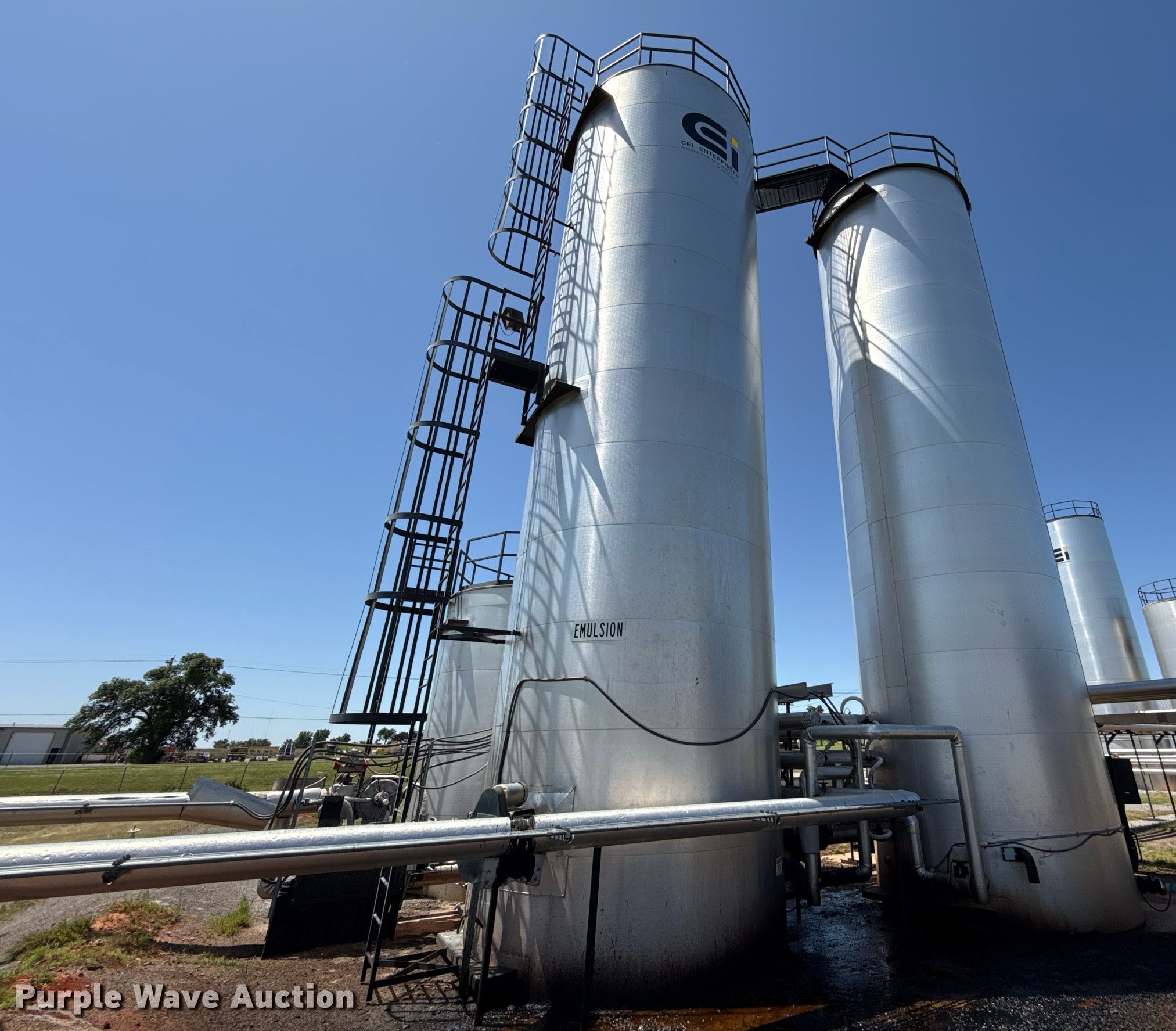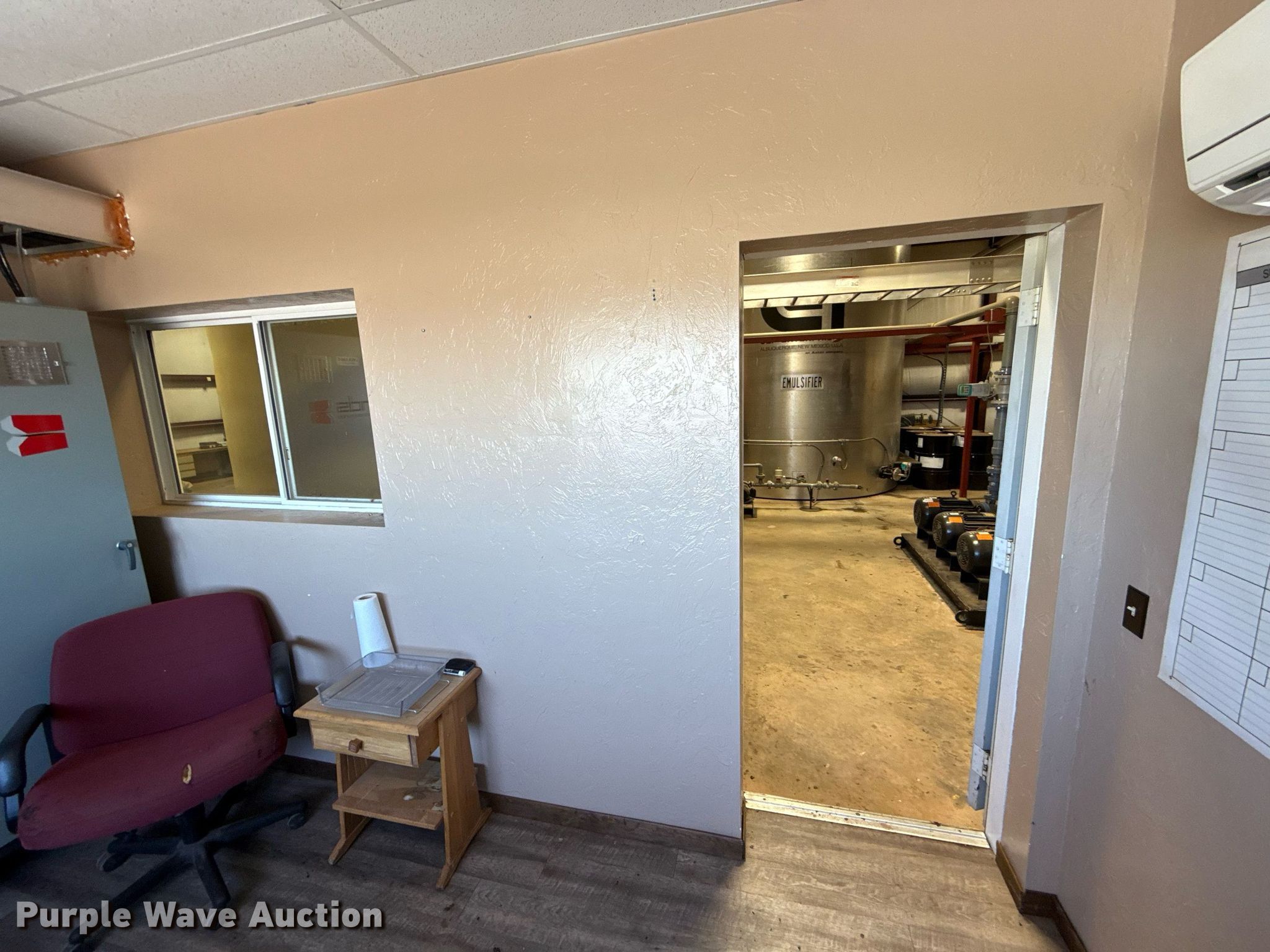 2013 CEI Enterprises asphalt emulsion plant. Dimensions. Building: 80' L x 40' W x 25' H, Scale house: 12' x 15'. Features Scale Sooner Scale Inc, Weight indicator GSE 465, CEI base AC tank Capacity: 40,000 gallons, (2) CEI base AC tanks Capacity: 20,000 gallons, (2) CEI TAV-30DEM emulsion tanks Agitators, CEI TAV-10D emulsion tank Agitator, Warm oil skid, (4) pumps, CEI 6300 oil heater Fuel type: Natural gas, CEI water mix tank, (2) Snyder poly tanks Agitators, CEI TAV6.5 emulsifier tank Capacity: 6,500 gallons, Dalworth MP10SE emulsion mill skid Heat exchanger, Emulsion lab equipment and more. Notes Contents included, Documentation available upon request to [email protected] Contents, Components, Specifications. Disassembly and removal of all structures, hardware, contents, refuse and any other associated debris must be absolute from the entire property and is the sole responsibility of the purchaser.. Item must be removed by December 31, 2025.. Purchaser must provide proof of a one million dollar liability insurance policy prior to removal. Open Inspection July 16. 1779 Marshall Road. Clinton, OK 73601