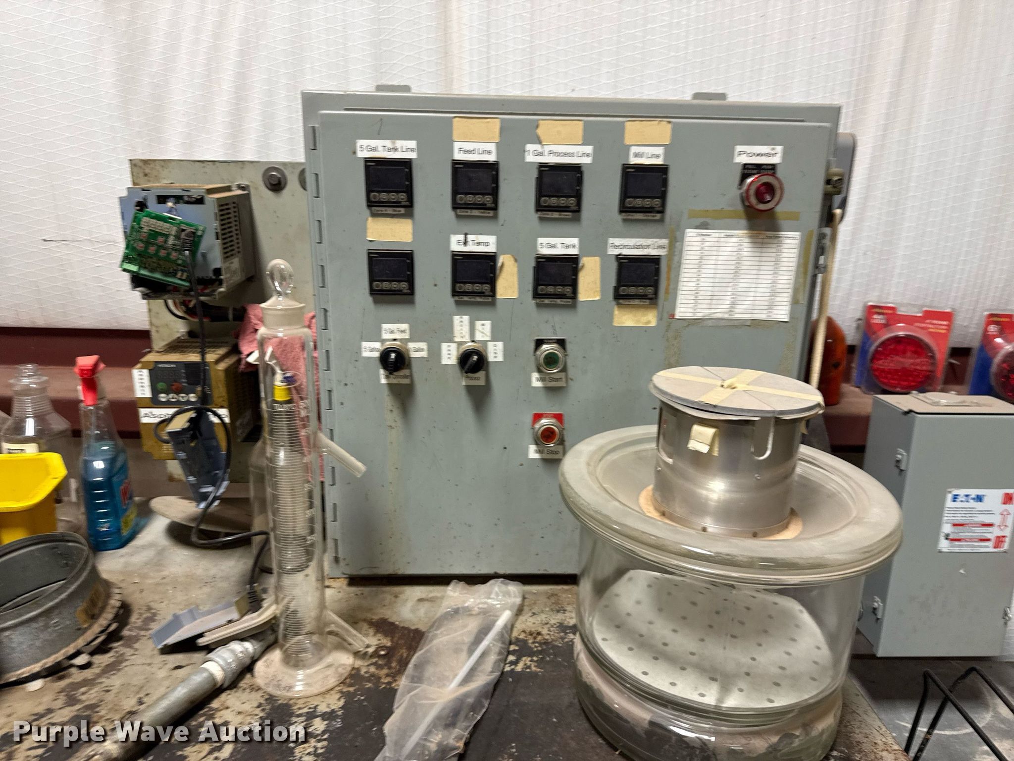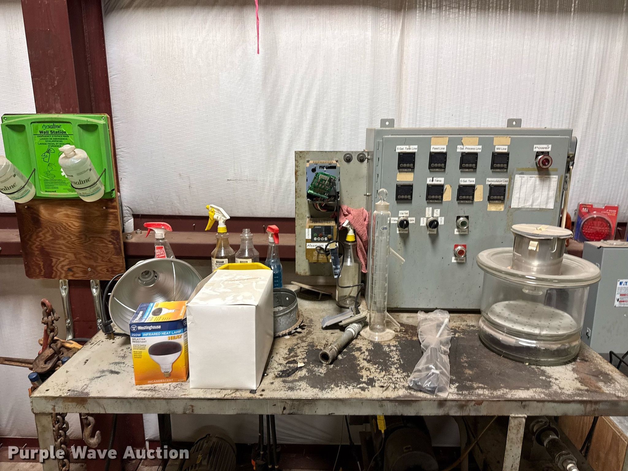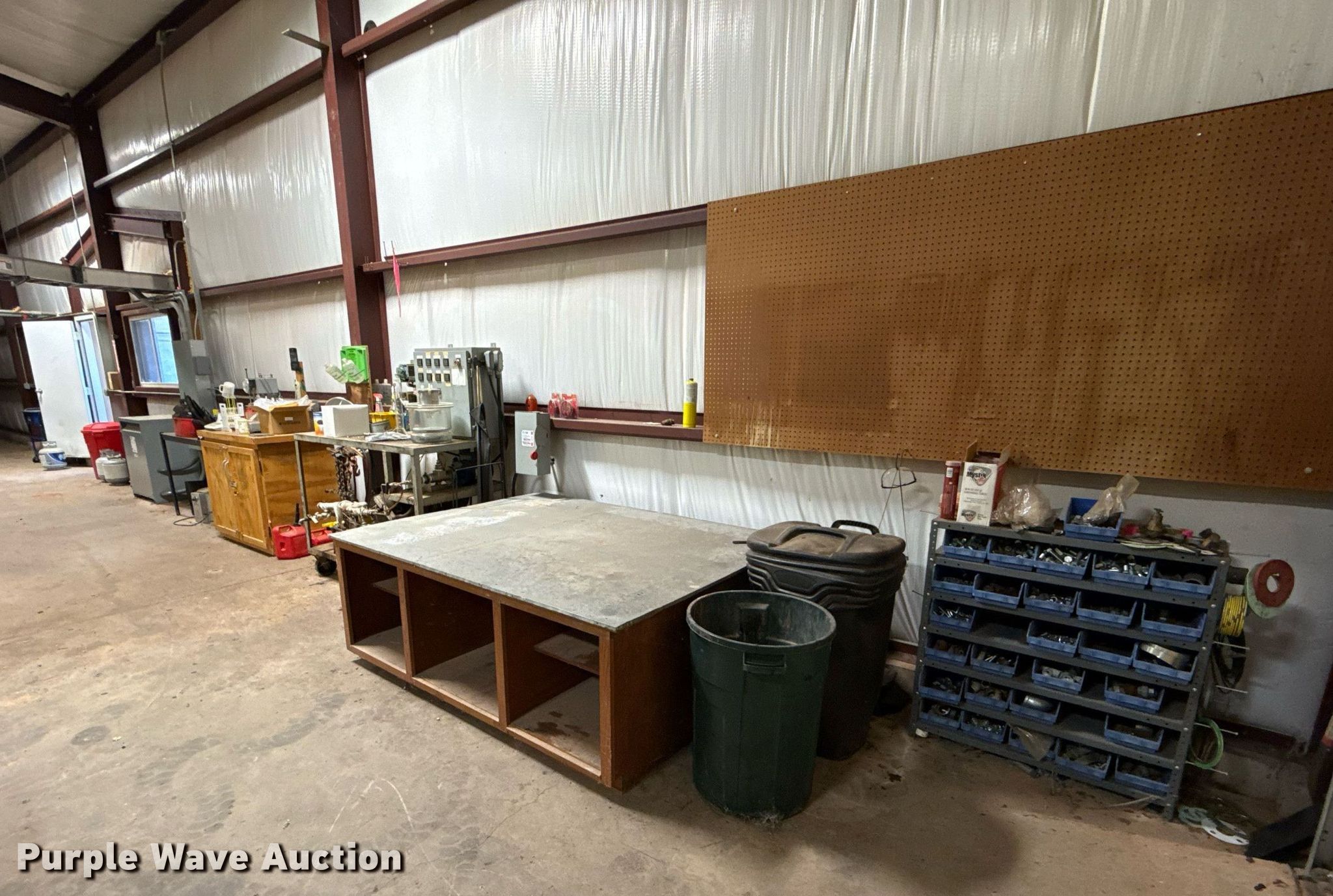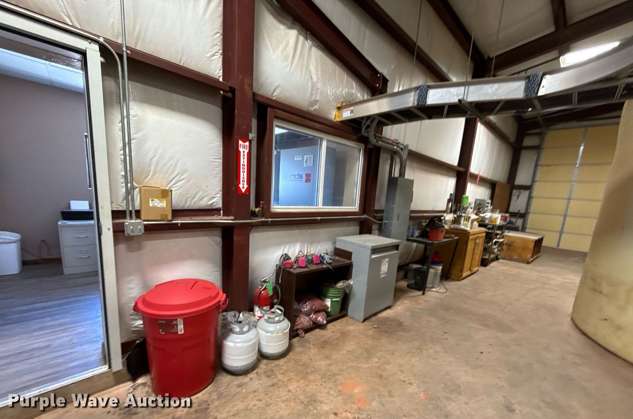 2013 CEI Enterprises asphalt emulsion plant. Dimensions. Building: 80' L x 40' W x 25' H, Scale house: 12' x 15'. Features Scale Sooner Scale Inc, Weight indicator GSE 465, CEI base AC tank Capacity: 40,000 gallons, (2) CEI base AC tanks Capacity: 20,000 gallons, (2) CEI TAV-30DEM emulsion tanks Agitators, CEI TAV-10D emulsion tank Agitator, Warm oil skid, (4) pumps, CEI 6300 oil heater Fuel type: Natural gas, CEI water mix tank, (2) Snyder poly tanks Agitators, CEI TAV6.5 emulsifier tank Capacity: 6,500 gallons, Dalworth MP10SE emulsion mill skid Heat exchanger, Emulsion lab equipment and more. Notes Contents included, Documentation available upon request to [email protected] Contents, Components, Specifications. Disassembly and removal of all structures, hardware, contents, refuse and any other associated debris must be absolute from the entire property and is the sole responsibility of the purchaser.. Item must be removed by December 31, 2025.. Purchaser must provide proof of a one million dollar liability insurance policy prior to removal. Open Inspection July 16. 1779 Marshall Road. Clinton, OK 73601