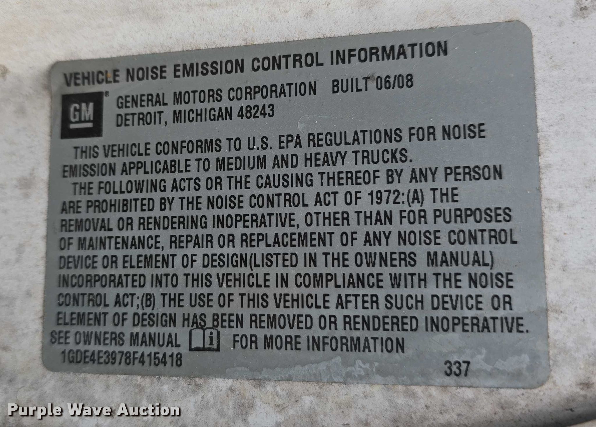 - VIN: 1GDE4E3978F415418