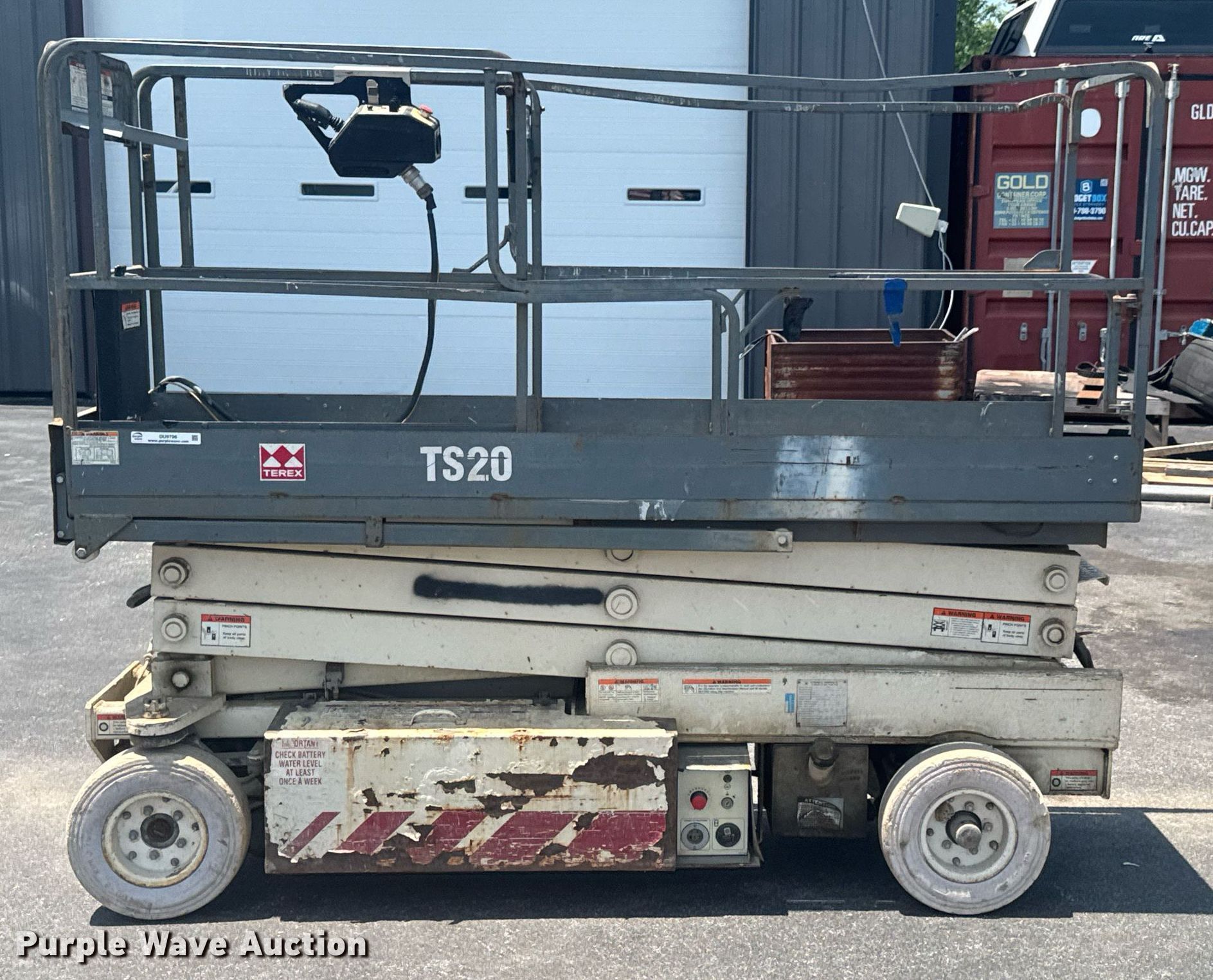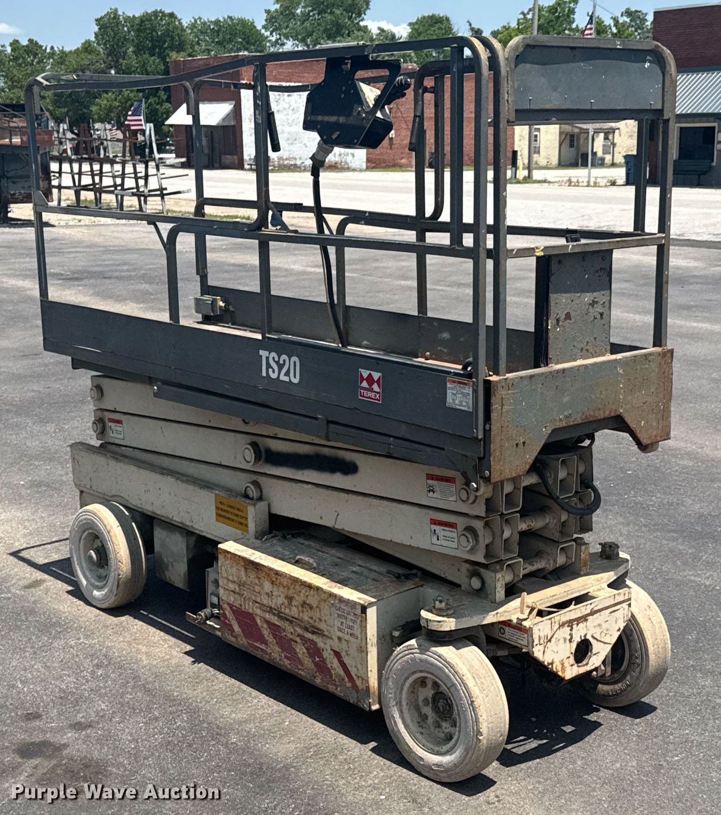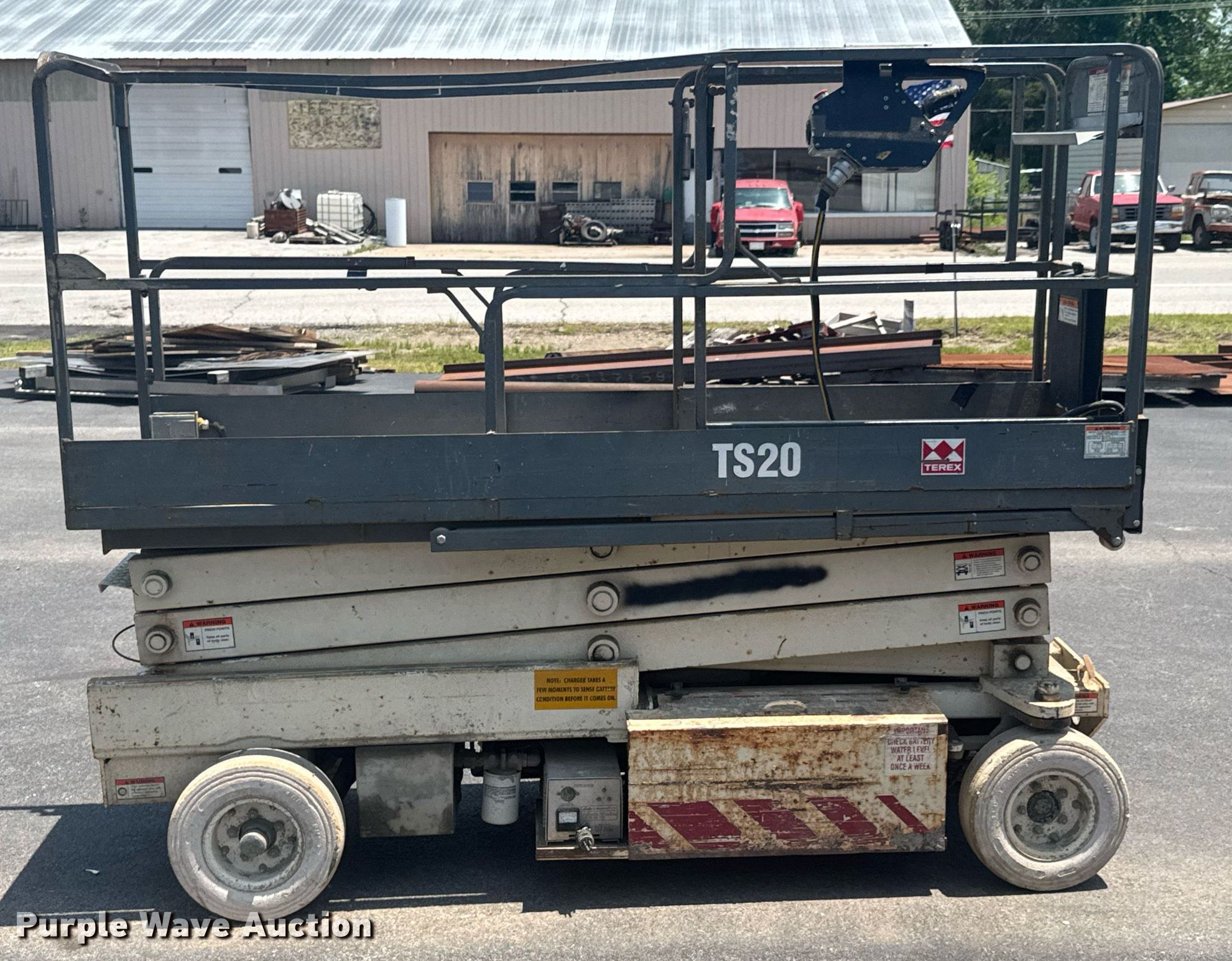 Purple Wave is selling a used Scissor or Vertical Lift in Oklahoma. This item is a Terex TS20 scissor lift with the following: Hours: 591 on meter, Serial: 99320726