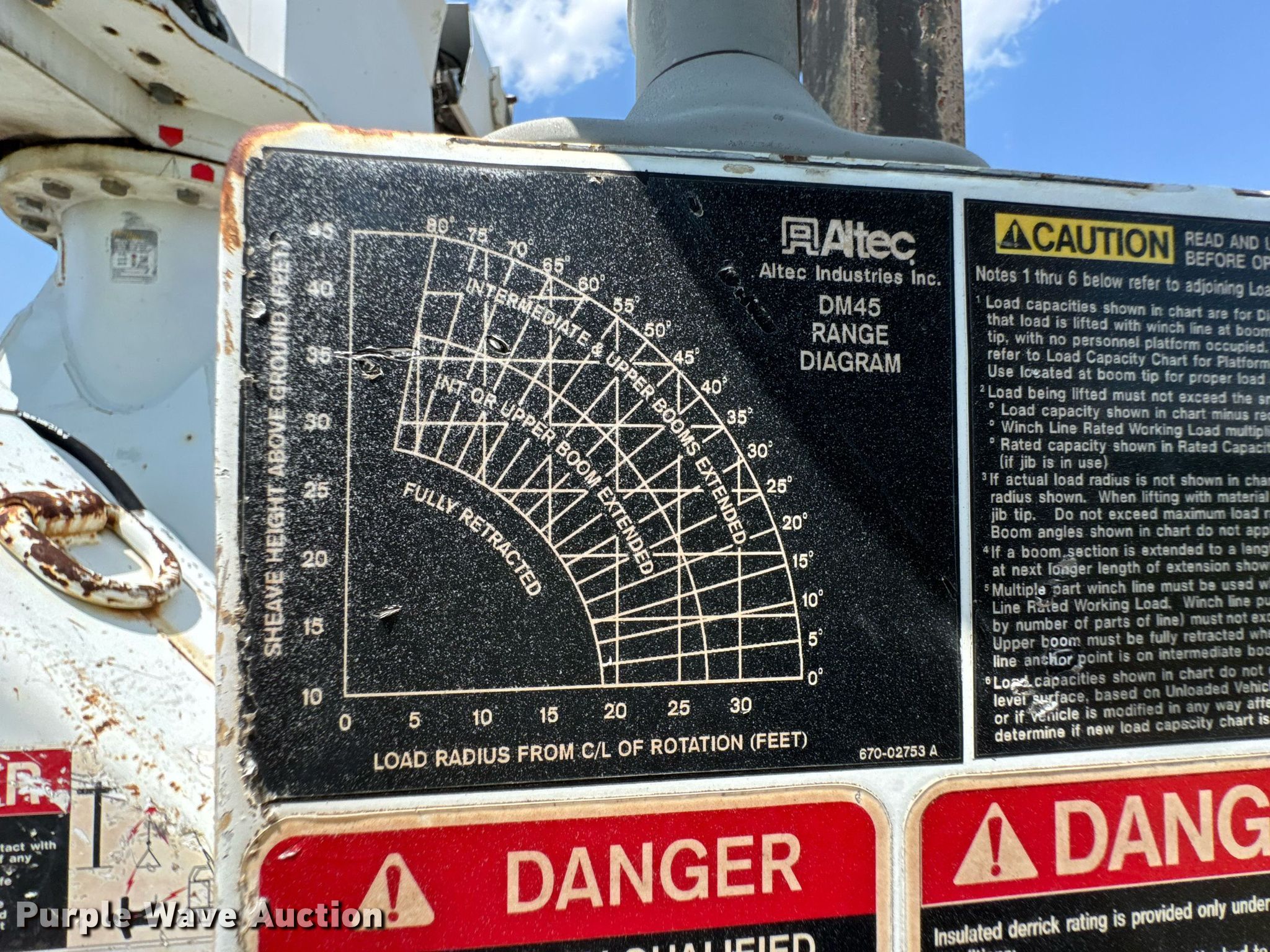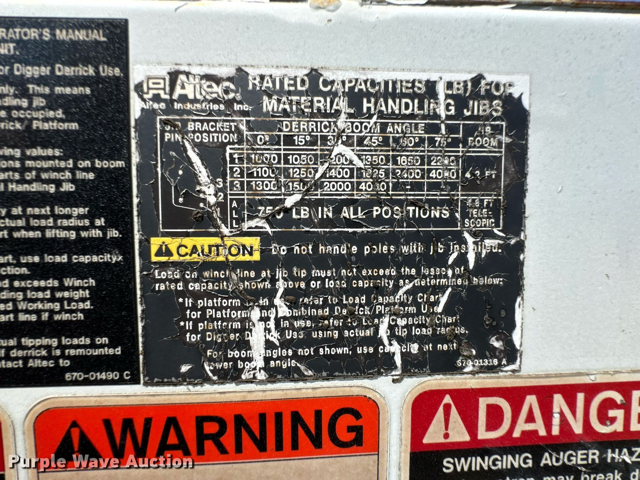 2006 International 4400 digger derrick truck. Miles: Unknown, VIN: 1HTMKAAN96H199834. Engine International DT466, Displacement: 7.6L, Cylinders: 6, Fuel type: Diesel. Transmission Automatic. Chassis Axles: Single, Suspension: Spring, Brakes: Air, PTO. Interior AC, Heat, Cruise control, Auxiliary controls. Features Bed Reading ZAT155ADW, Serial: 600871, 14' 6" L x 92" W, Boom Altec DM45BR, Serial: 0505DV1206, Boom length: 35', Maximum lift capacity: 19,460 lbs, Boom type: Insulated, Telescopic, Boom controls Ground, Material handler, Pole guide, Auger Diameter: 16", Winch capacity Capacity: 15,000 lbs. Tires Size: 11R22.5. Notes Odometer illumination issues, Dead battery, Engine issues, may need replaced , Non-operational unit Unit must be towed or hauled. Kansas title. Mileage has not been verified. Odometer discrepancy will be marked on the title. Seller is a Kansas licensed motor vehicle dealer. The buyer may be required to pay sales tax and/or registration fees to the dealer prior to taking possession. Title will be assigned and distributed by the dealer. Please contact the seller for distribution questions. Title distribution may be delayed up to 14 days from verification of funds. Rocky Hill LLC. Coffeyville, KS 67337
