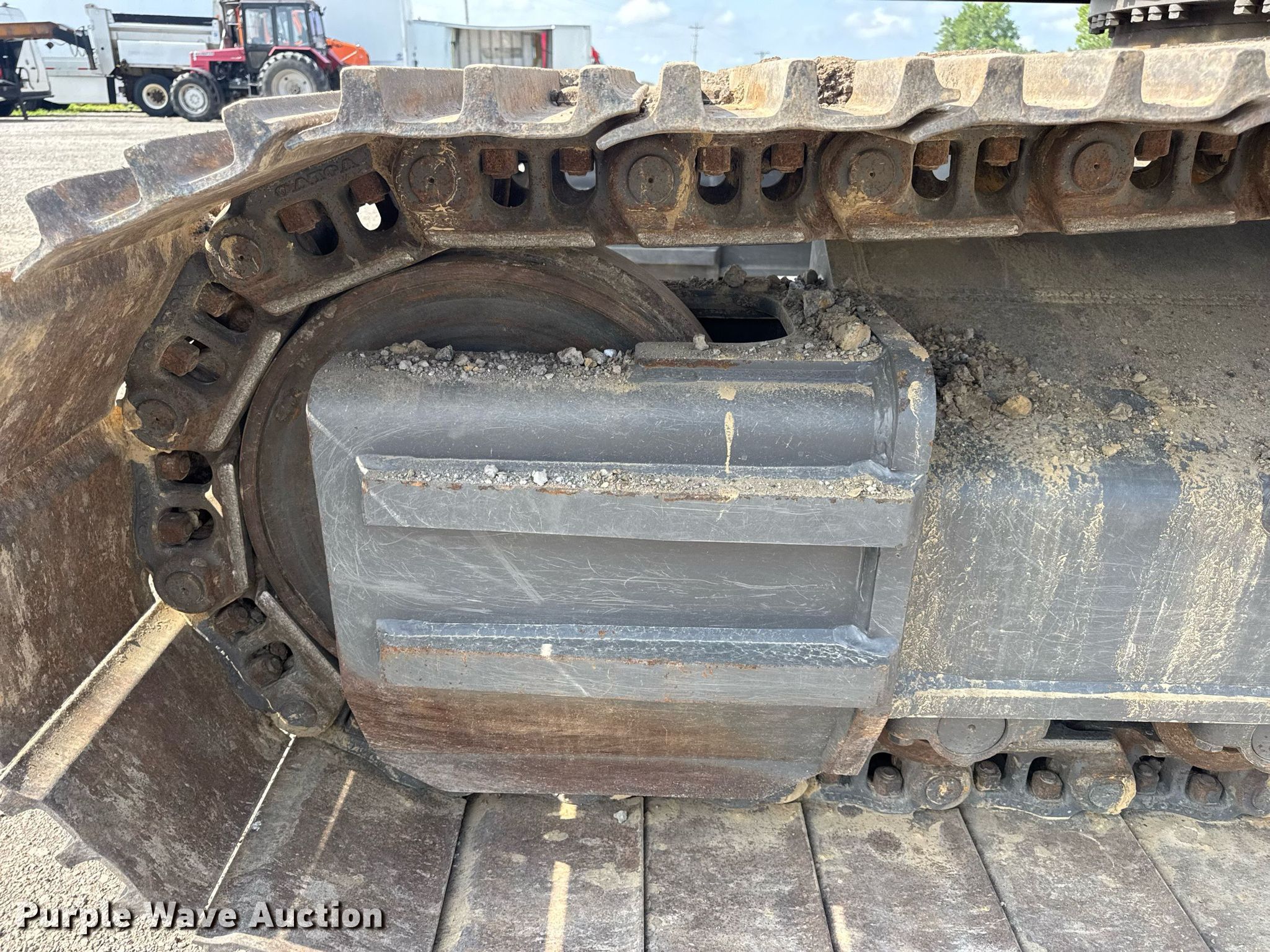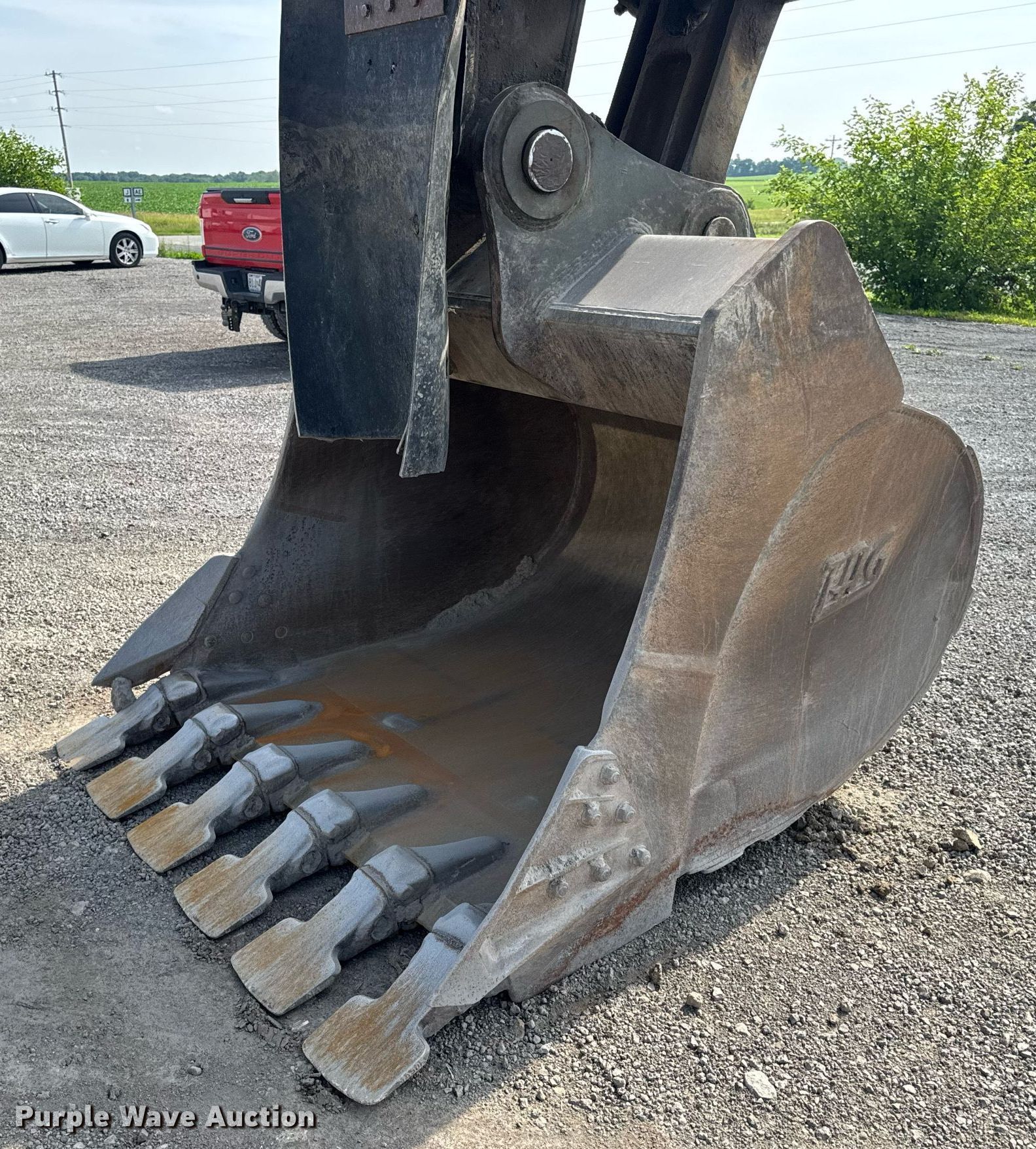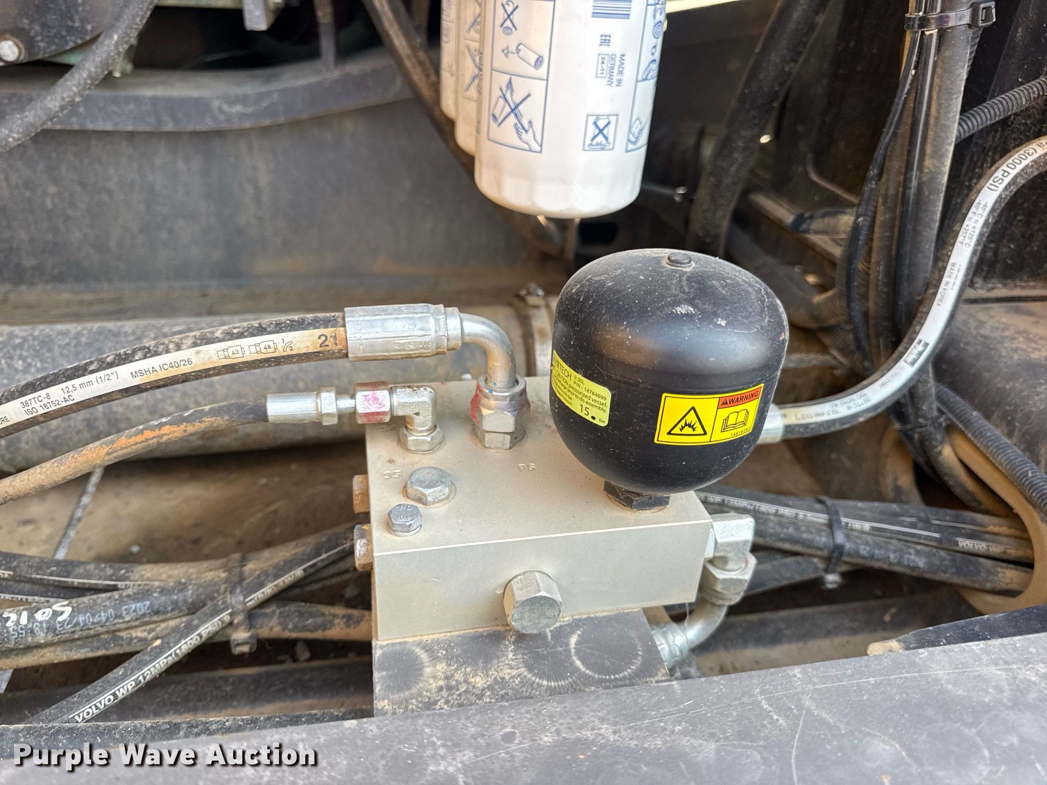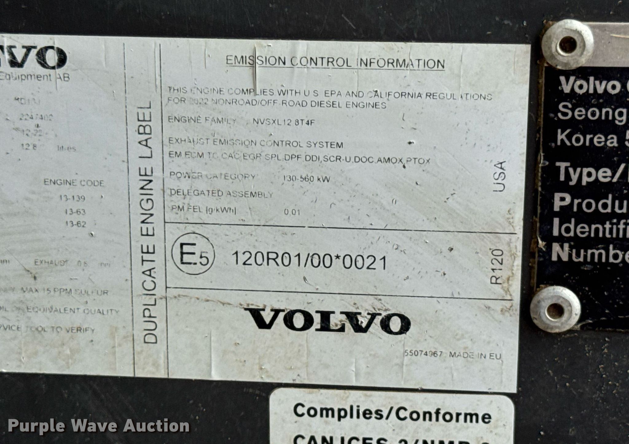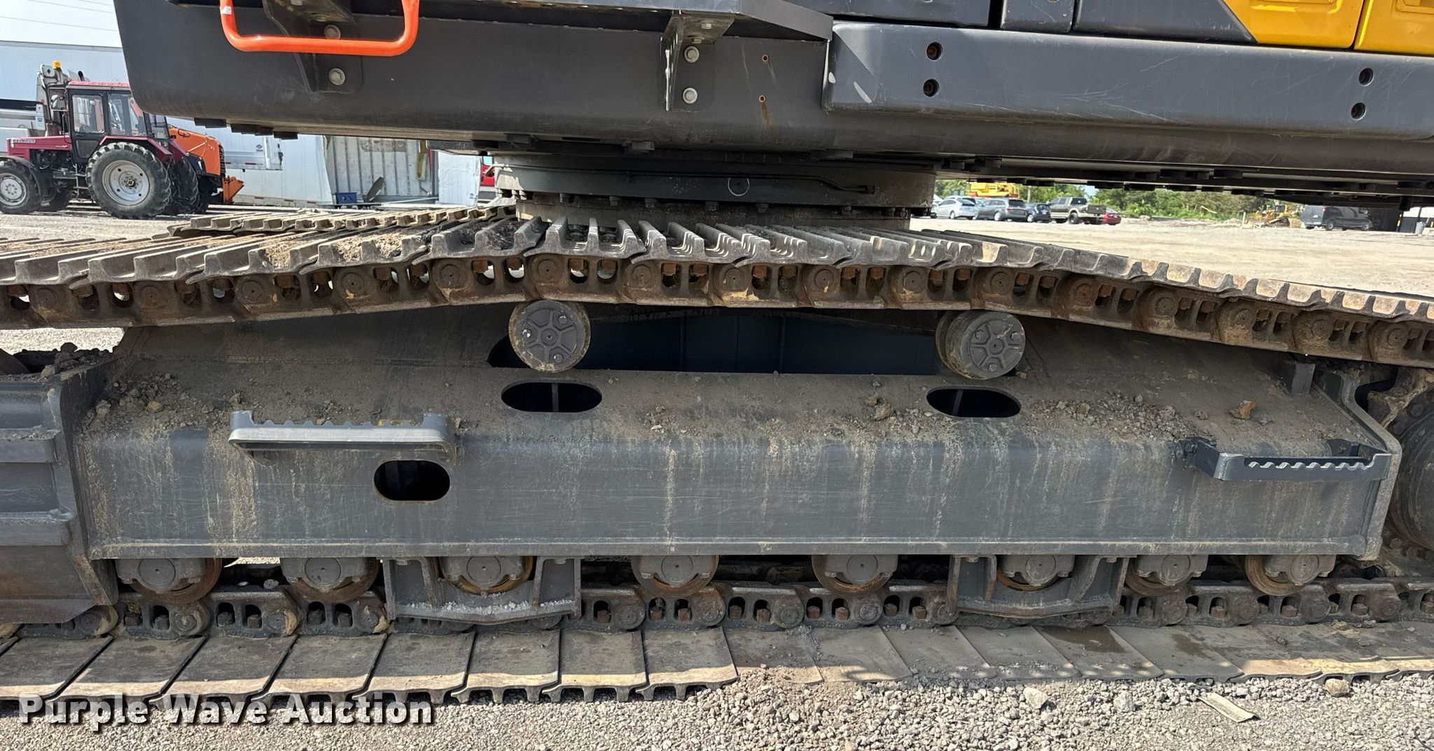 2023 Volvo EC350EL excavator. Hours: 516 on meter, Serial: VCEC350EK00314777. Engine Volvo D13J, Serial: 2247402, Displacement: 12.8L, Cylinders: 6, Fuel type: Diesel. Transmission Hydrostatic, Two speed travel. Operators station Enclosed cab, AC, Heat, Backup camera. Features Auxiliary hydraulics, Counter weights, Removable, Boom Standard, Stick Stick length: 10' 6", Bucket TAG, Capacity: 3.375 cu.yd., Width: 71", Teeth: 6. Tracks Width: 31.5", Steel, Grouser pads: Triple. Notes Warning indicator: P054001 Inlet Air Heater. Commercial Truck and Trailer Repair. Nelson, MO 65347
