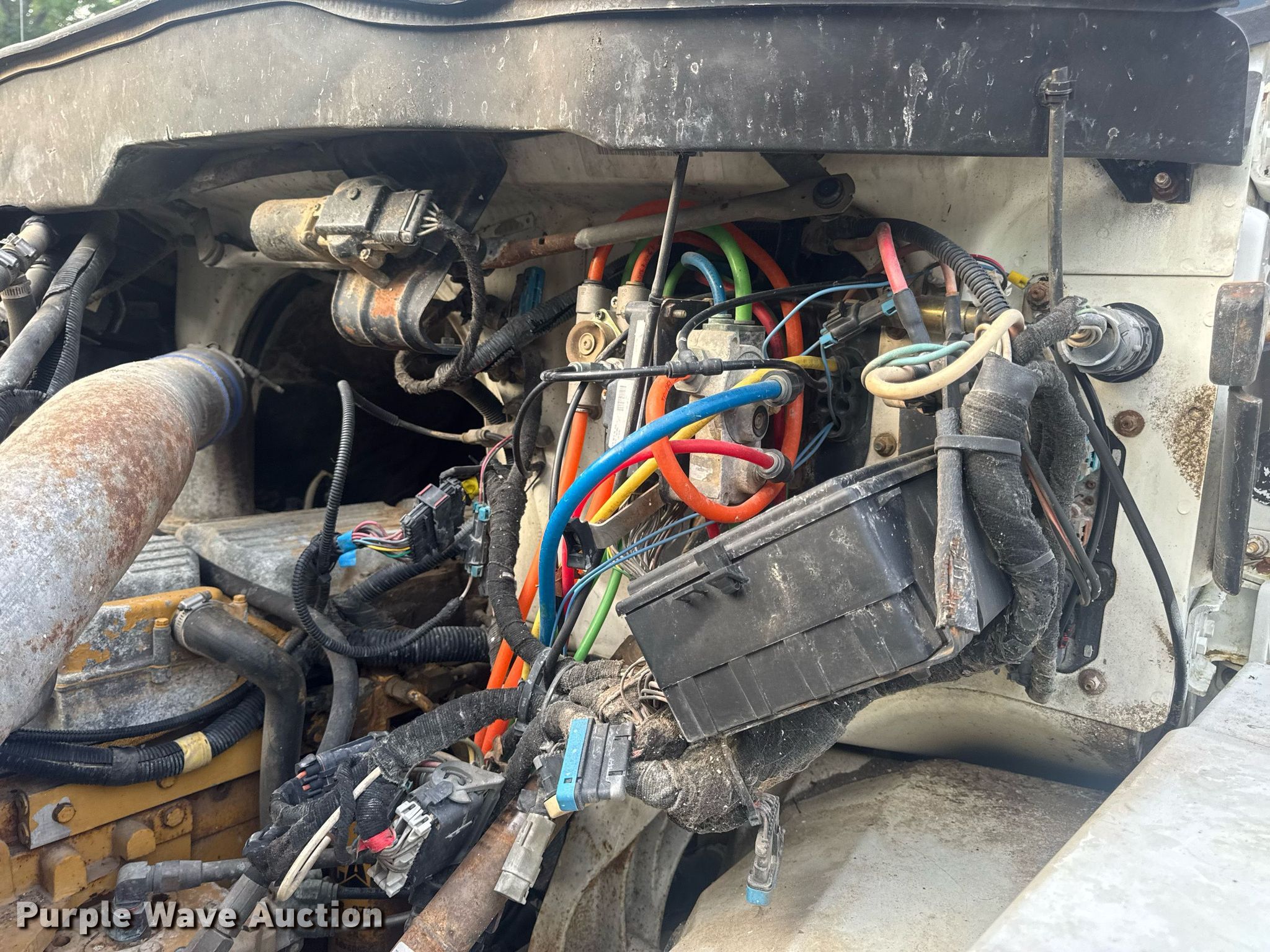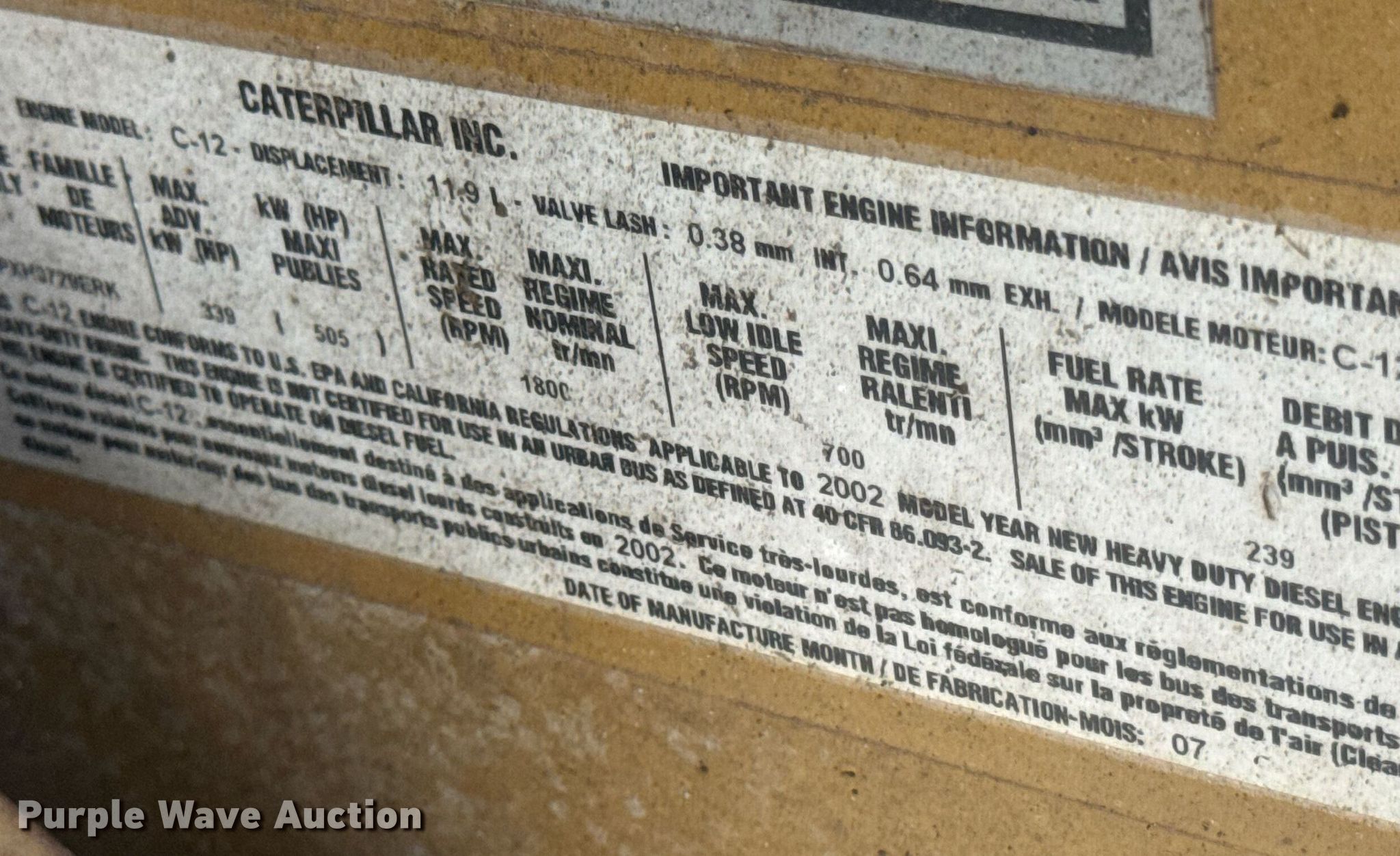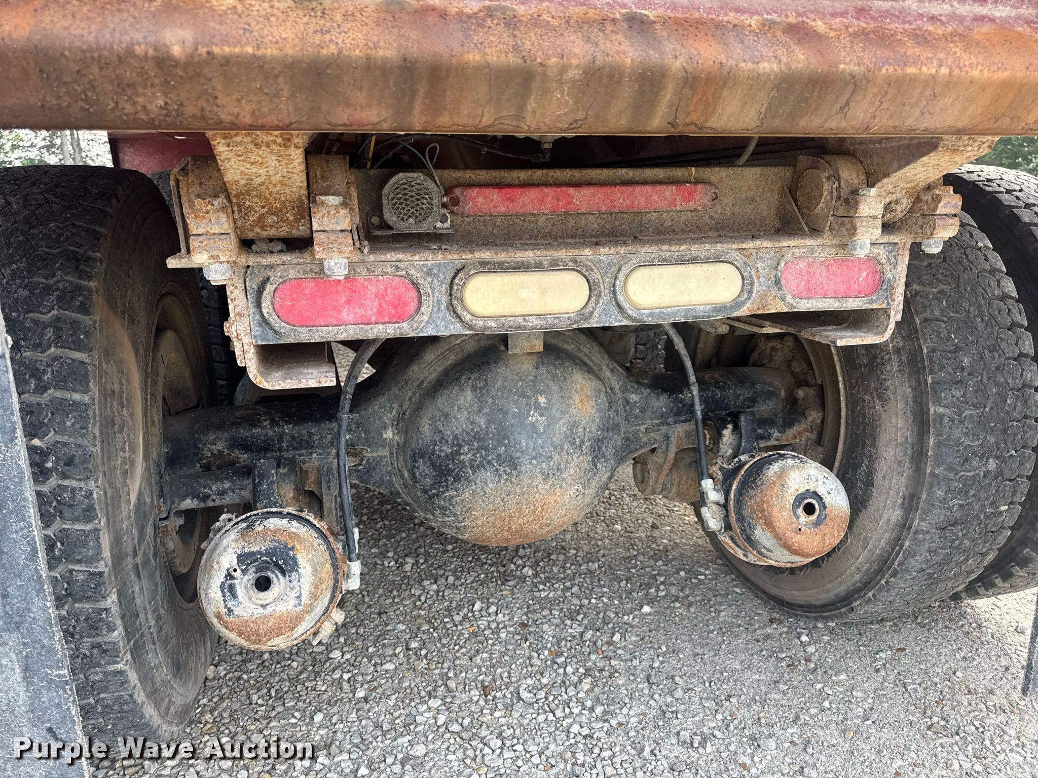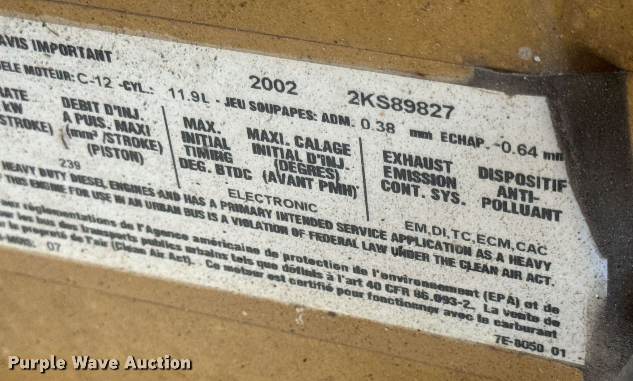 2003 International 7600 6X4 dump truck. Miles: 95,895 on odometer, Hours: 8,415 on meter, VIN: 1HSWXAXR53J065836. Engine Caterpillar C-12, Serial: 2KS89827, Displacement: 11.9L, Cylinders: 6, Fuel type: Diesel. Transmission Eaton Fuller, Manual, Speed: 9. Chassis Double frame, Axles: Tandem, Differential lock: Inter-axle, Suspension: Spring over walking beam, Brakes: Air, PTO, GVWR: 52,860 lbs FAWR: 12,860 lbs, IAWR: 20,000 lbs, RAWR: 20,000 lbs. Interior AC, Heat, Cruise control. Features Dump bed Lanau SH16X48X60, 16' x 99" W, Side height: 48", Side board height: 12", Bed type: Steel, Roll tarp, Ram: Single, End gate: Air operated. Tires Front: 385/65R22.5, Rear: 11R22.5. Notes Dash warning indicator: ABS, Possible AC issues, may need charged, Non-operational fuel gauge, Air leak. Missouri title. Title distribution may be delayed up to 14 days from verification of funds. Stieferman Construction Services. Bonnots Mill, MO 65016