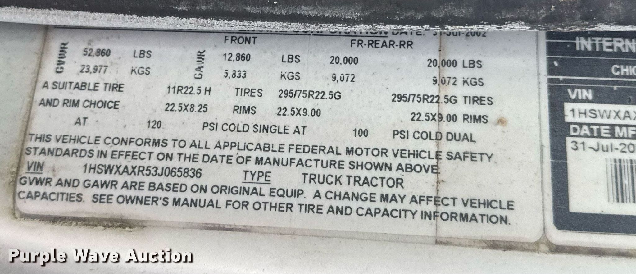 Purple Wave is selling a used Construction Dump Truck in Missouri. This item is a 2003 International 7600 6X4 dump truck with the following: Miles: 95,895 on odometer, Hours: 8,415 on meter, VIN: 1HSWXAXR53J065836