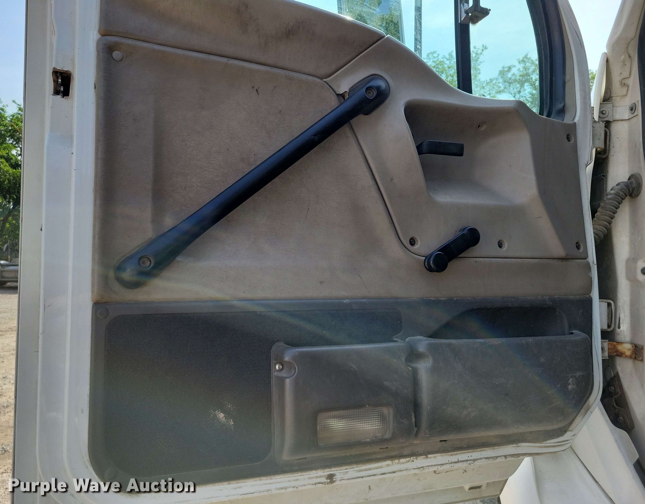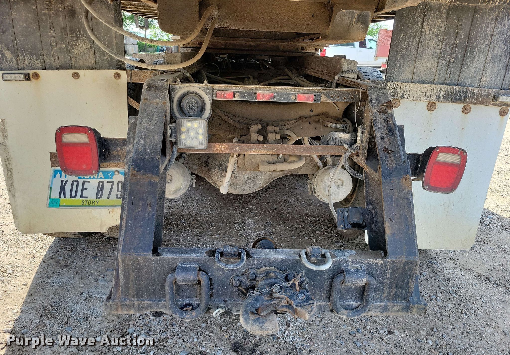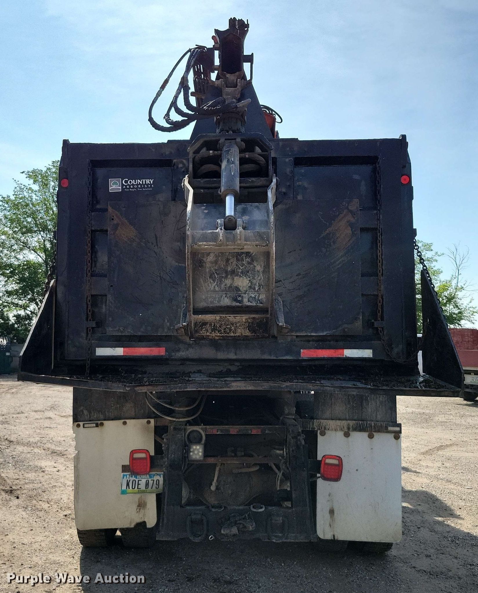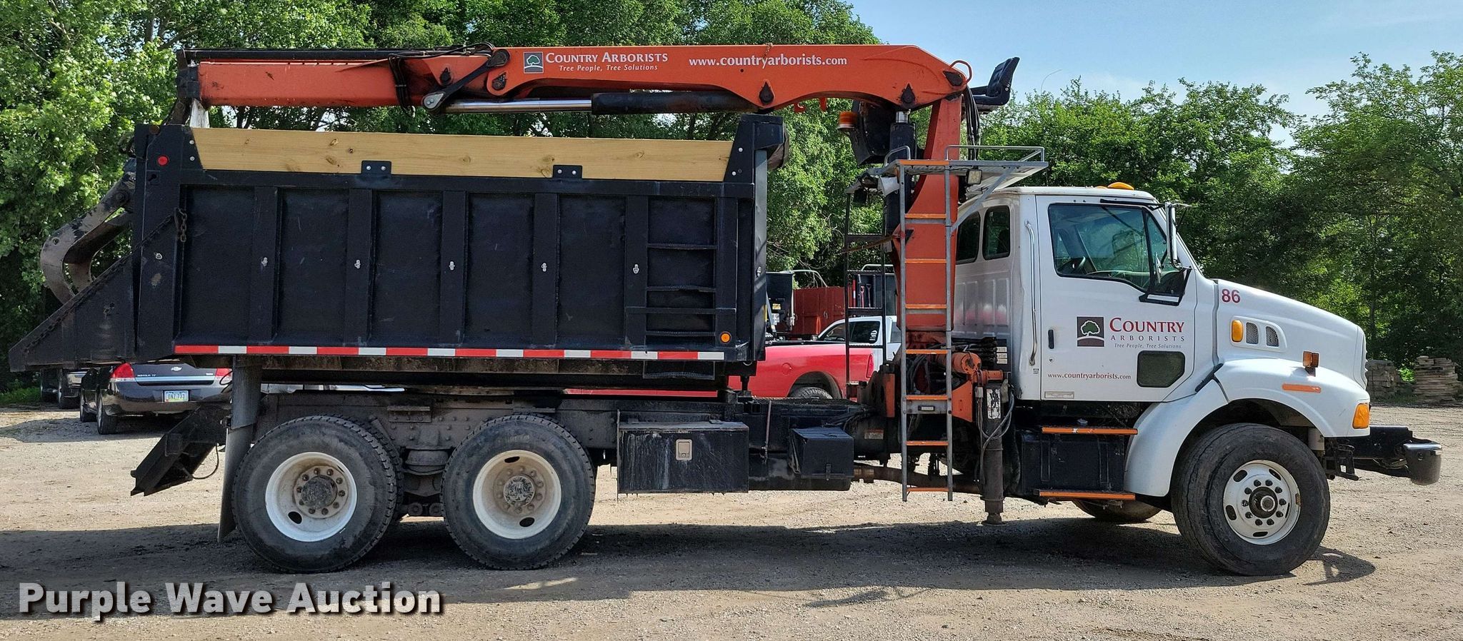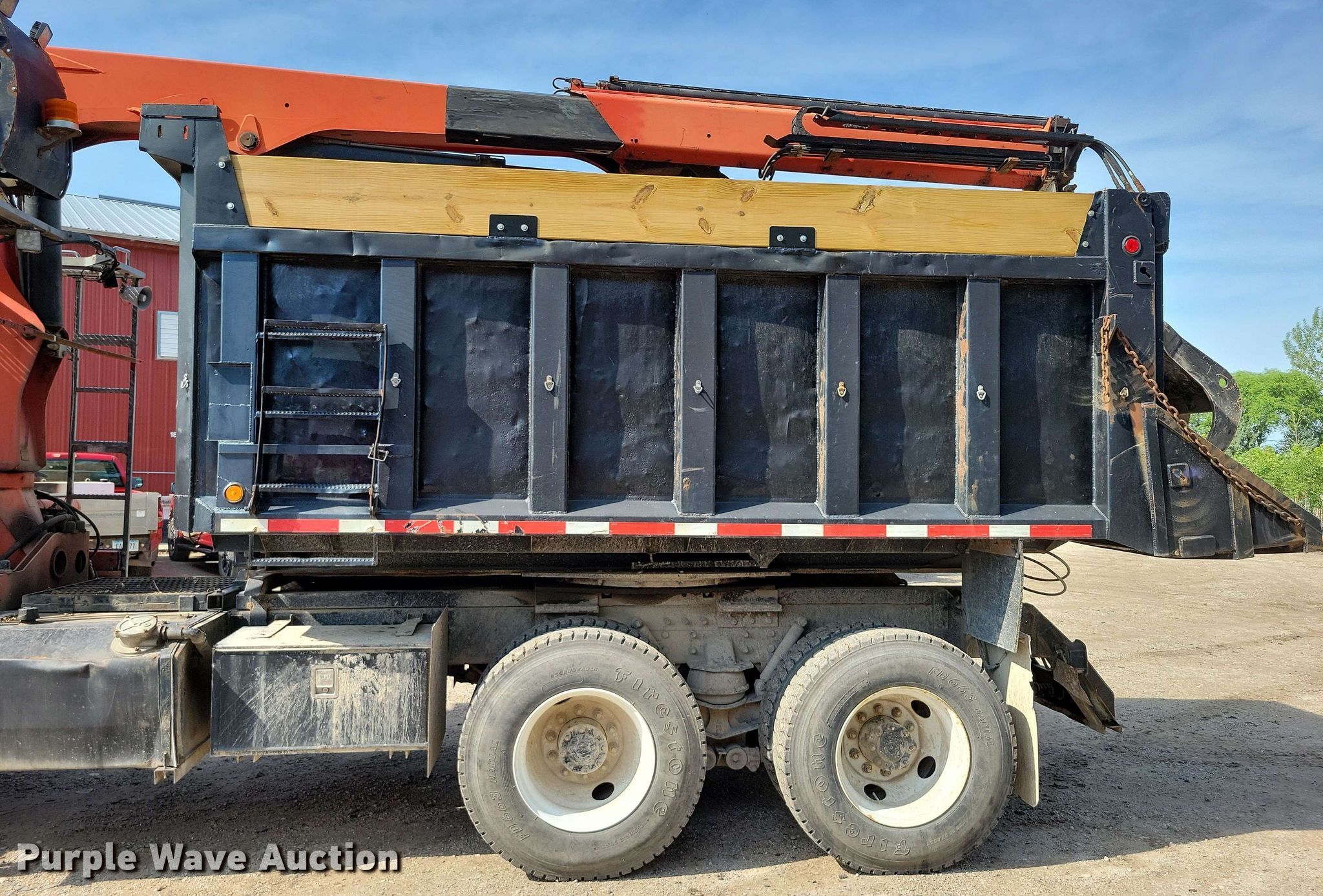 2003 Sterling LT8500 grapple crane truck. Miles: 287,810 on odometer, VIN: 2FZHAWAK63AL84641. Engine Caterpillar 3126E, Serial: 64116G009, Displacement: 7.2L, Cylinders: 6, Fuel type: Diesel. Transmission Eaton Fuller Roadranger, Manual, Speed: 10. Chassis Axles: Tandem, Differential lock: Inter-axle, Suspension: Spring over walking beam, Brakes: Air, PTO, GVWR: 56,000 lbs FAWR: 16,000 lbs, IAWR: 20,000 lbs, RAWR: 20,000 lbs. Interior AC, Heat, Cruise control, Brake controller. Features Dump bed 14' L x 96" W, Rotating dump bed, Crane Boom Telescopic, Knuckle, Maximum boom length: 28' Sections: 3, Boom controls Platform/ basket, Outriggers. Tires Front: 315/80R22.5, Rear: 11R22.5. Notes Remanufactured engine, Crane tower hydraulic issues, leaks, Air tank issues, leaks. Iowa title. Title distribution may be delayed up to 14 days from verification of funds. Country Landscapes, Inc.. Ames, IA 50010