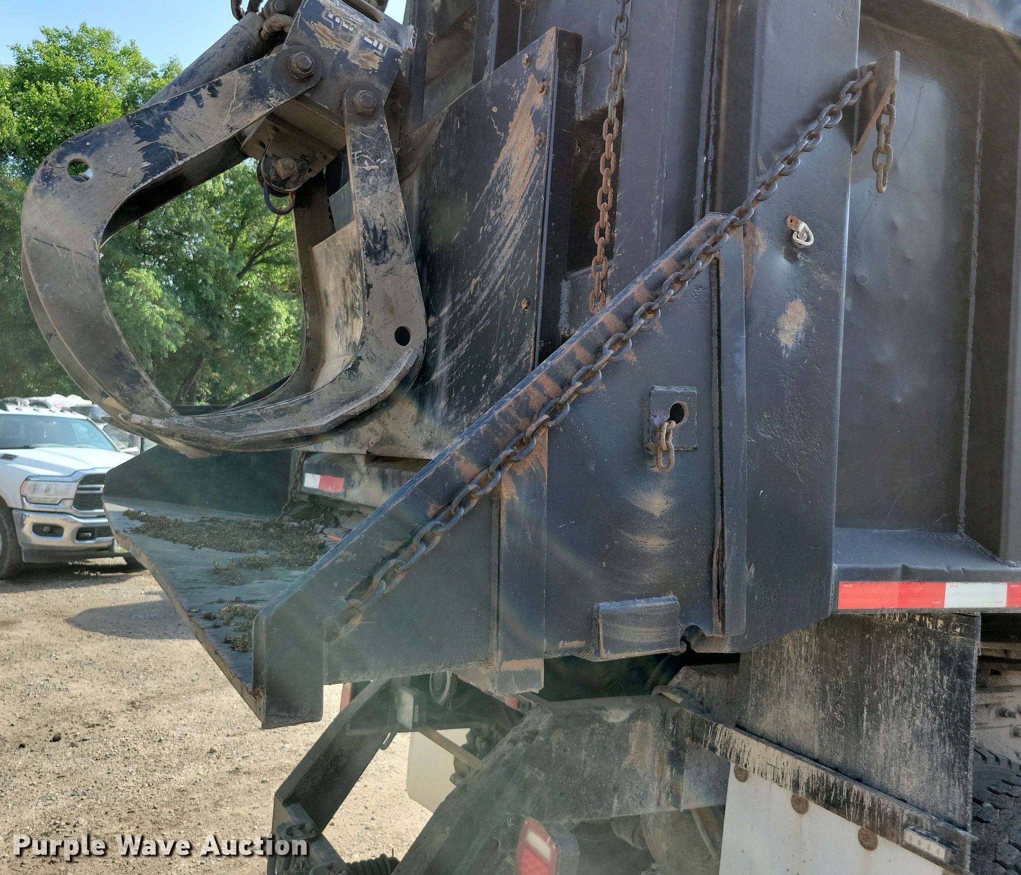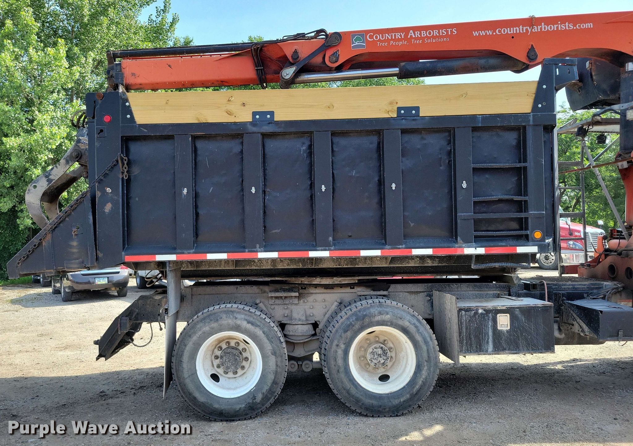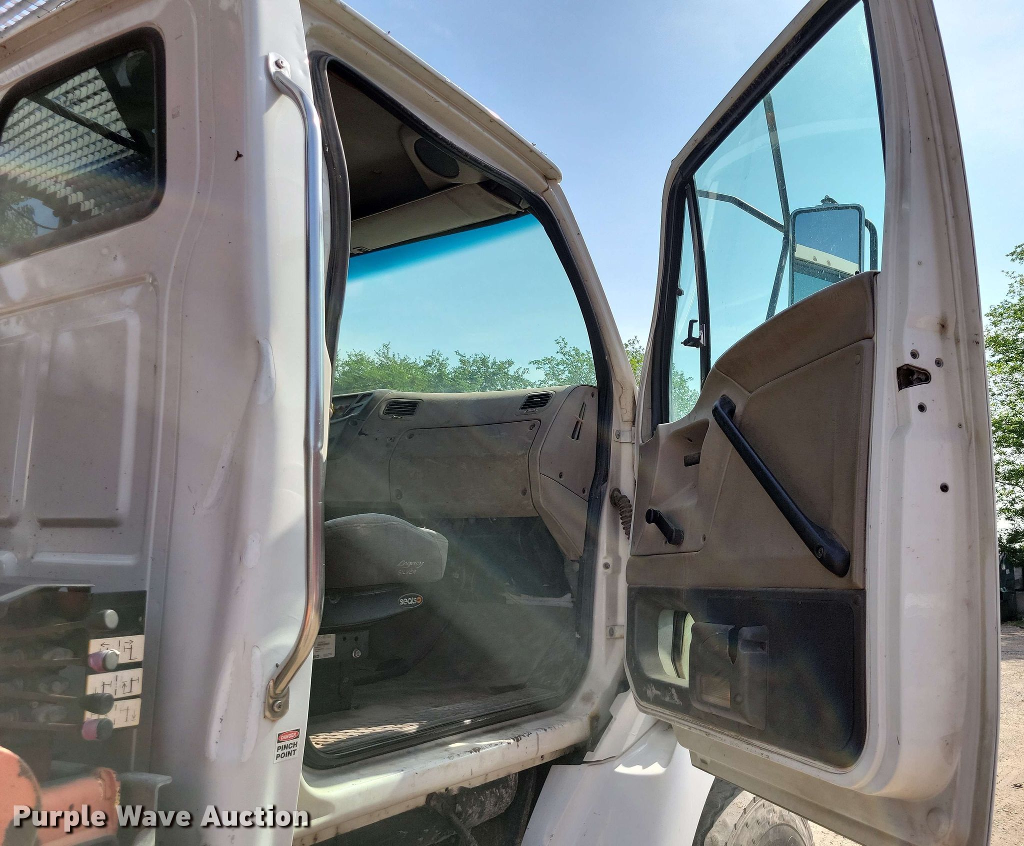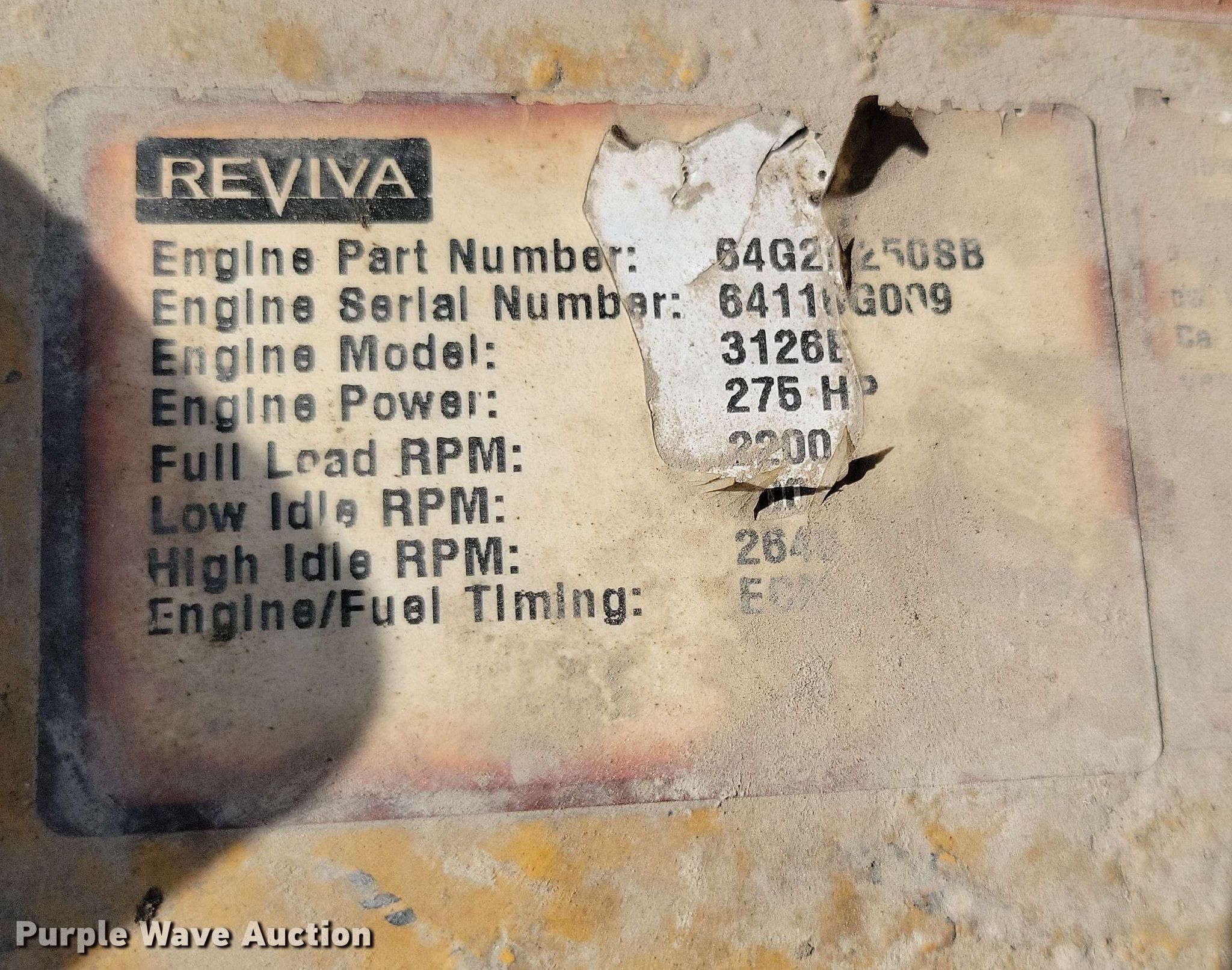 2003 Sterling LT8500 grapple crane truck. Miles: 287,810 on odometer, VIN: 2FZHAWAK63AL84641. Engine Caterpillar 3126E, Serial: 64116G009, Displacement: 7.2L, Cylinders: 6, Fuel type: Diesel. Transmission Eaton Fuller Roadranger, Manual, Speed: 10. Chassis Axles: Tandem, Differential lock: Inter-axle, Suspension: Spring over walking beam, Brakes: Air, PTO, GVWR: 56,000 lbs FAWR: 16,000 lbs, IAWR: 20,000 lbs, RAWR: 20,000 lbs. Interior AC, Heat, Cruise control, Brake controller. Features Dump bed 14' L x 96" W, Rotating dump bed, Crane Boom Telescopic, Knuckle, Maximum boom length: 28' Sections: 3, Boom controls Platform/ basket, Outriggers. Tires Front: 315/80R22.5, Rear: 11R22.5. Notes Remanufactured engine, Crane tower hydraulic issues, leaks, Air tank issues, leaks. Iowa title. Title distribution may be delayed up to 14 days from verification of funds. Country Landscapes, Inc.. Ames, IA 50010