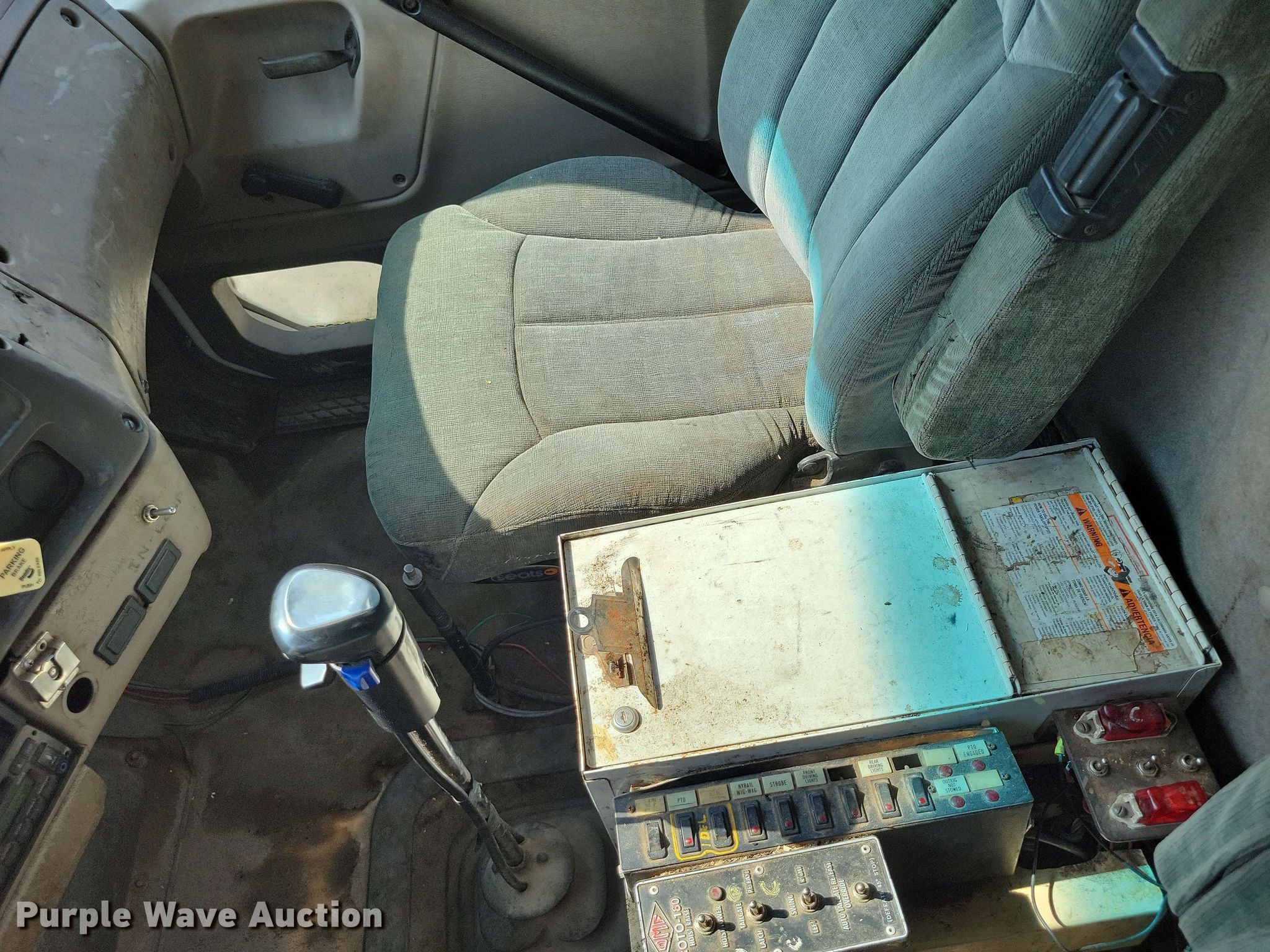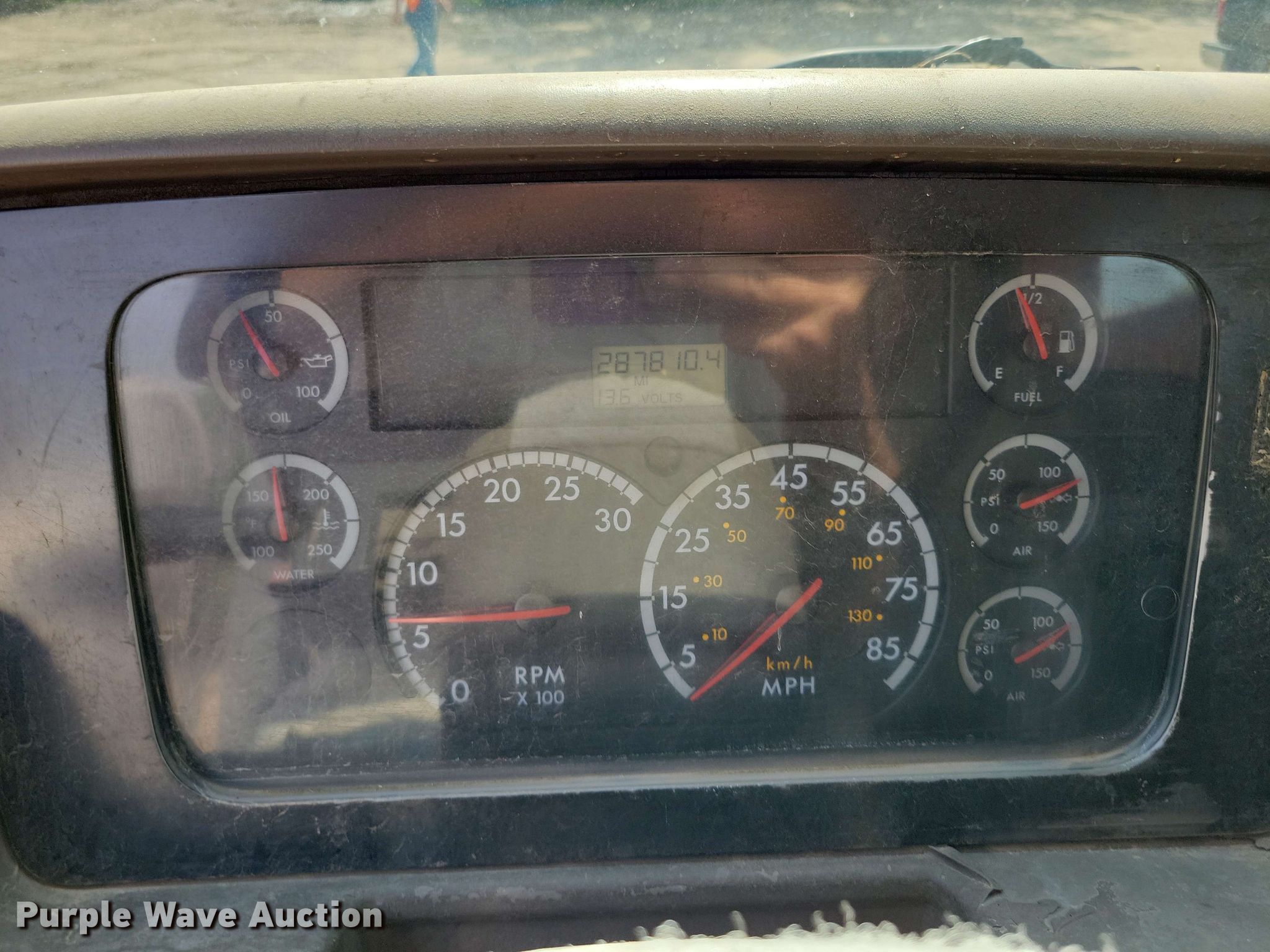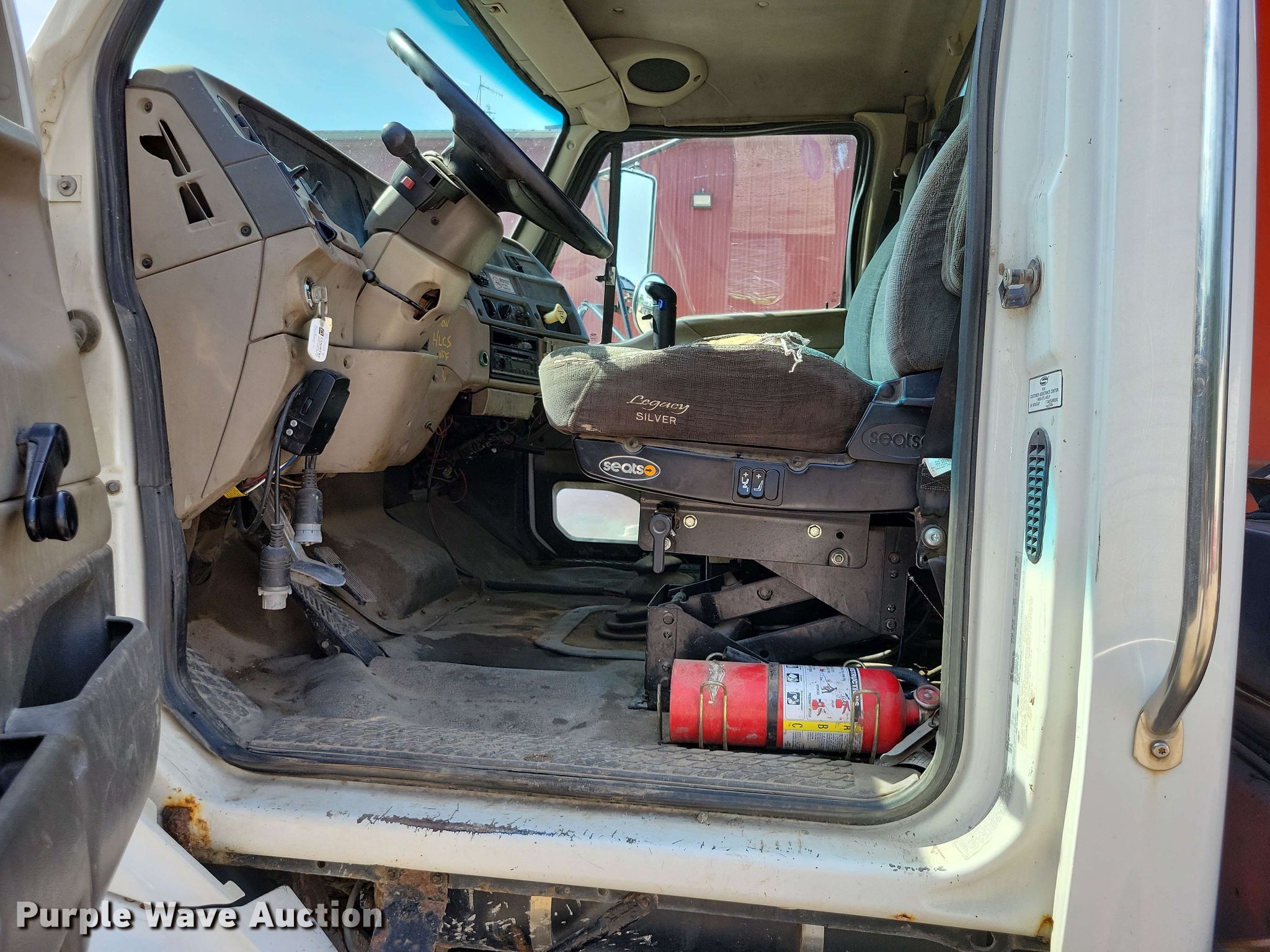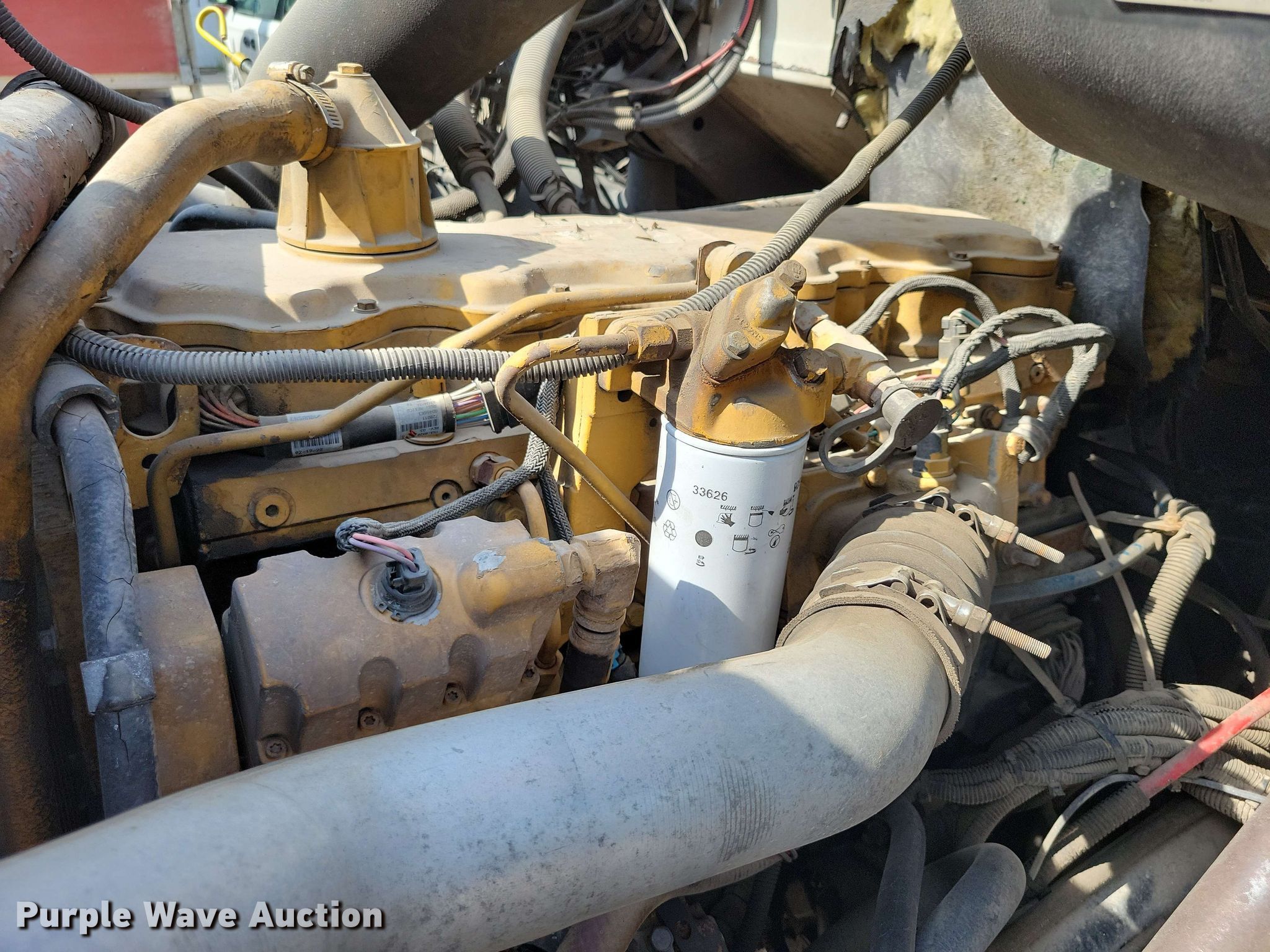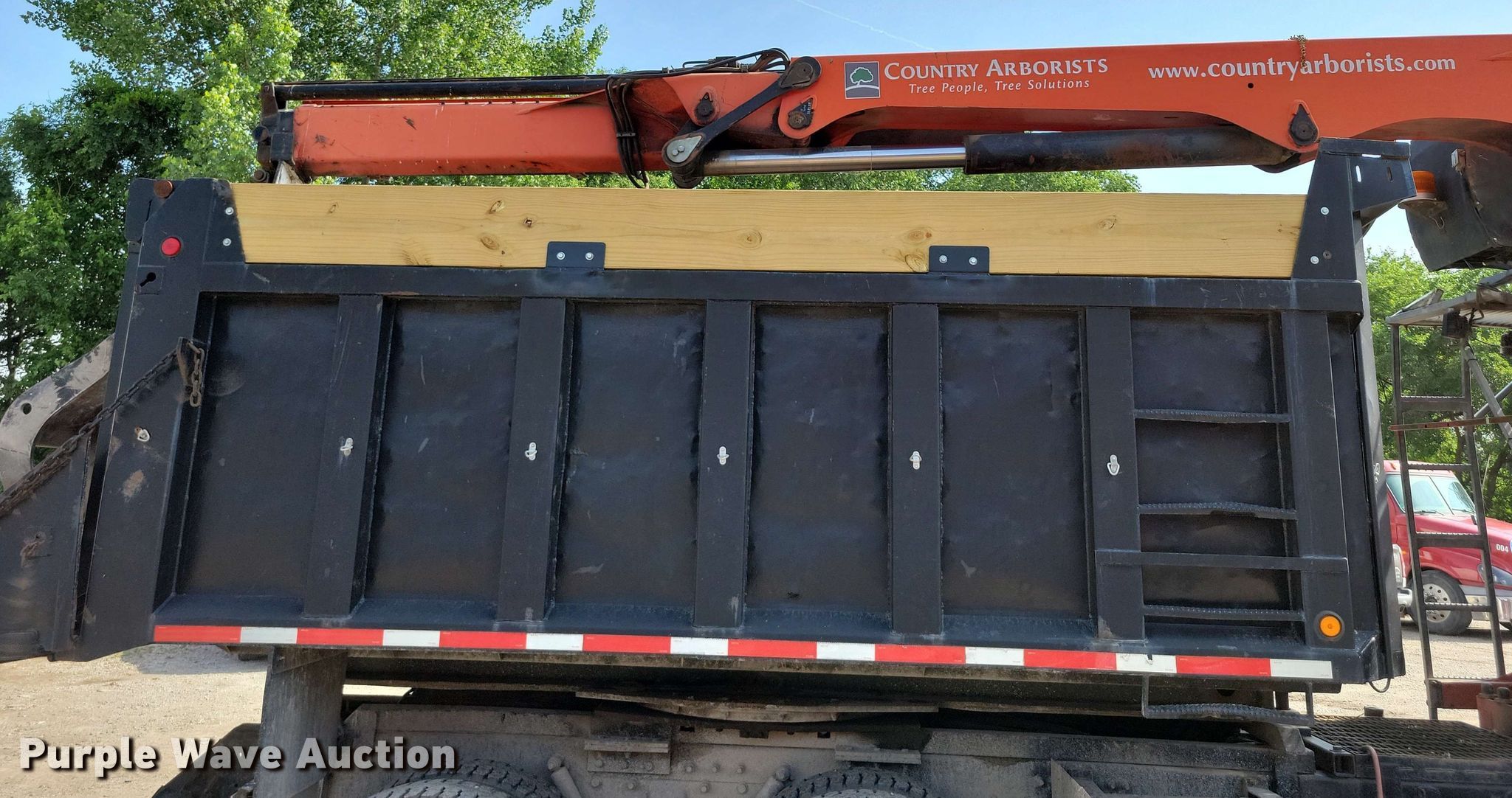 2003 Sterling LT8500 grapple crane truck. Miles: 287,810 on odometer, VIN: 2FZHAWAK63AL84641. Engine Caterpillar 3126E, Serial: 64116G009, Displacement: 7.2L, Cylinders: 6, Fuel type: Diesel. Transmission Eaton Fuller Roadranger, Manual, Speed: 10. Chassis Axles: Tandem, Differential lock: Inter-axle, Suspension: Spring over walking beam, Brakes: Air, PTO, GVWR: 56,000 lbs FAWR: 16,000 lbs, IAWR: 20,000 lbs, RAWR: 20,000 lbs. Interior AC, Heat, Cruise control, Brake controller. Features Dump bed 14' L x 96" W, Rotating dump bed, Crane Boom Telescopic, Knuckle, Maximum boom length: 28' Sections: 3, Boom controls Platform/ basket, Outriggers. Tires Front: 315/80R22.5, Rear: 11R22.5. Notes Remanufactured engine, Crane tower hydraulic issues, leaks, Air tank issues, leaks. Iowa title. Title distribution may be delayed up to 14 days from verification of funds. Country Landscapes, Inc.. Ames, IA 50010