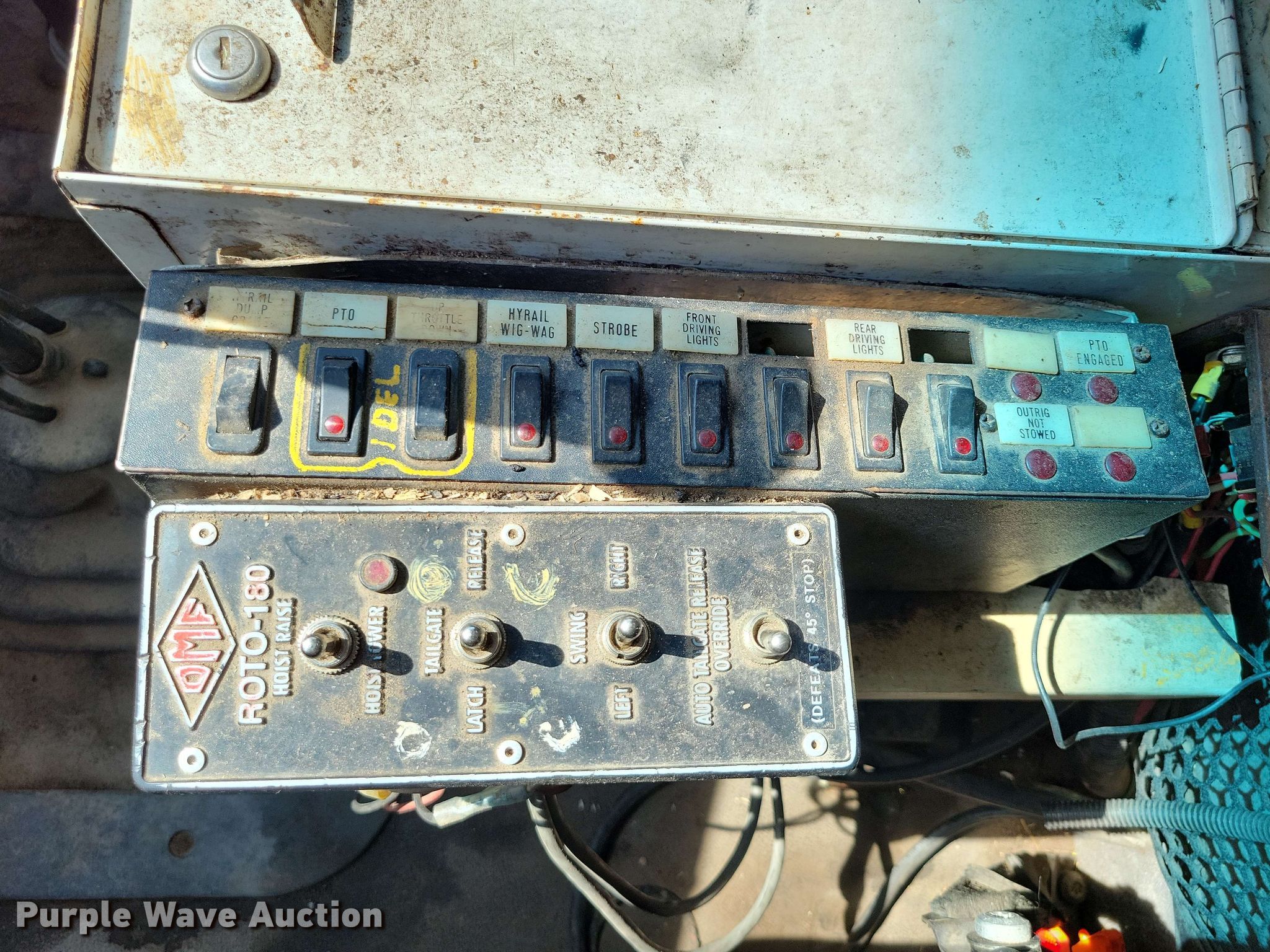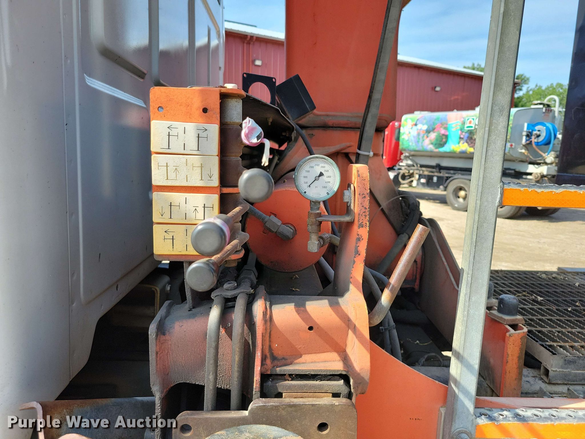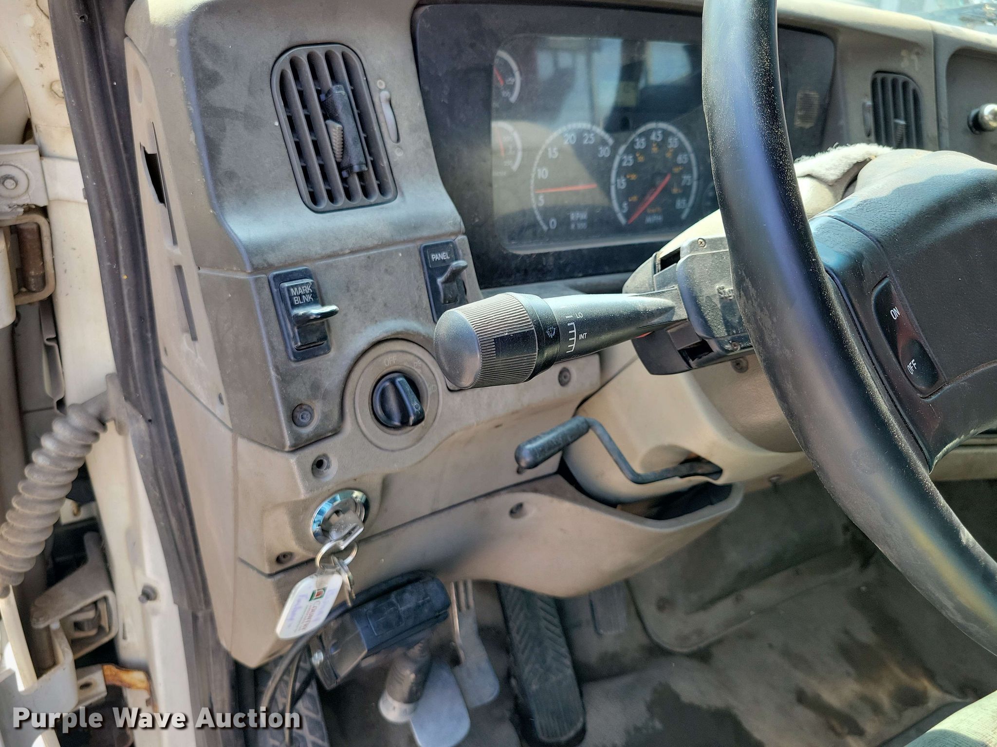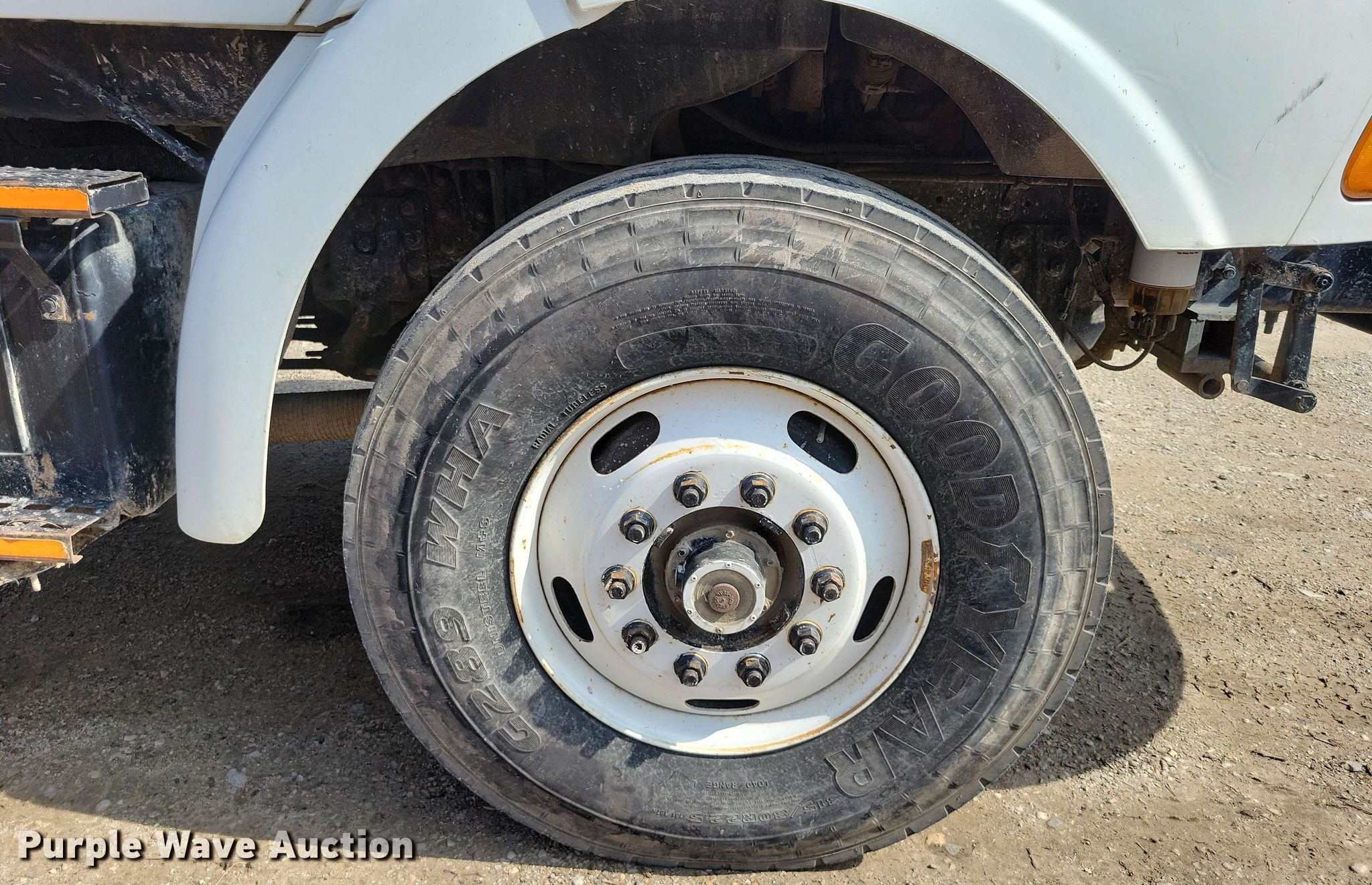 2003 Sterling LT8500 grapple crane truck. Miles: 287,810 on odometer, VIN: 2FZHAWAK63AL84641. Engine Caterpillar 3126E, Serial: 64116G009, Displacement: 7.2L, Cylinders: 6, Fuel type: Diesel. Transmission Eaton Fuller Roadranger, Manual, Speed: 10. Chassis Axles: Tandem, Differential lock: Inter-axle, Suspension: Spring over walking beam, Brakes: Air, PTO, GVWR: 56,000 lbs FAWR: 16,000 lbs, IAWR: 20,000 lbs, RAWR: 20,000 lbs. Interior AC, Heat, Cruise control, Brake controller. Features Dump bed 14' L x 96" W, Rotating dump bed, Crane Boom Telescopic, Knuckle, Maximum boom length: 28' Sections: 3, Boom controls Platform/ basket, Outriggers. Tires Front: 315/80R22.5, Rear: 11R22.5. Notes Remanufactured engine, Crane tower hydraulic issues, leaks, Air tank issues, leaks. Iowa title. Title distribution may be delayed up to 14 days from verification of funds. Country Landscapes, Inc.. Ames, IA 50010