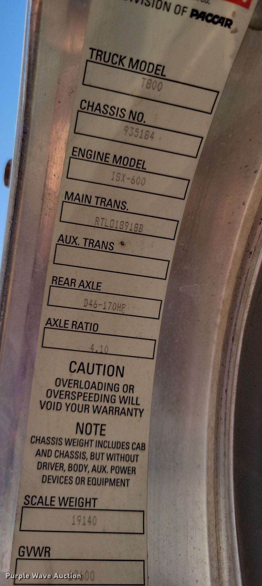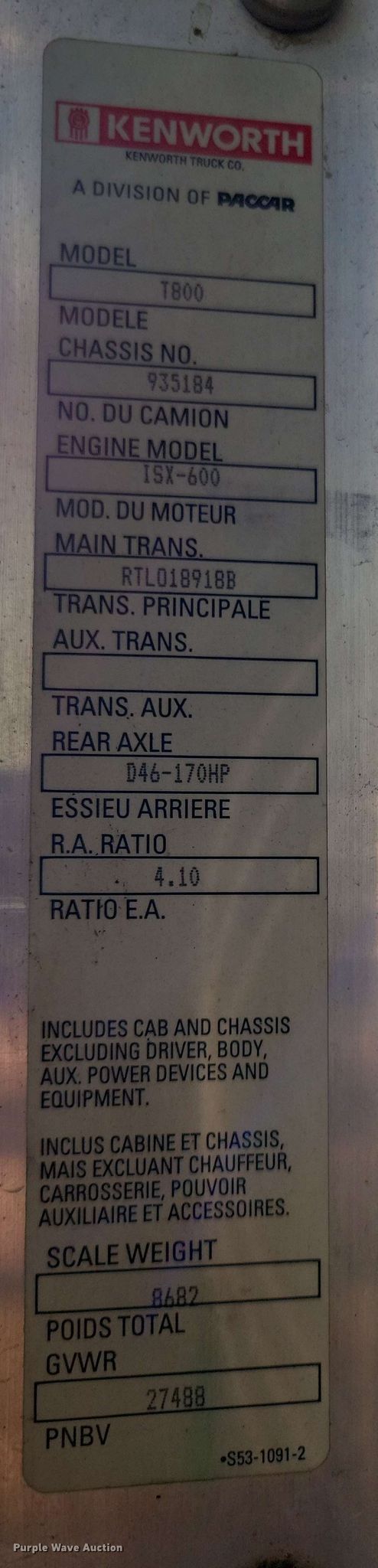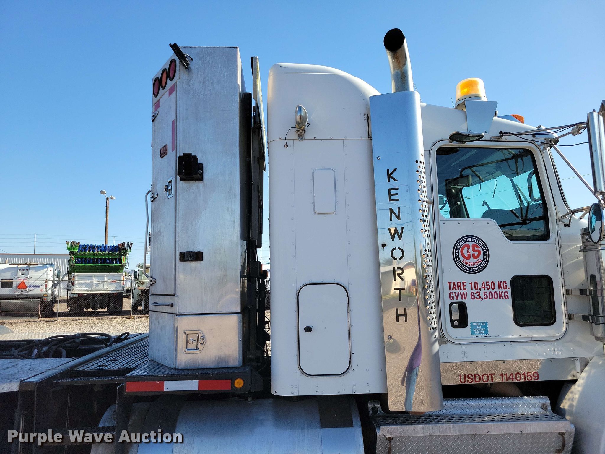 2008 Kenworth T800 semi truck. Miles: 578,730 on odometer, Hours: 22,027 on meter, VIN: 1XKDD40X28J935184. Engine Cummins ISX, Serial: 79246890, Displacement: 14.9L, Cylinders: 6, Fuel type: Diesel, HP: 600, Engine brake. Transmission Eaton Fuller, Manual, Speed: 18. Chassis Axles: Tandem, Gear ratio: 4.10, Differential lock: Full, Suspension: Air Dump valves, Brakes: Air, PTO, Wet kit, GVWR: 60,600 lbs FAWR: 14,600 lbs, IAWR: 23,000 lbs, RAWR: 23,000 lbs. Interior AC, Heat, Heated mirrors, Cruise control, Air ride cab, Sleeper Sleeper length: 28", Beds: Single. Features Deck plate: Aluminum, Fifth wheel type: Air operated, Sliding, Fuel tank: Dual. Tires Front: 425/65R22.5, Rear: 11R24.5. Arizona title. Title distribution may be delayed up to 30 days from verification of funds. C & S Sweeping. Phoenix, AZ 85034