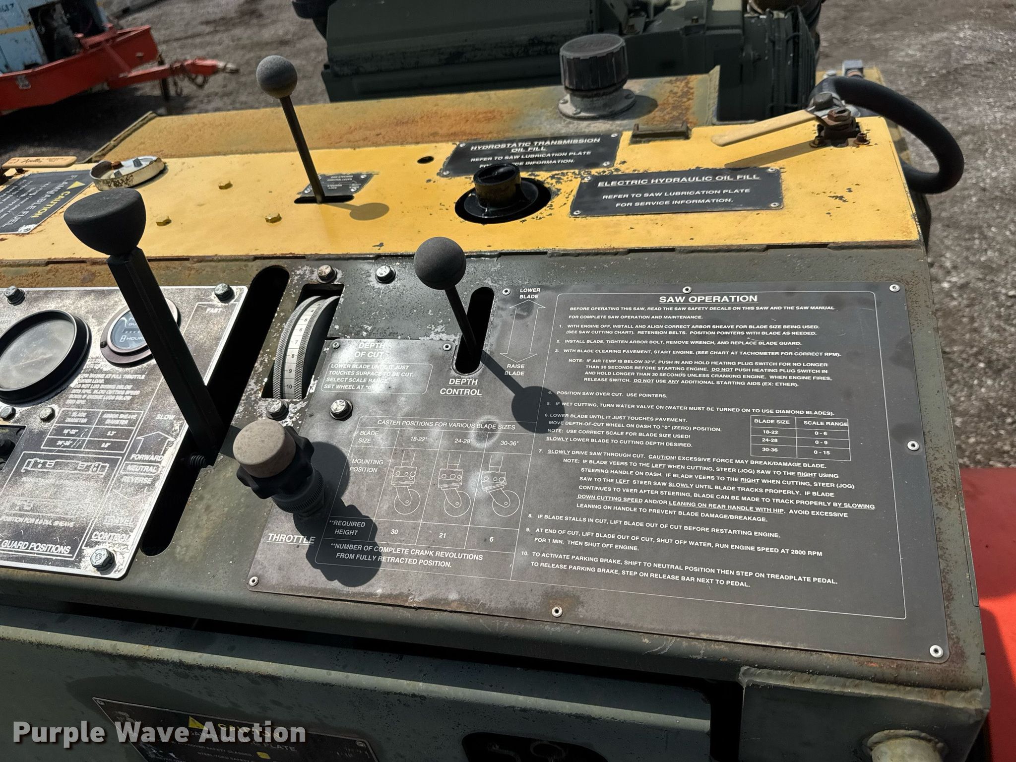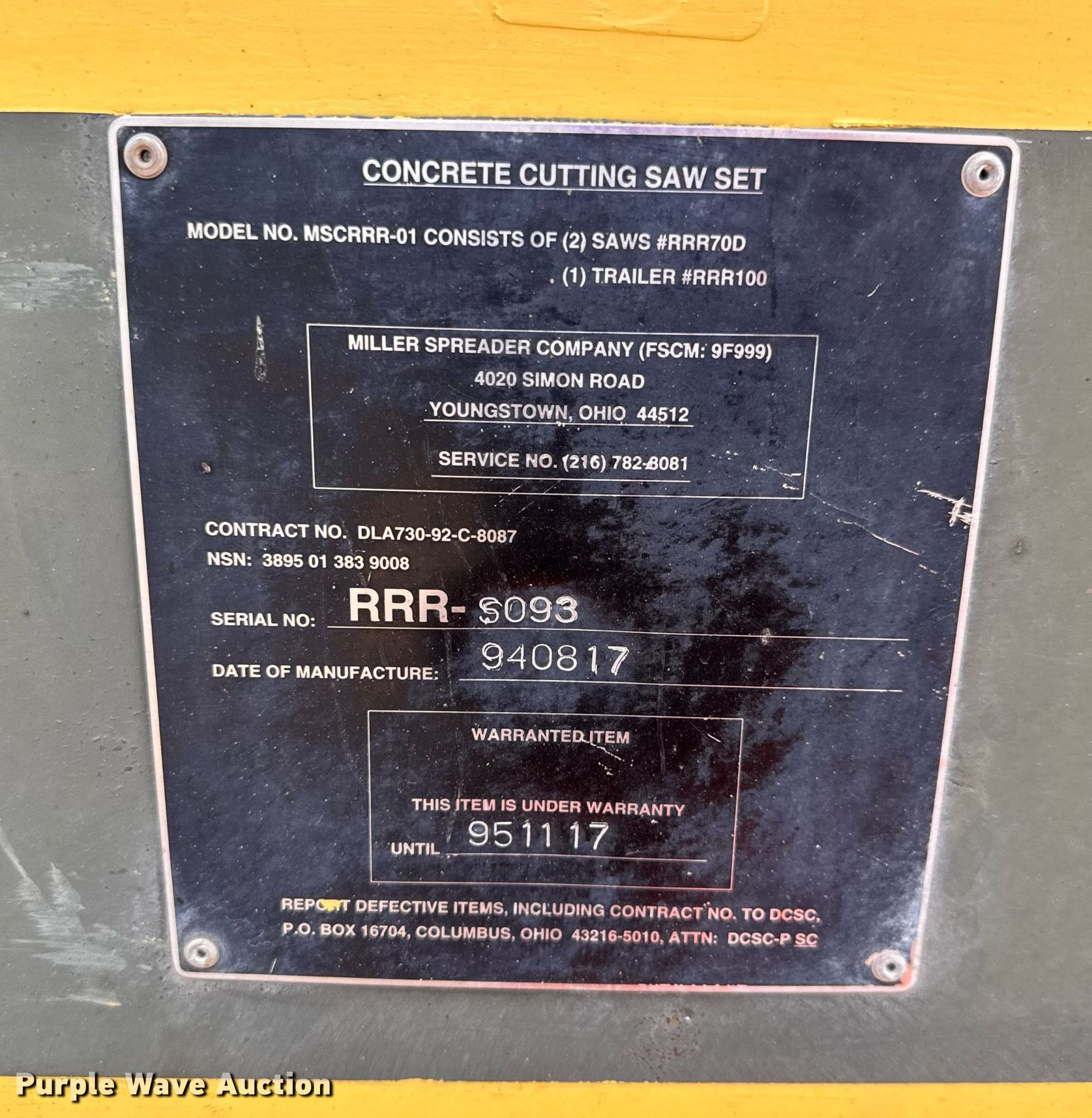 Purple Wave is selling a used Concrete Equip. or Acces. in Oklahoma. This item is a 1994 Miller Spreader MSCRRR-01 concrete saw with the following: Hours: 168 on meter, Serial: RRR-S093