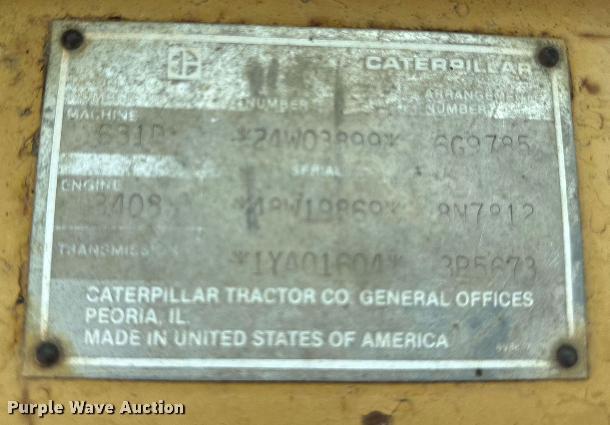 Purple Wave is selling a used Conventional Scraper in Minnesota. This item is a 1986 Caterpillar 631D scraper with the following: Hours: 10,713 on meter, Serial: 24W03899