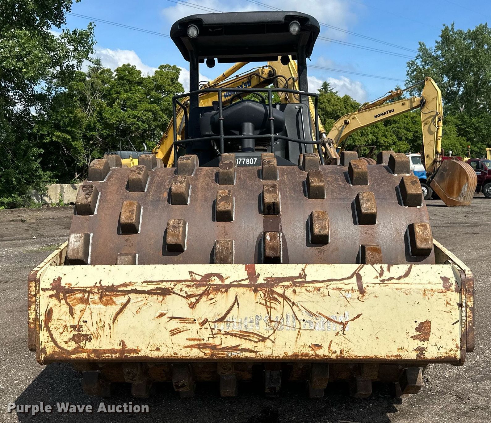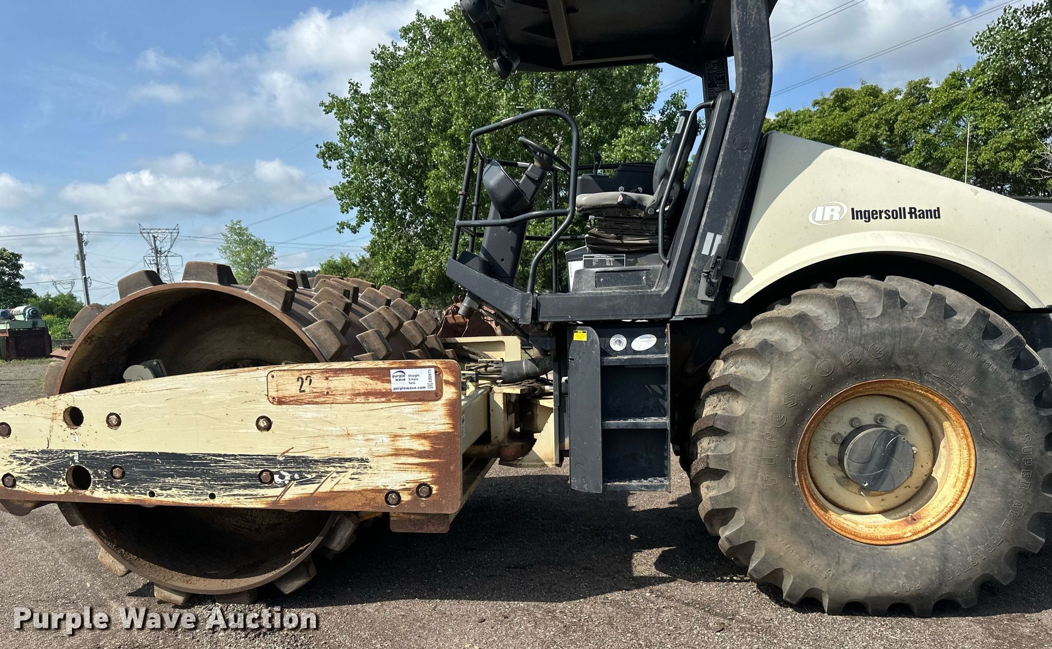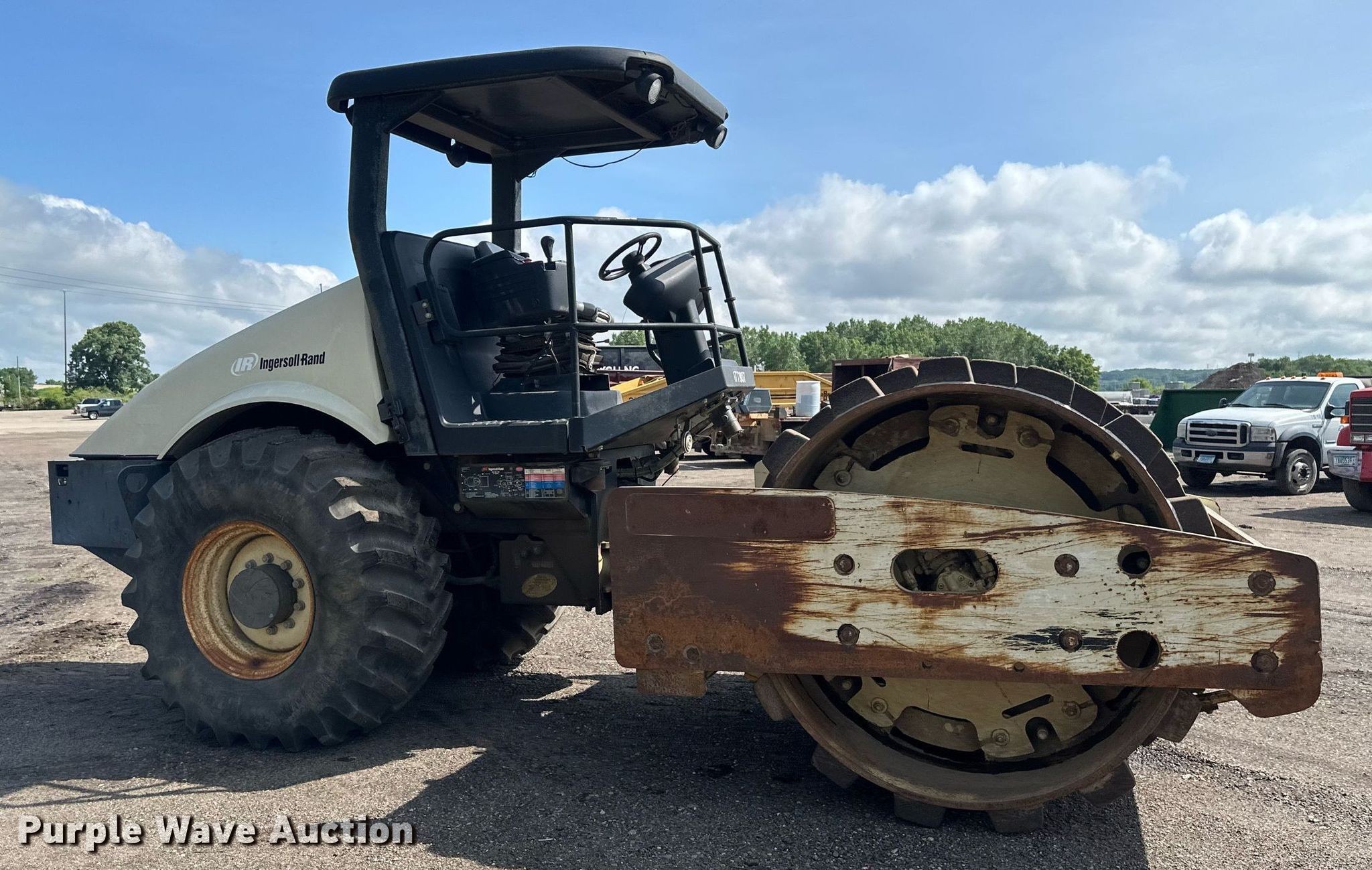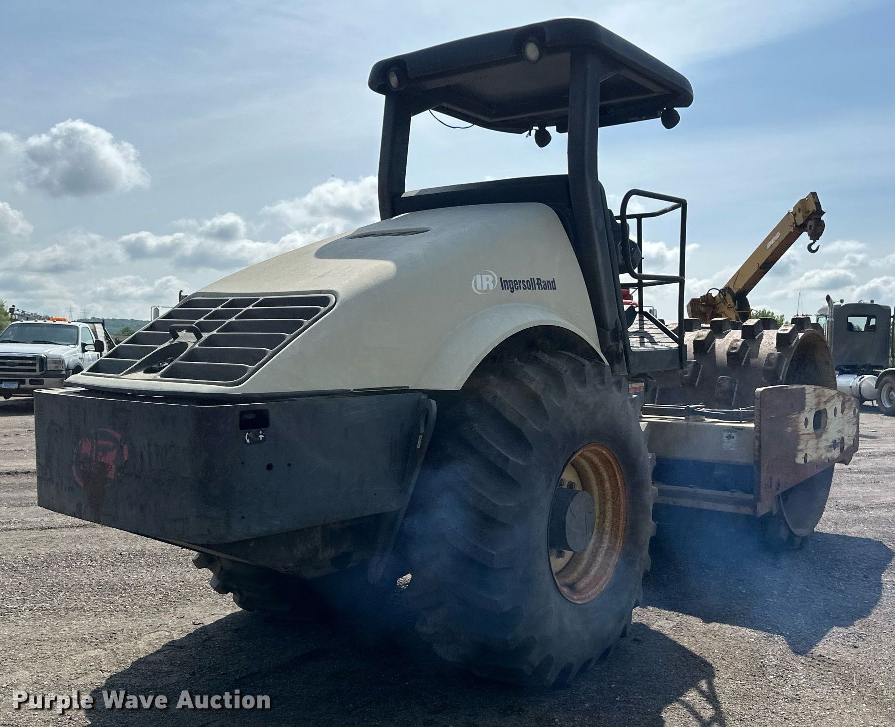 2004 Ingersoll Rand SD-105F TF single drum vibratory roller. Hours: 3,741 on meter, Serial: 177807. Engine Cummins B3.9-1250, Serial: 46387517, Displacement: 3.9L, Cylinders: 4, Fuel type: Diesel. Transmission Hydrostatic. Operators station Vandal cover. Features Drum: Padfoot, Vibratory system: Single, Front drum Width: 84", Diameter: 66", Drum scrapers: Front. Tires Size: 23.1-26. Danner, Inc. South Saint Paul, MN 55075
