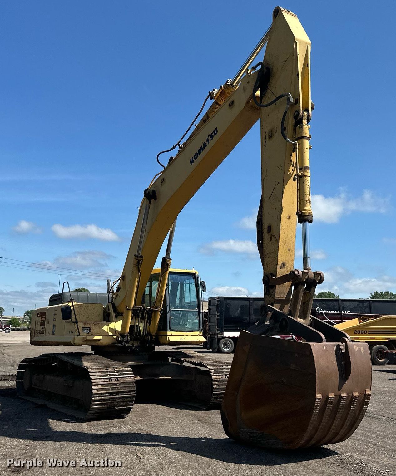 2001 Komatsu PC400LC-6LM excavator. Hours: 14,738 on meter, Serial: A85326. Engine Cylinders: 6, Fuel type: Diesel. Transmission Hydrostatic, Three speed travel. Operators station Enclosed cab, AC, Heat. Features Boom Standard, Stick Stick length: 13' 1", Bucket EBI, Width: 56", Cutting edge: Weld-on. Tracks Width: 35", Steel, Grouser pads: Triple. Danner, Inc. South Saint Paul, MN 55075