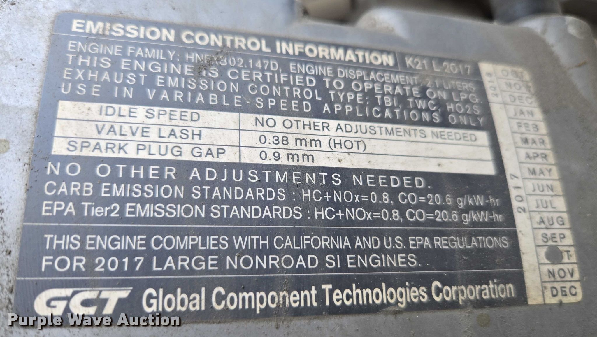2017 UniCarriers CFS40 forklift. Hours: 3,971 on meter, Serial: CP1F1-9N21518, Unit #: SFS2114. Engine GCT, Displacement: 2.1L, Cylinders: 4, Fuel type: LPG LP bottle: Not included. Transmission Automatic. Operators station OROPS. Features Maximum lift capacity: 2,910 lbs, Maximum lift height: 203", Collapsed mast height: 88", Mast stages: 3, Side shift, Mast tilt, Fork positioner, Fork length: 48". Tires Front: 18x6x12 1/8, Rear: 14x5x10, Solid. Ferguson. Stockton, CA 95205