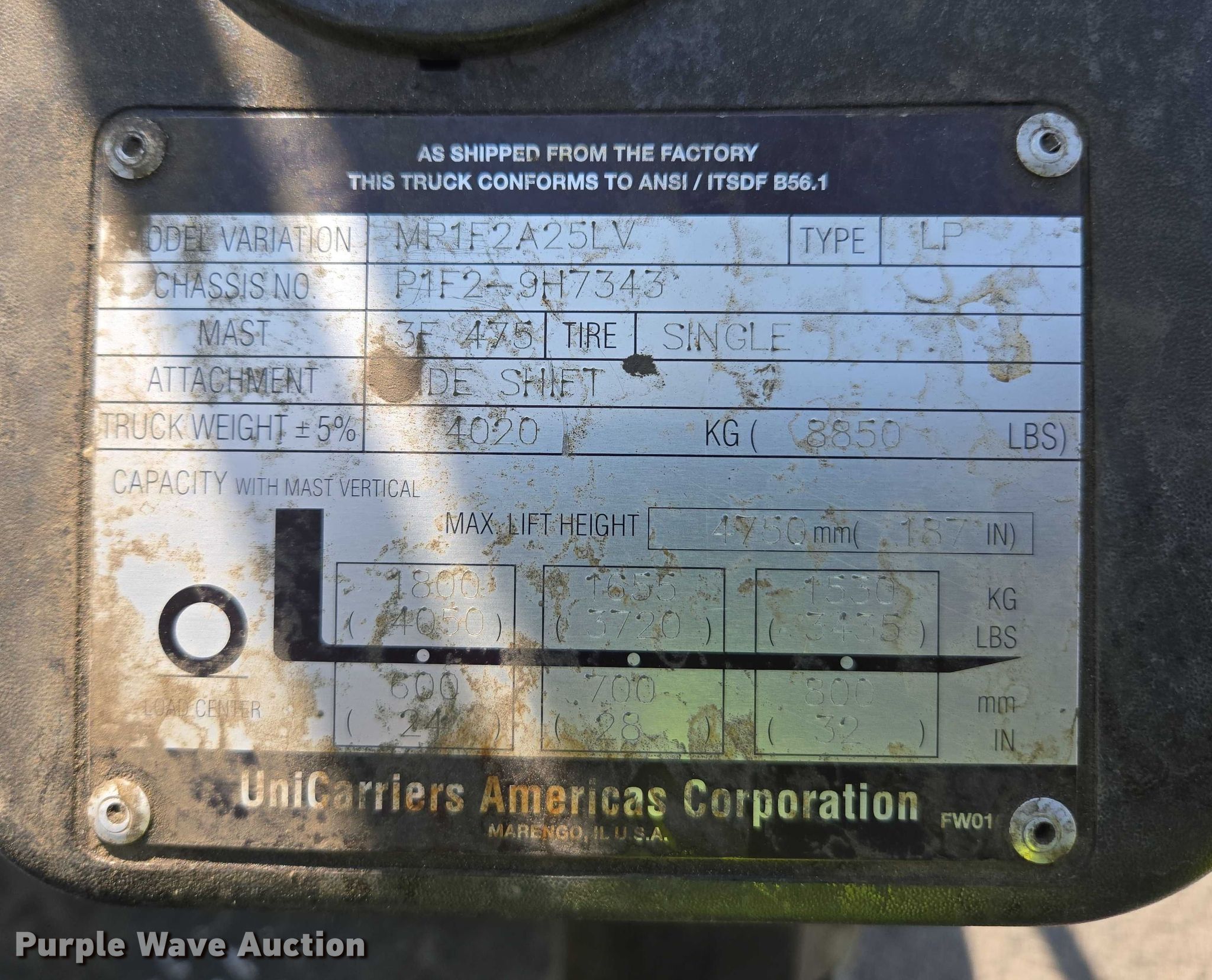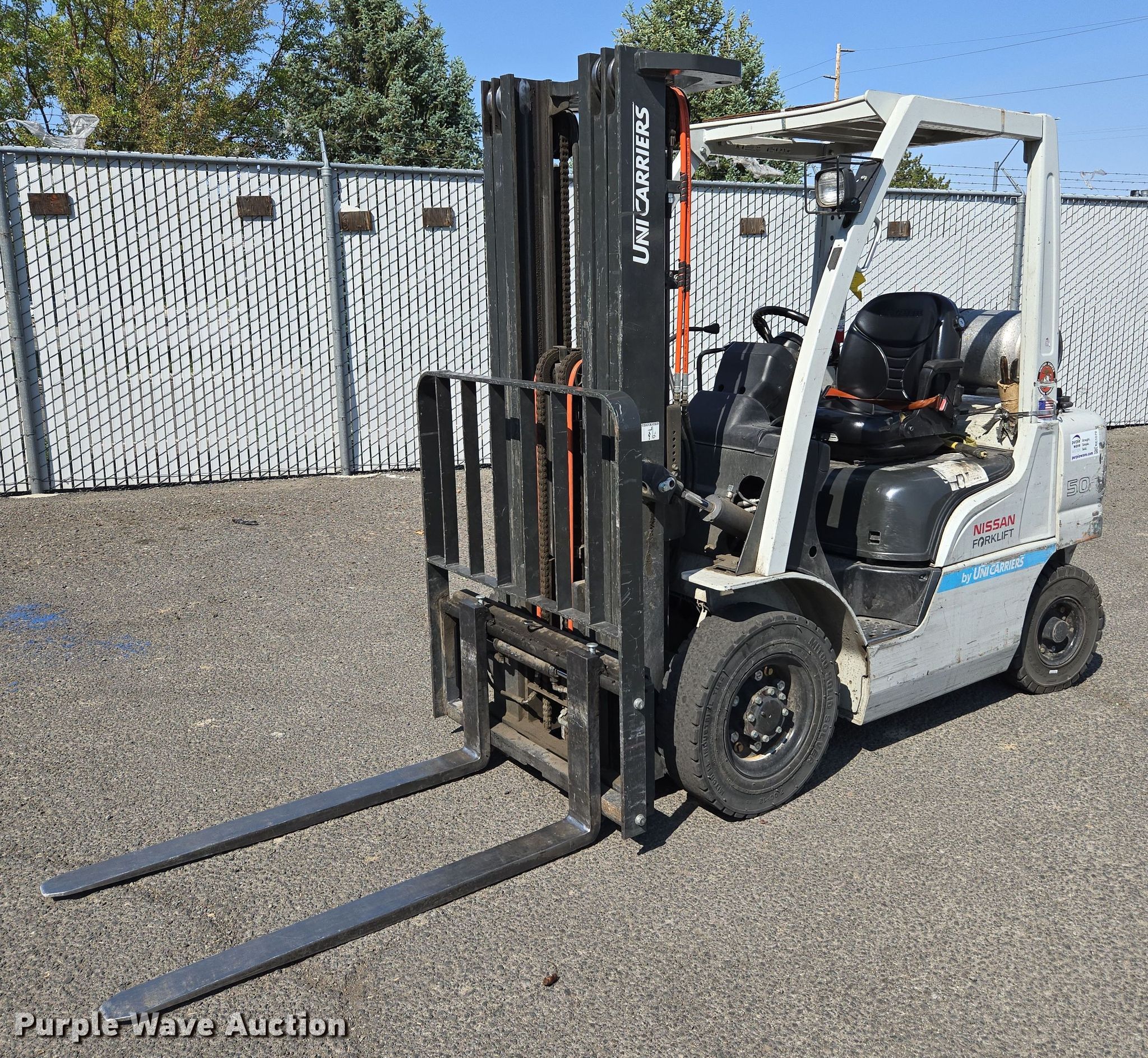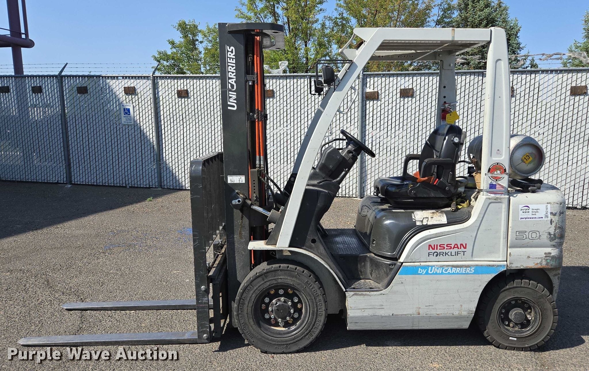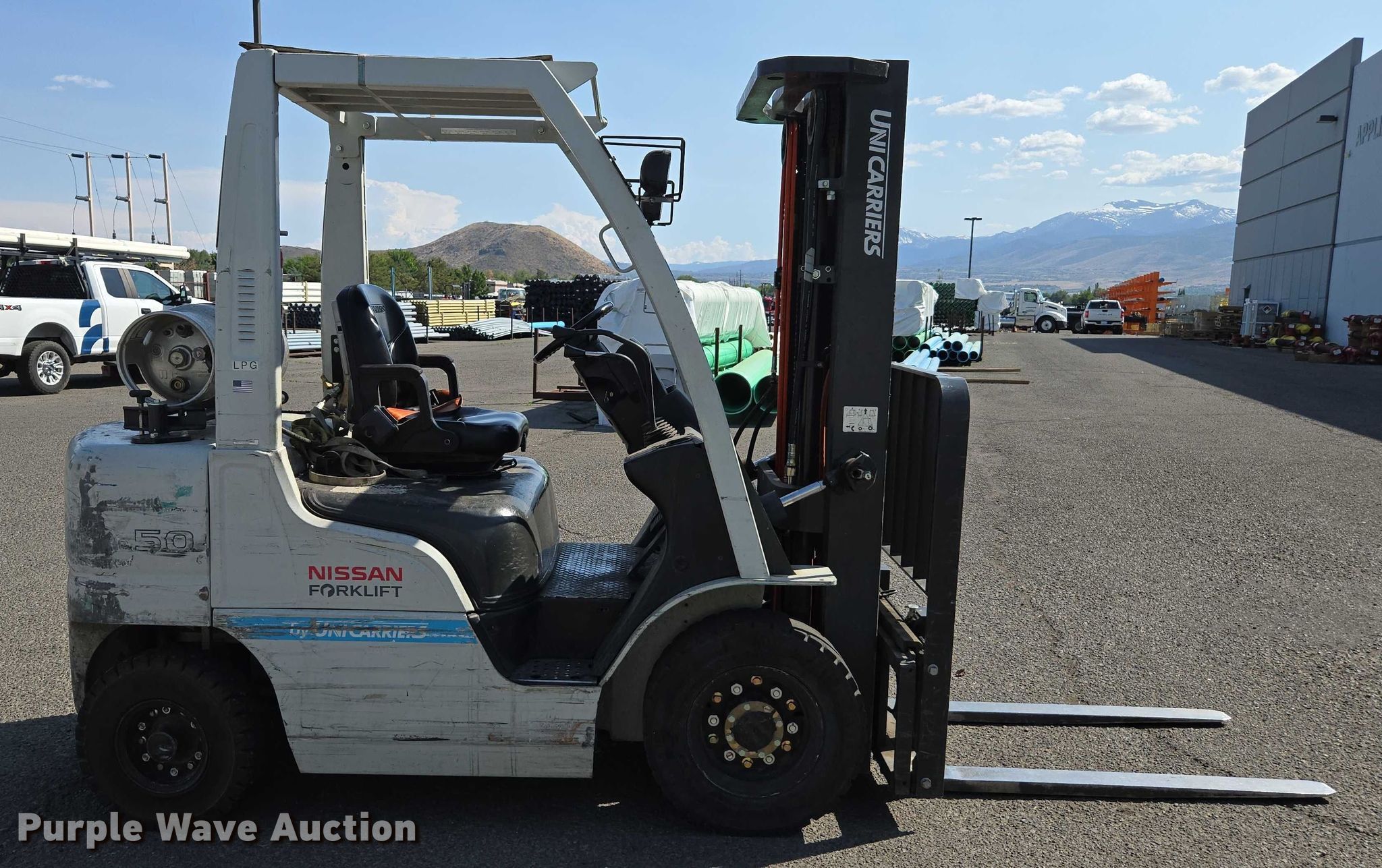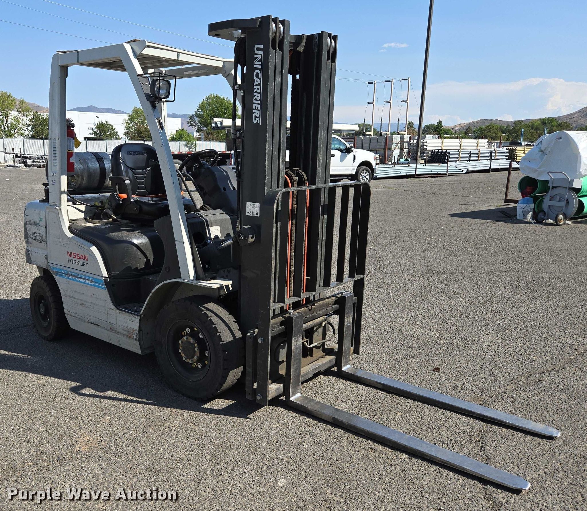 Purple Wave is selling a used Cushion Tire or Pneumatic Forklift in Nevada. This item is a 2014 Nissan MP1F2A25LV forklift with the following: Hours: 5,638 on meter, Serial: P1F2-9H7343