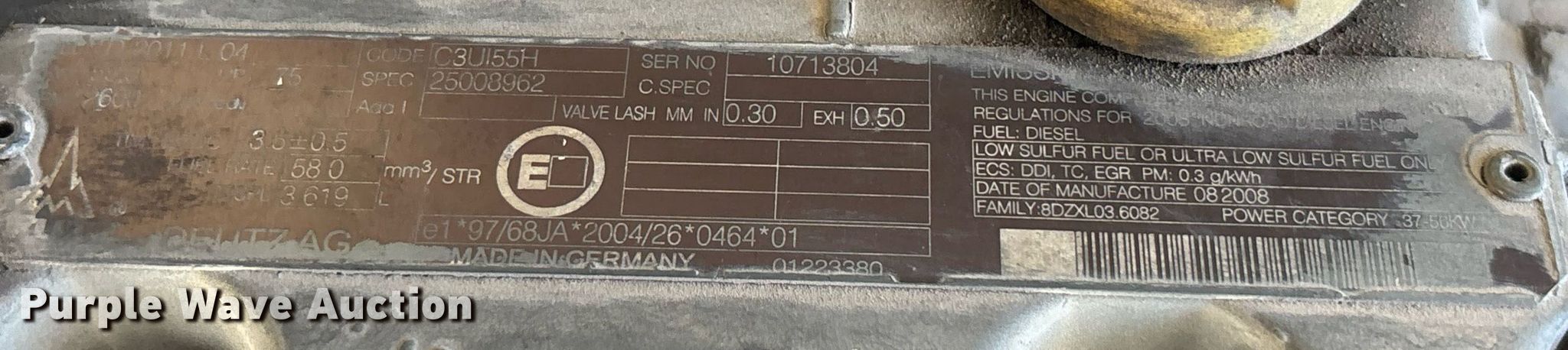 2009 JLG 1350SJP boom lift. Hours: 2,657 on meter, Serial: 0300135994. Engine Deutz, Serial: 10713804, Displacement: 3.619L, Cylinders: 4, Fuel type: Diesel. Chassis Four wheel drive, Steering: Crab, Four wheel. Features Rough terrain, Boom type: Telescopic, Maximum lift capacity: 1,000 lbs, Maximum reach length: 80', Maximum lift height: 135', Hydraulic extendable jib, Platform: 96" L x 36" W, AC power outlet, Air outlet, Controls: Platform, Ground, Platform rotation: Hydraulic, Safety alarm, Extendable axles. Tires Tire size: IN445/50D710, Foam filled. Notes JLG Industries certified reconditioned unit in December 2015 Rebuilt engine. Transfer of ownership documentation will be a bill of sale. LTC Rentals. Miami, FL 33169