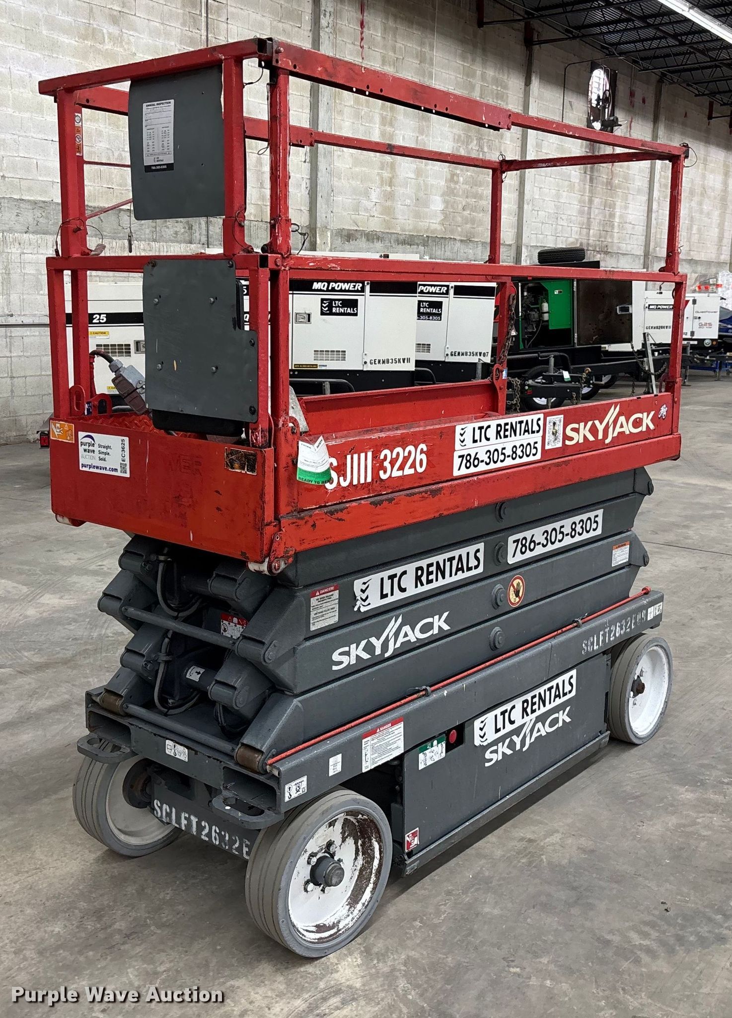 Purple Wave is selling a used Scissor or Vertical Lift in Florida. This item is a 2014 Skyjack 3226 scissor lift with the following: Hours: 123 on meter, Serial: 27021640