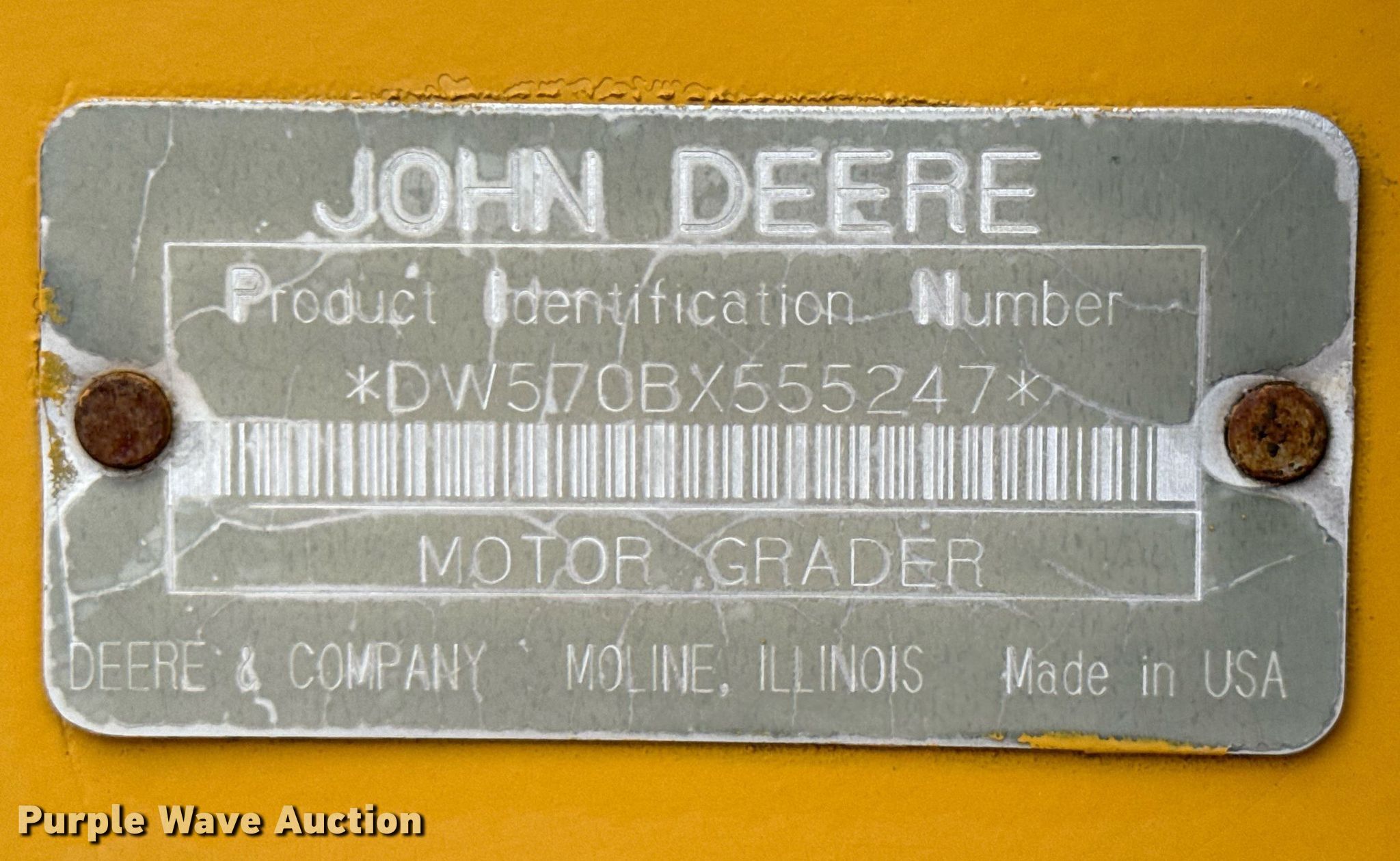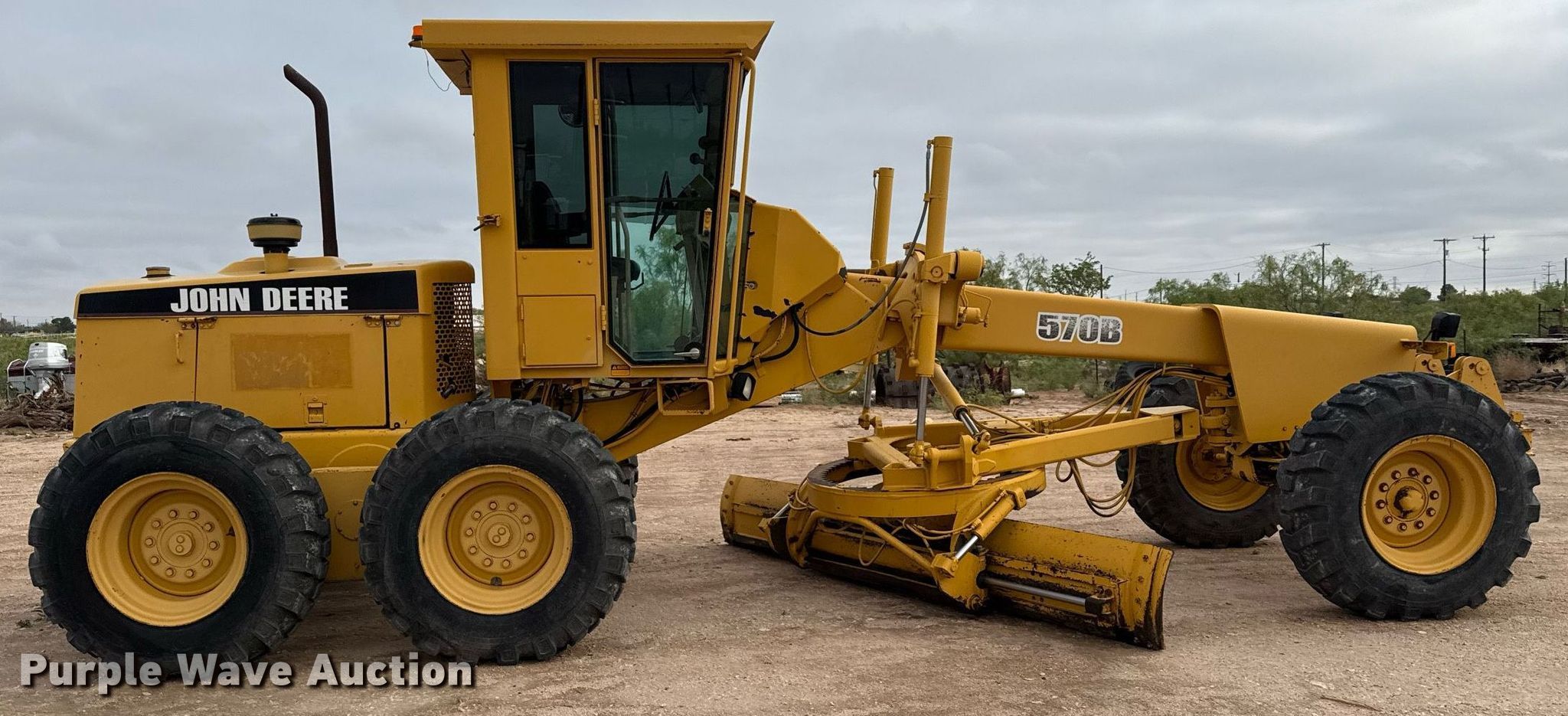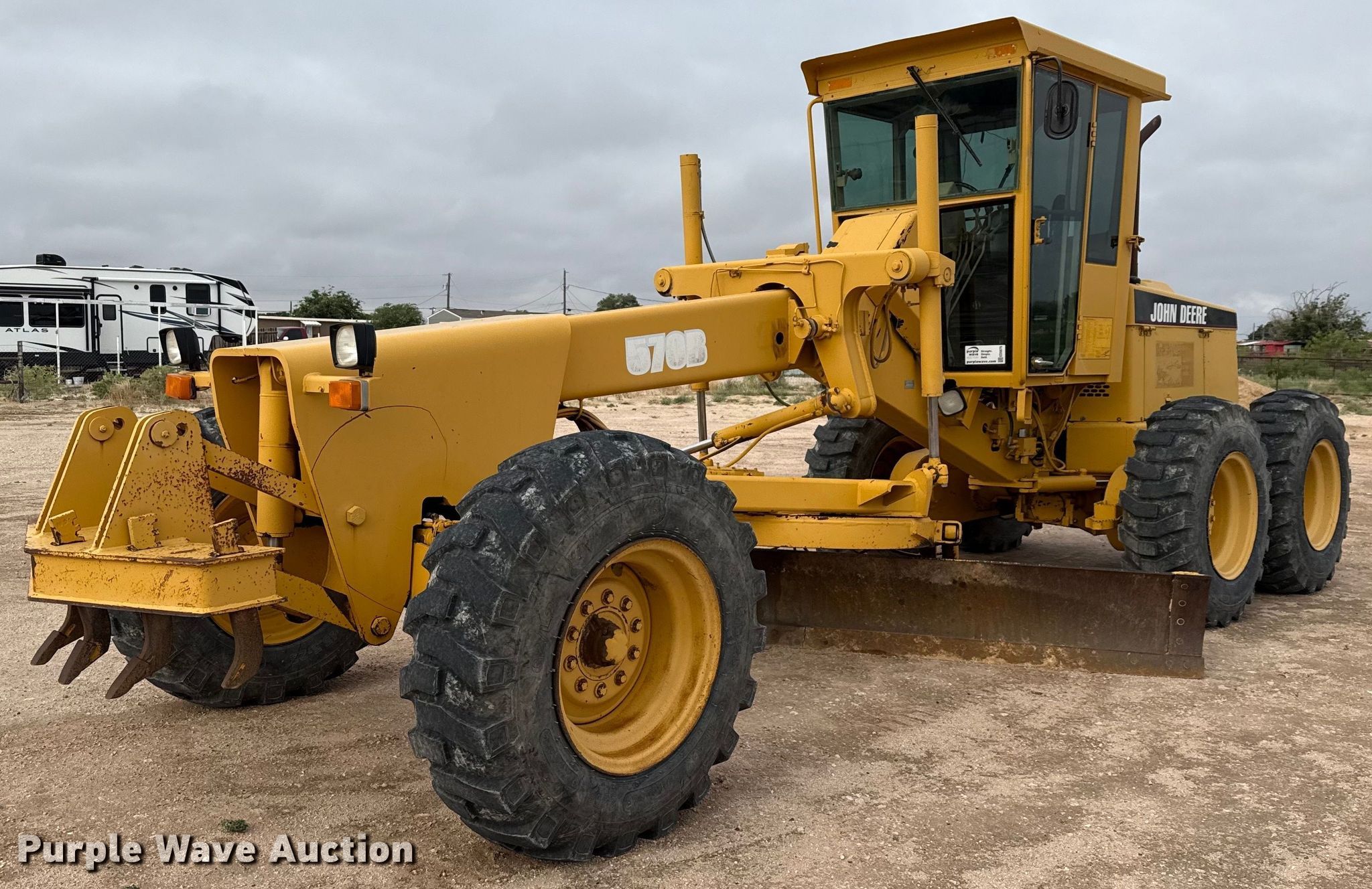 Purple Wave is selling a used Motor Grader in Texas. This item is a 1996 John Deere 570B motor grader with the following: Hours: 2,287 on meter, Actual hours unknown, Serial: DW570BX555247