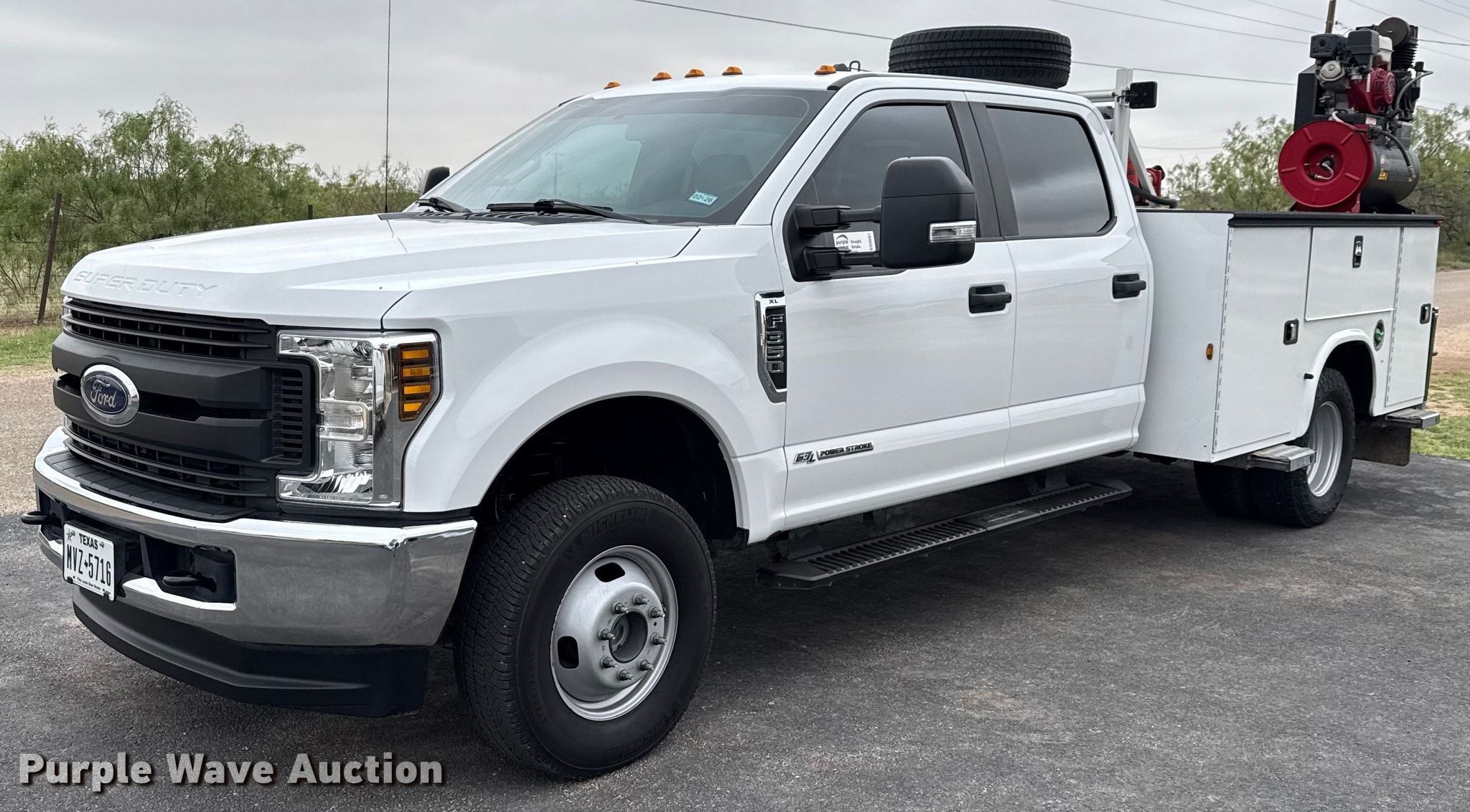 Purple Wave is selling a used 3/4 or 1 Ton Pickup or Van in Texas. This item is a 2019 Ford F350 Super Duty XL Crew Cab utility bed pickup truck with the following: Miles: 38,045 on odometer, Hours: 2,058 on meter, VIN: 1FD8W3HT0KEG58808