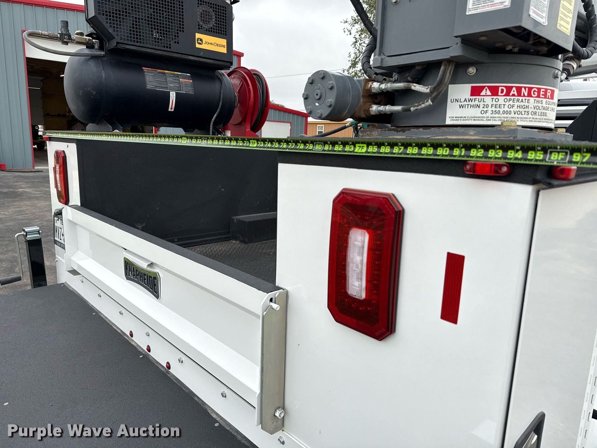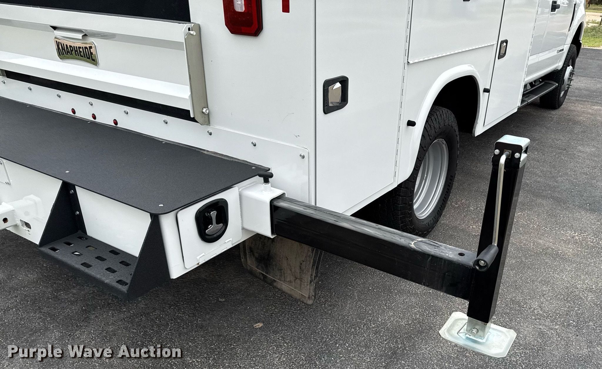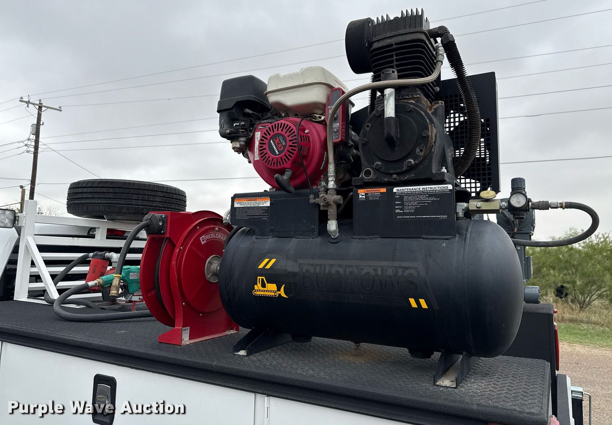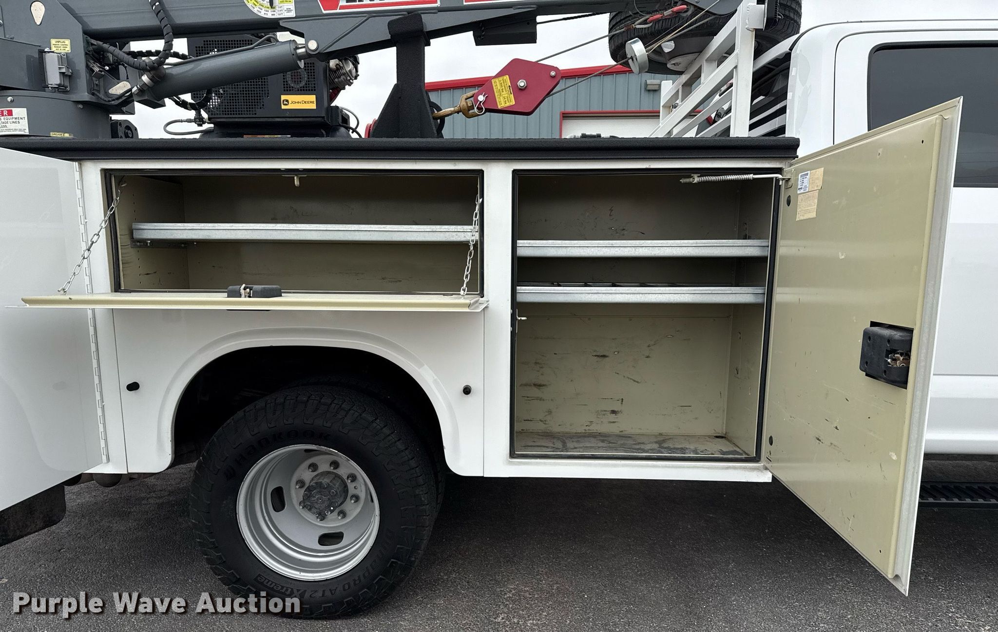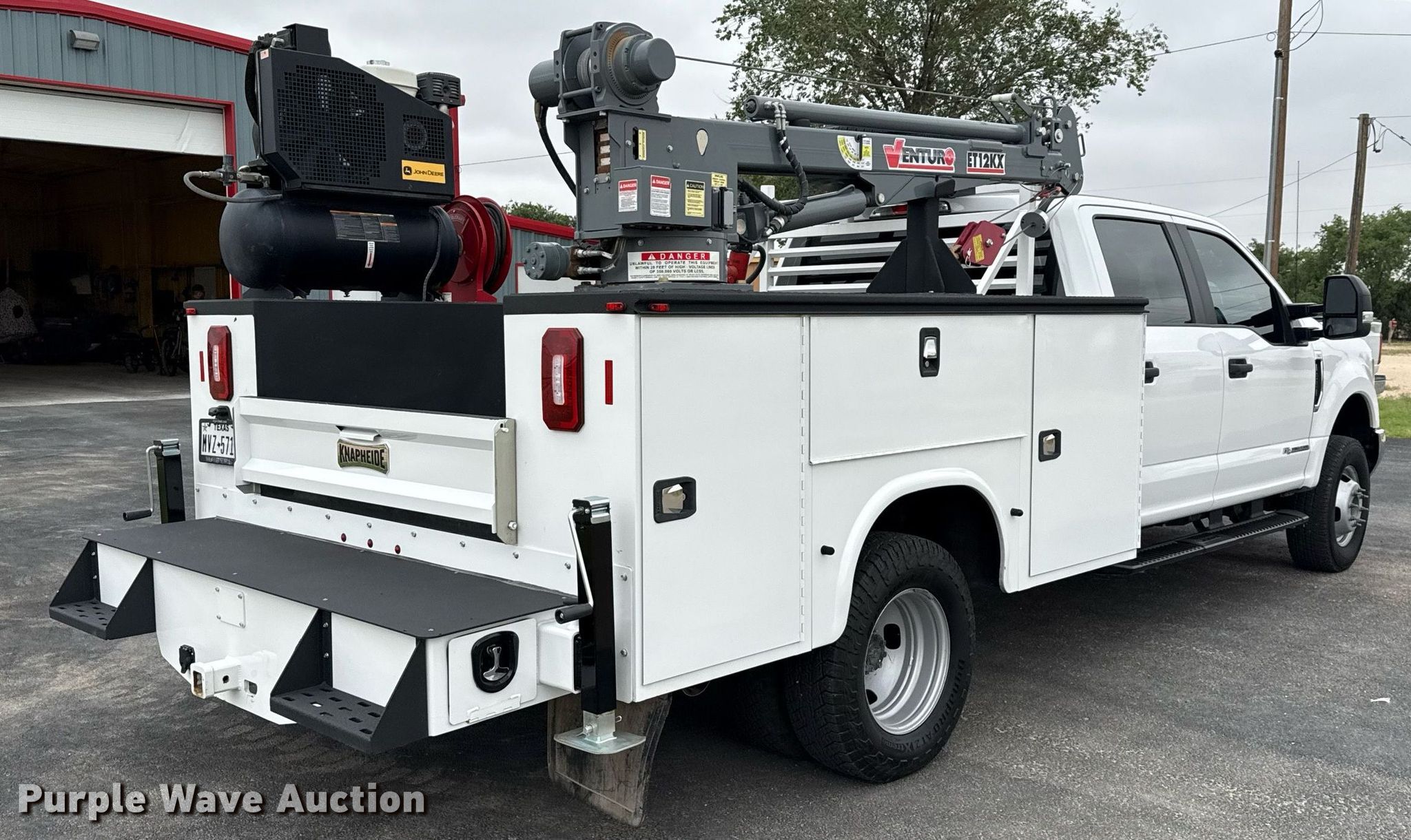 2019 Ford F350 Super Duty XL Crew Cab utility bed pickup truck. Miles: 38,045 on odometer, Hours: 2,058 on meter, VIN: 1FD8W3HT0KEG58808. Engine Displacement: 6.7L V8 OHV, Cylinders: 8, Fuel type: Diesel. Transmission Automatic. Chassis Four wheel drive, Axles: Single, Suspension: Spring, Brakes: Hydraulic, GVWR: 14,000 lbs. Interior AC, Heat, Heated mirrors, Power windows, Power locks, Cruise control, Auxiliary controls, Brake controller. Features Bed Knapheide 6108D54, 9' L x 96" W, Air compressor John Deere AM2-SH09-20M, Honda GX270, Oil/lube system Reservoirs, Fuel tank Nozzle, Pump, Crane Venturo ET12, Maximum boom length: 15' Maximum lift capacity: 3,500 lbs.. Tires Size: LT245/75R17. Texas title. Title distribution may be delayed up to 14 days from verification of funds. Burrows Construction LLC. Odessa, TX 79764