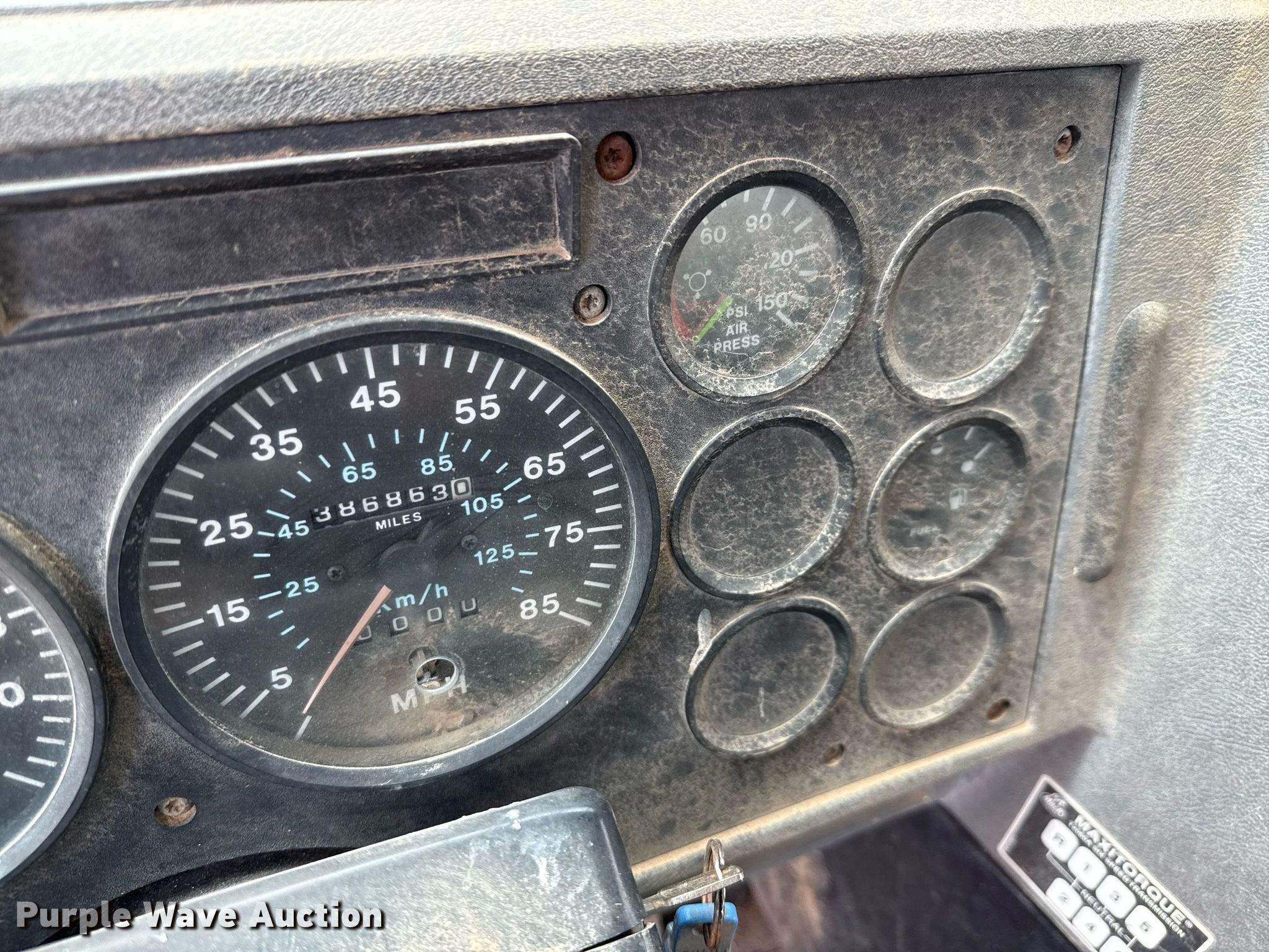 2000 Mack CH613 water truck. Miles: 386,863 on odometer, Hours: 15,612 on meter, VIN: 1M1AA12Y7YW122289, Unit #: 119. Engine Mack, Displacement: 12.0L, Cylinders: 6, Fuel type: Diesel, HP: 300. Transmission Mack Maxitorque T2060A, Manual, Speed: 6. Chassis Axles: Tandem, Suspension: Air Dump valves, Brakes: Air, PTO, Wet kit. Interior AC, Heat, Heated mirrors, Cruise control. Features Bed / tank DFI, 16' x 96" W, Spray bar: Front, Rear, Side discharge, Top fill. Tires Size: 11R22.5. Notes Windshield chipped or cracked, Dead battery, Non-operational unit Unit must be towed or hauled. Louisiana title. Title distribution may be delayed up to 30 days from verification of funds. Carrizo Springs, TX 78834