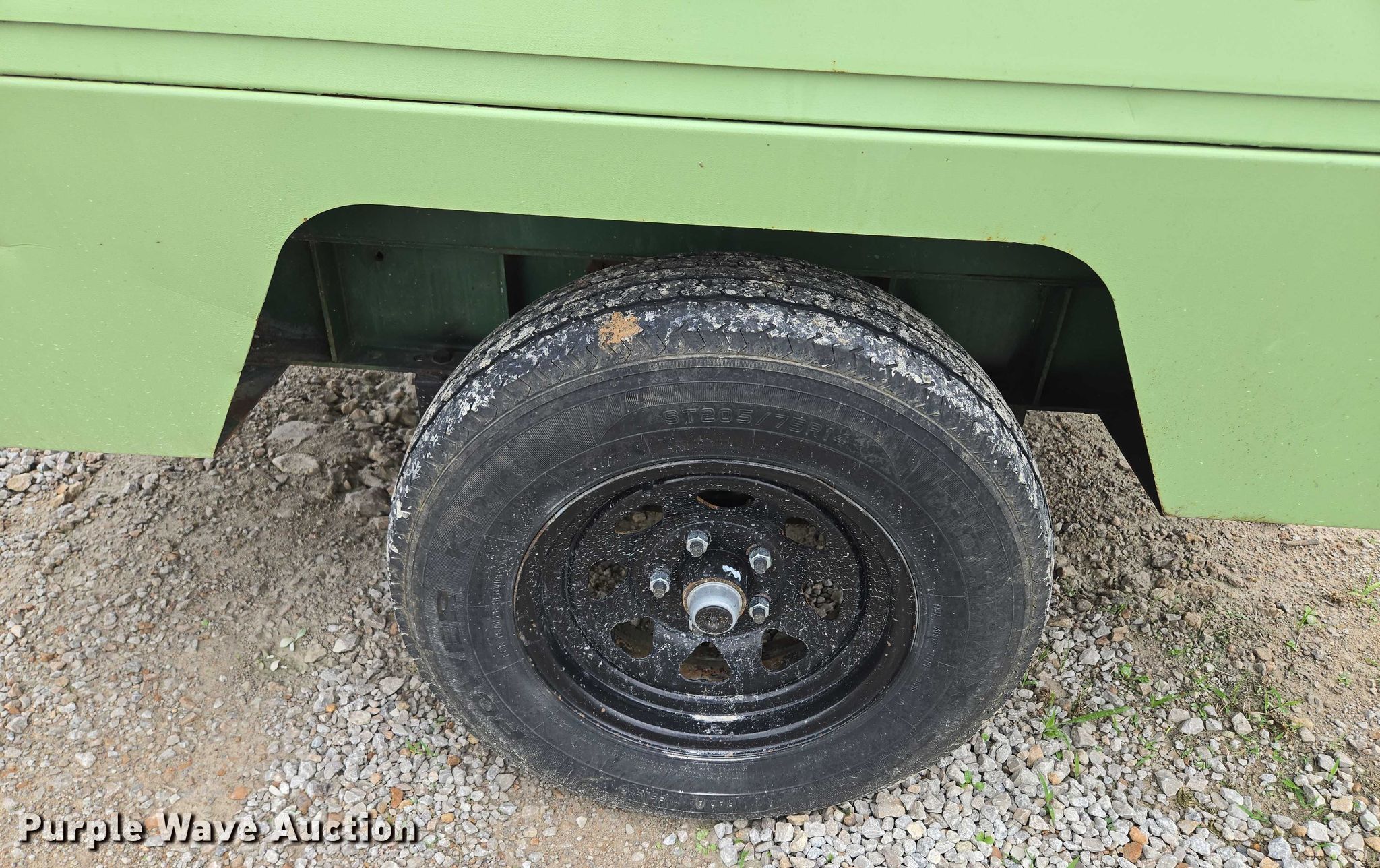 1991 Sullair 185DPQ-JJD air compressor. Hours: 5,122 on meter, Serial: 004106852. Engine John Deere 4039DF001, Cylinders: 4, Fuel type: Diesel. Features Air compressor CFM: 187, PSI: 100. Trailer 11' L x 57" W, Ball hitch size: 2", Suspension: Spring, Axles: Single, Tire size: 205/75R14. Notes Rear hatch missing. This is worksite support equipment and will not come with a title. Transfer of ownership documentation will be a bill of sale. Big O's Equipment Rental and Sales LLC. Grain Valley, MO 64029