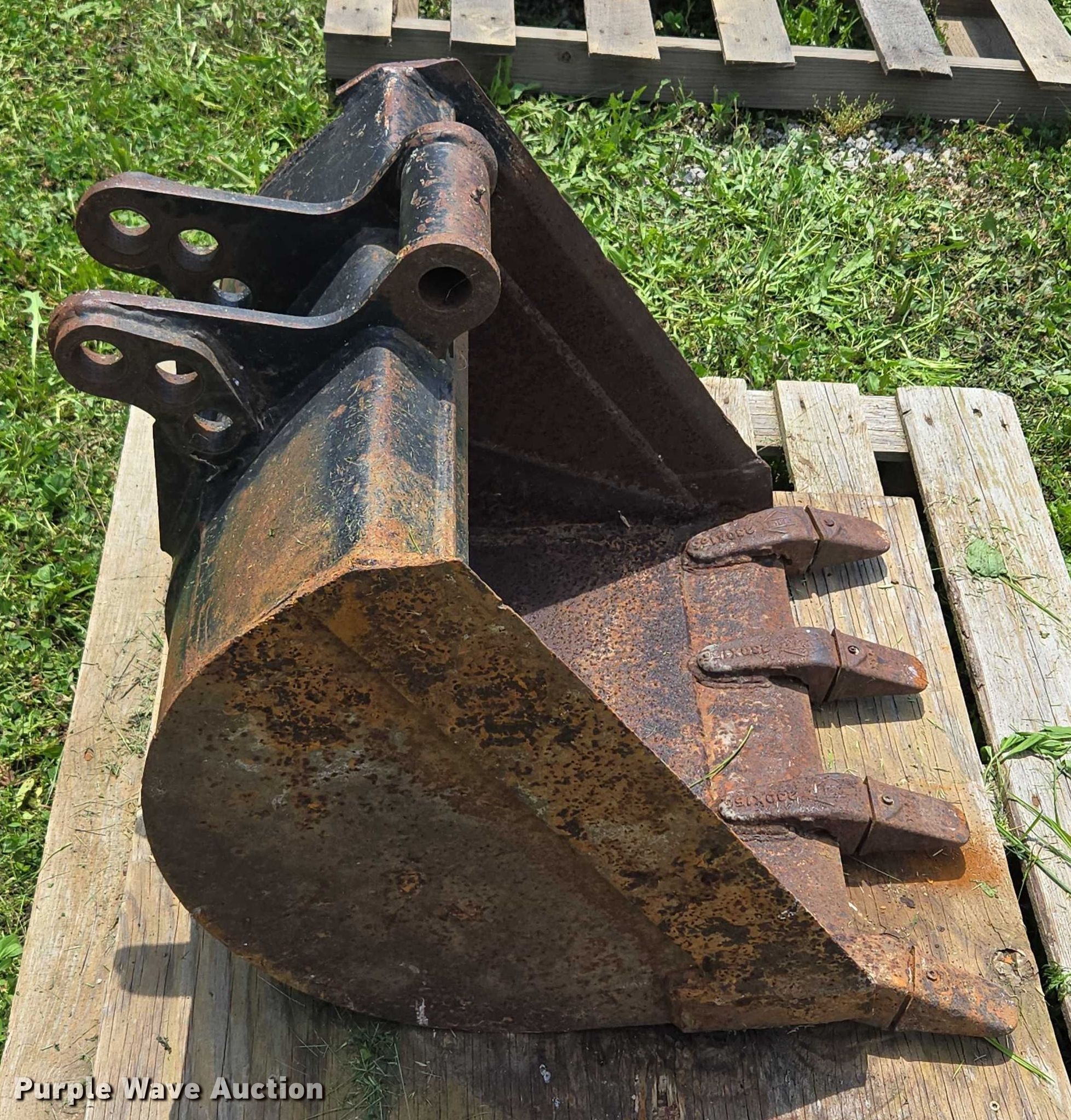 Purple Wave is selling a used Backhoe Attach. in Missouri. This item is a Backhoe bucket with the following: Backhoe bucket, Width: 24", Teeth: 4, Pin diameter: 1.25"