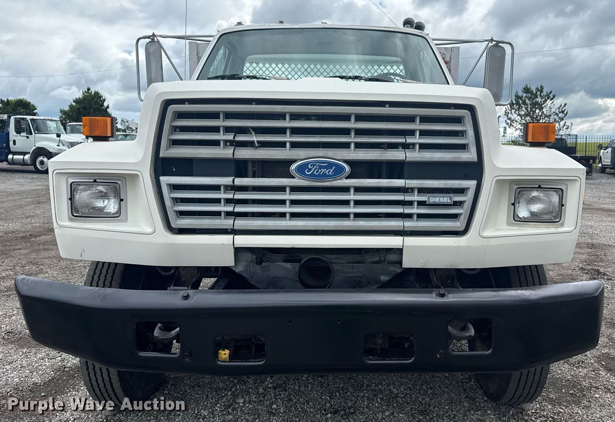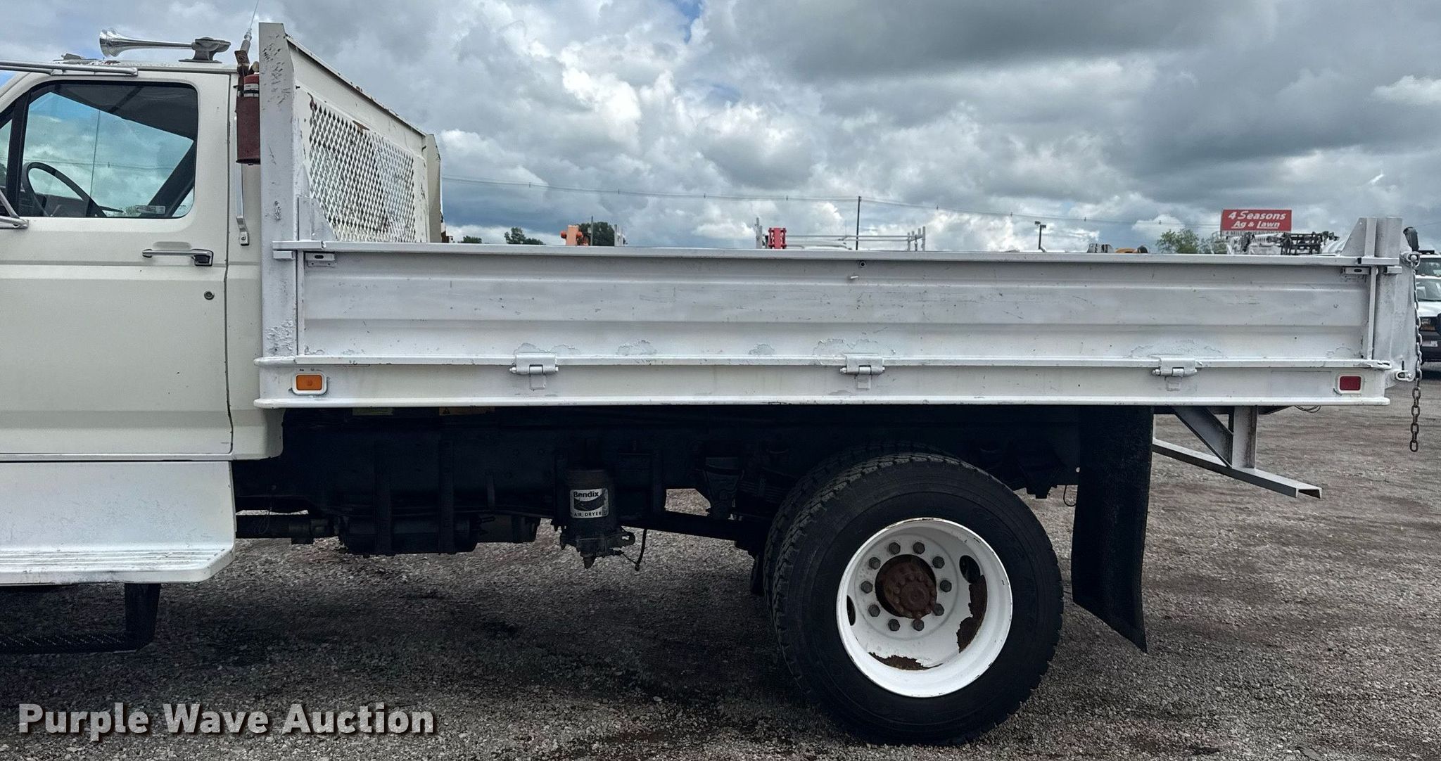 This 1993 Ford F700 dump flatbed truck will sell to the highest bidder regardless of price.