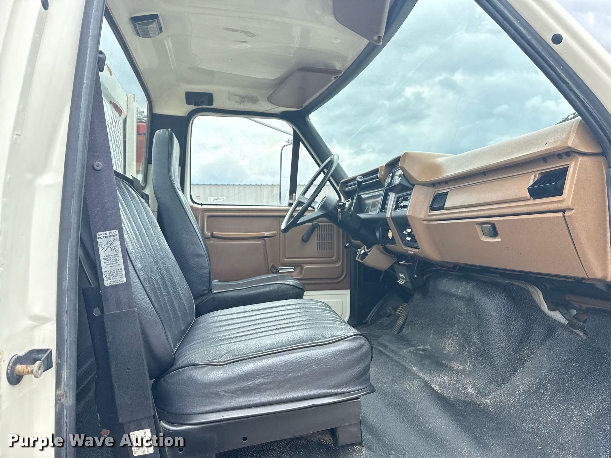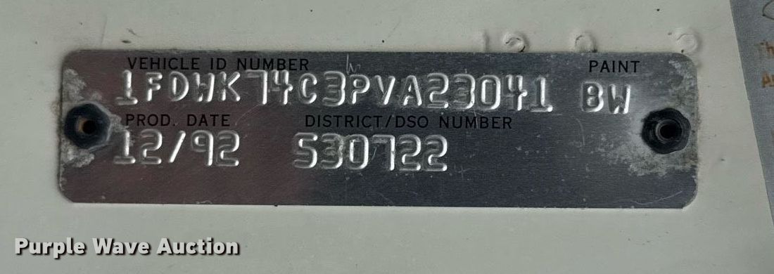 Purple Wave is selling a used Flat Bed Truck in Oklahoma. This item is a 1993 Ford F700 dump flatbed truck with the following: Miles: 52,656 on odometer, Hours: 6,302 on meter, VIN: 1FDWK74C3PVA23041